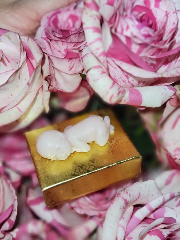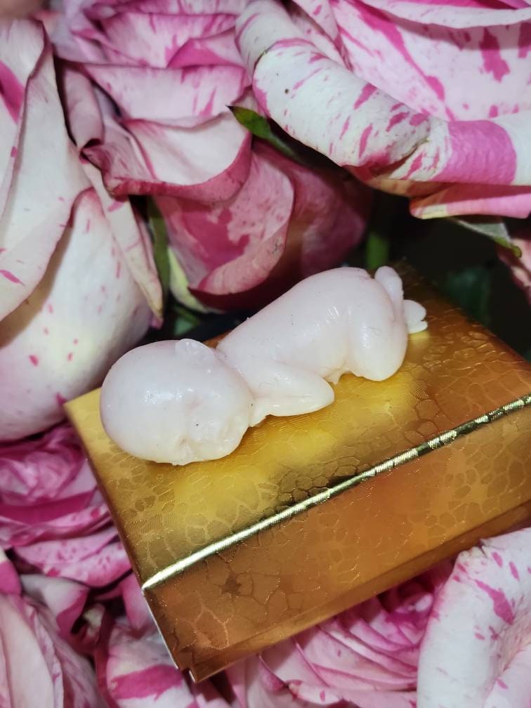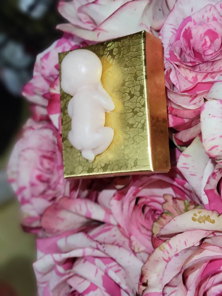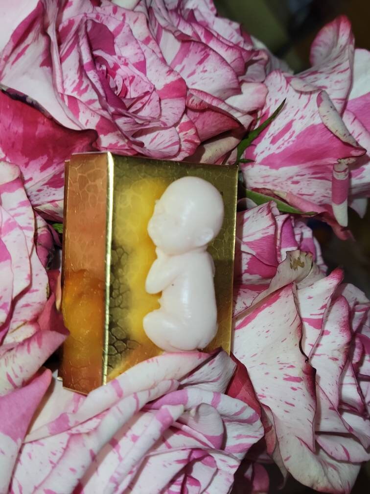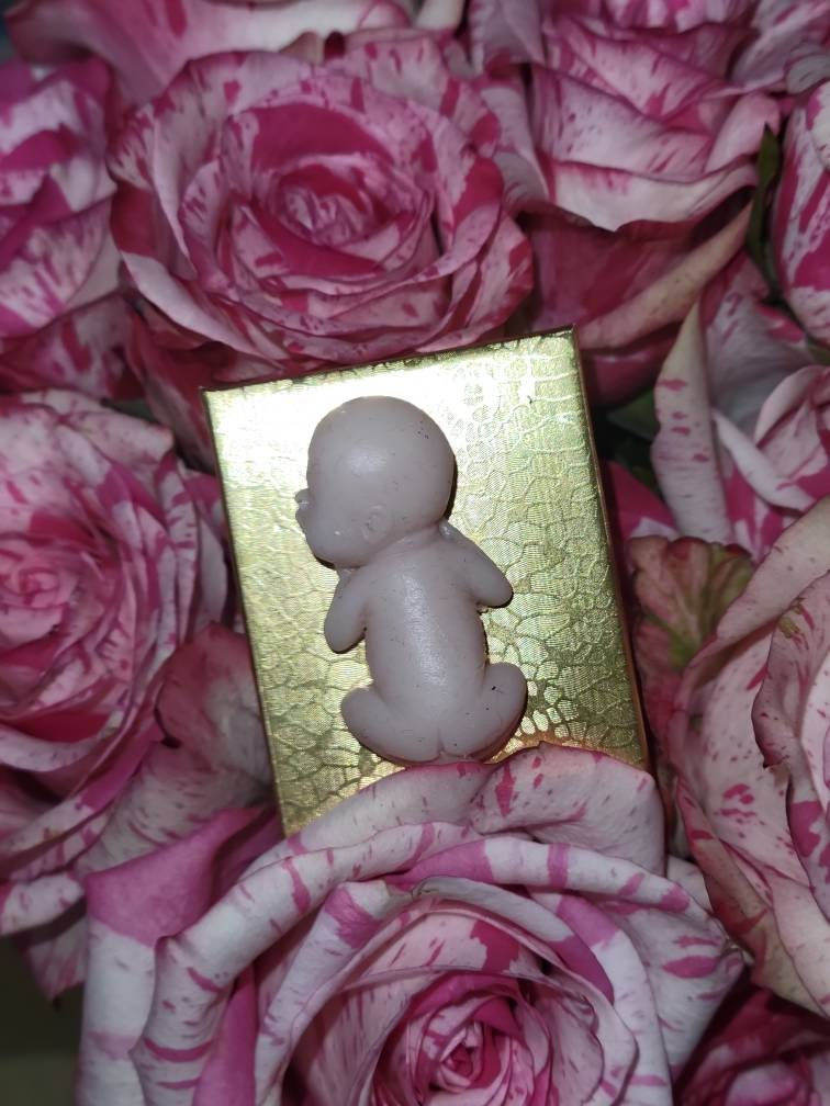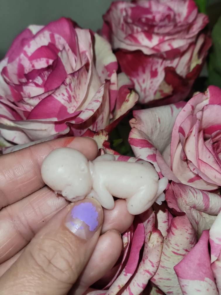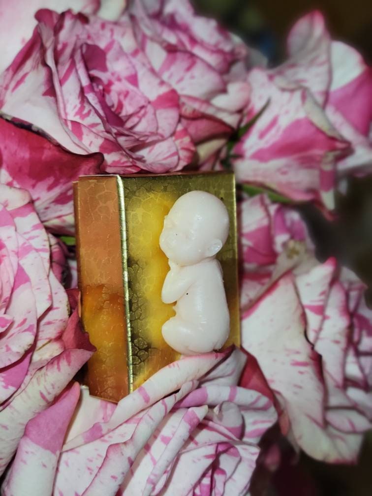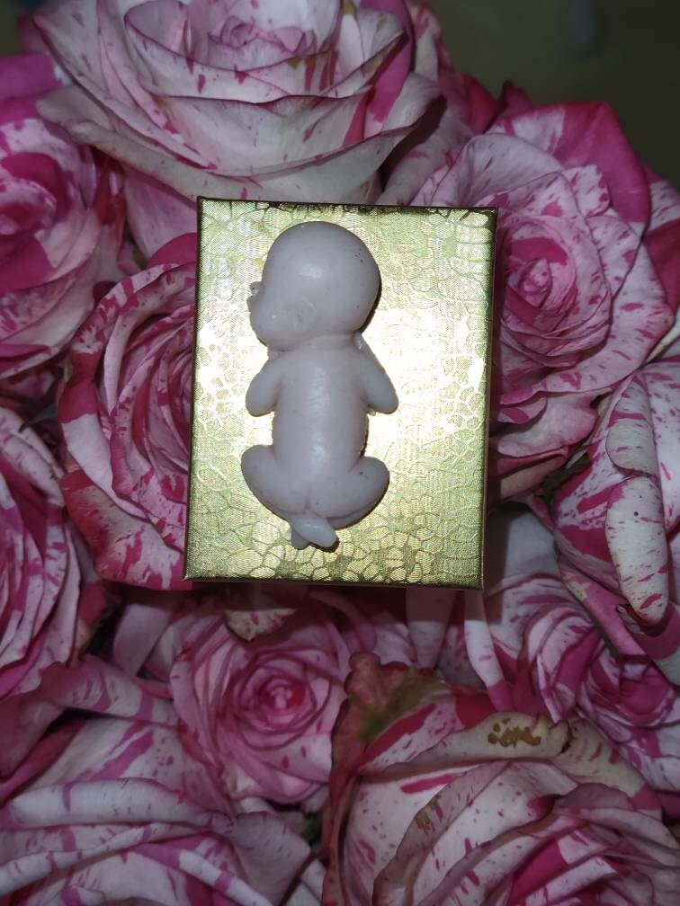 Eco flex 10 silicone very squishy and flexible, real sizing gestational baby, flat belly side
