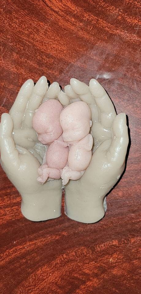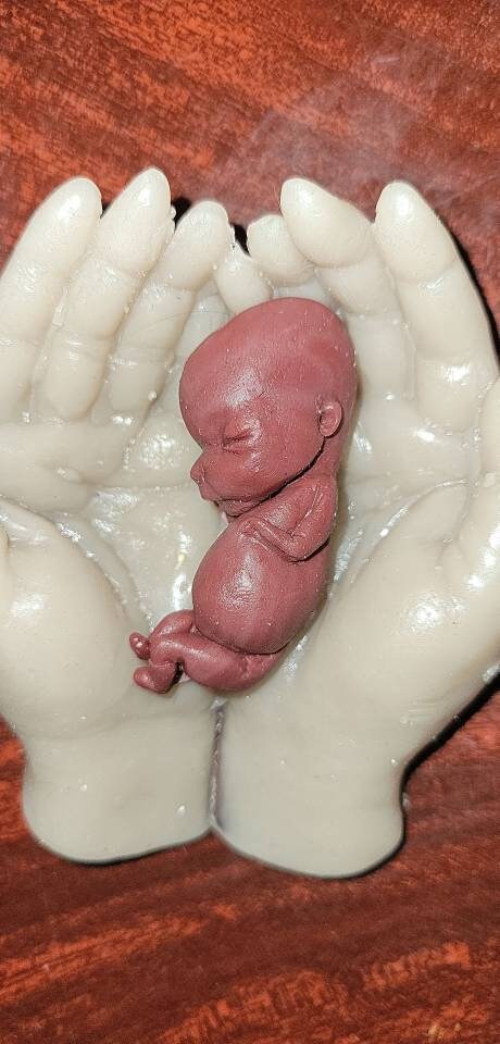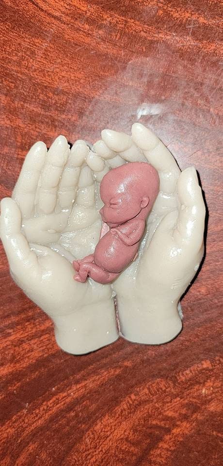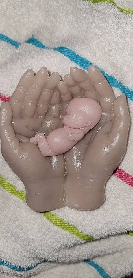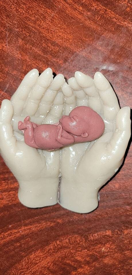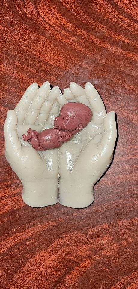 Memorial silicone baby fetus in silicone hands