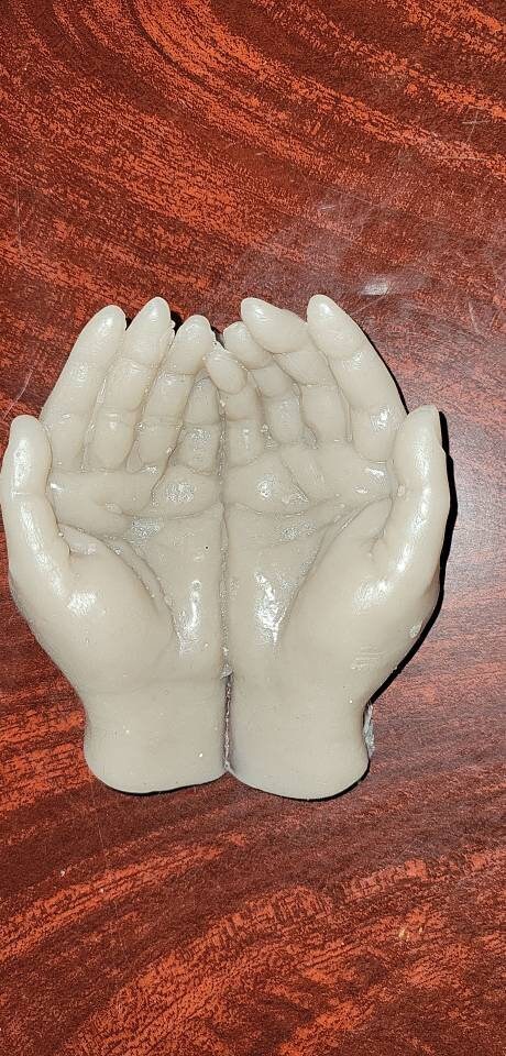 Very soft and squishy. Real size memorial babies ! Back of hands are flat !! No returns. EACH order is custom poured specially