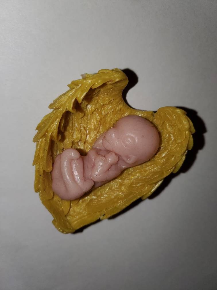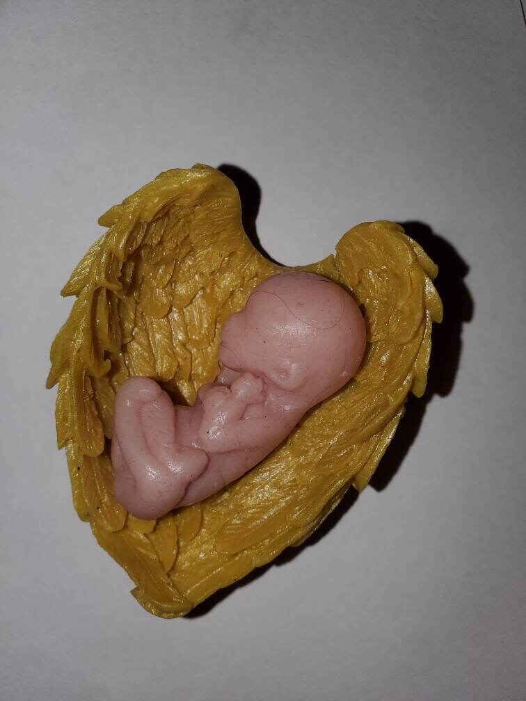 12 week gestational fetus memorial silicone baby in silicone wings heart