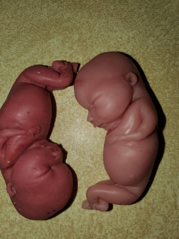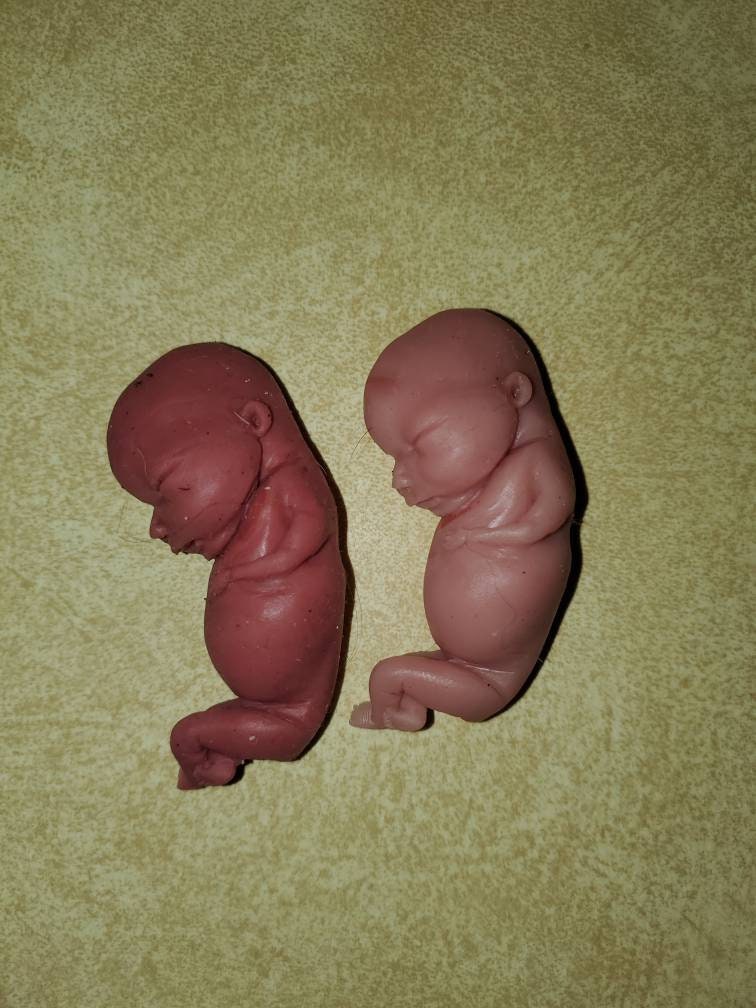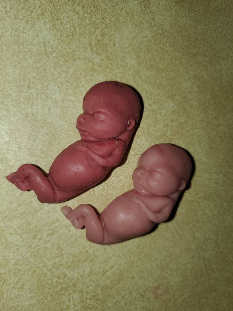 Eco flex 20 silicone very soft squishy and flexible. Real size of 13 week fetus memorial baby. You choose color. Each baby is custom made specially per order, feel free to message any other custom details you are wsnting. Back side is flat. No returns.