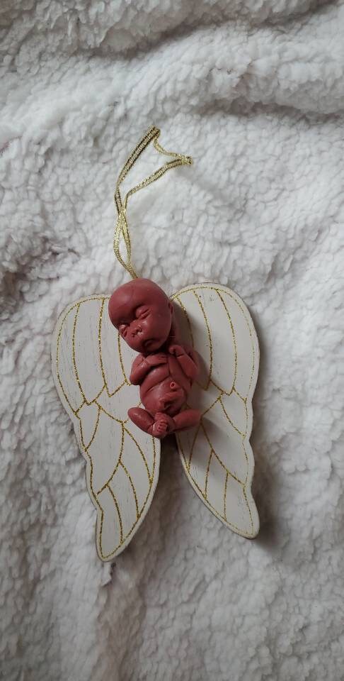 14 week gestation fetus memorial silicone baby Christmas ordement with wings