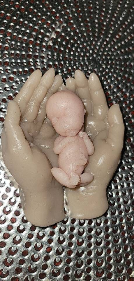 14 week gestation silicone memorial baby in silicone hands