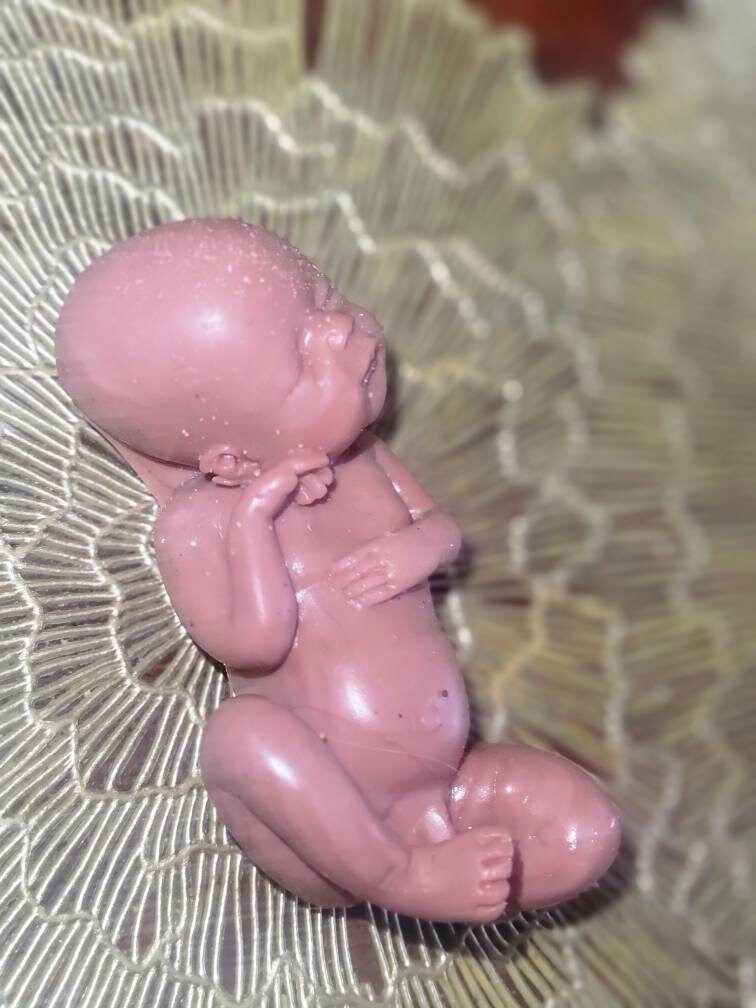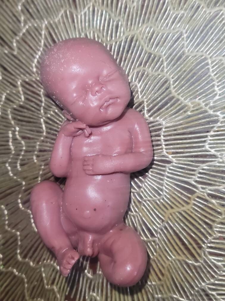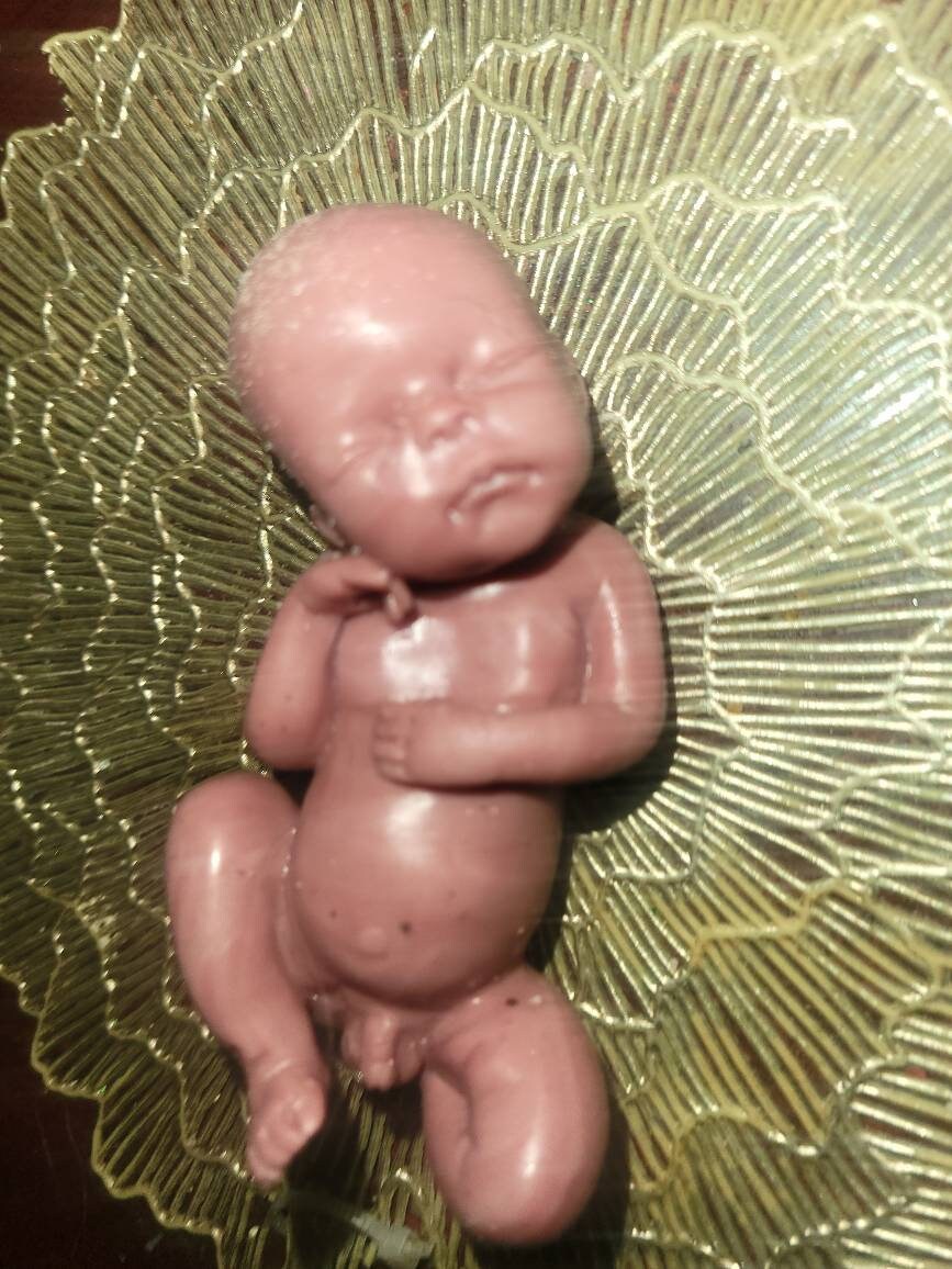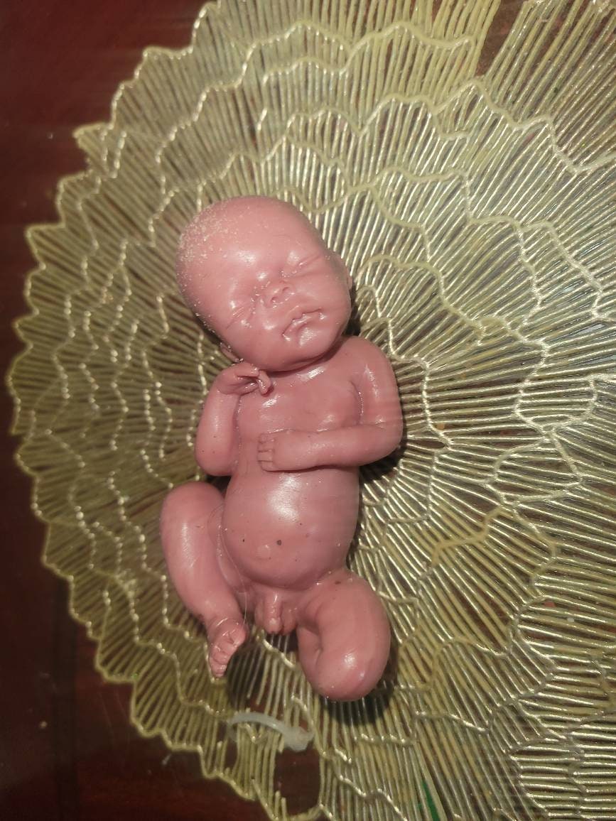 Poured in red to look like memorial fetus baby born too soon or I can pour in Caucasian to look like it's just a miniature  newborn baby. Either way will come with memorial card. The back of this baby is flat /but can be smoothed to be full body baby *up to buyer to do* or $45 extra for me to do. Each is custom poured specially per order