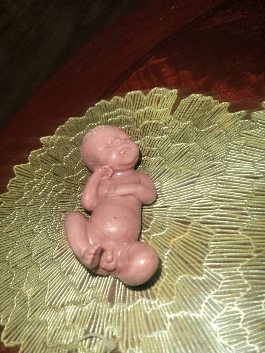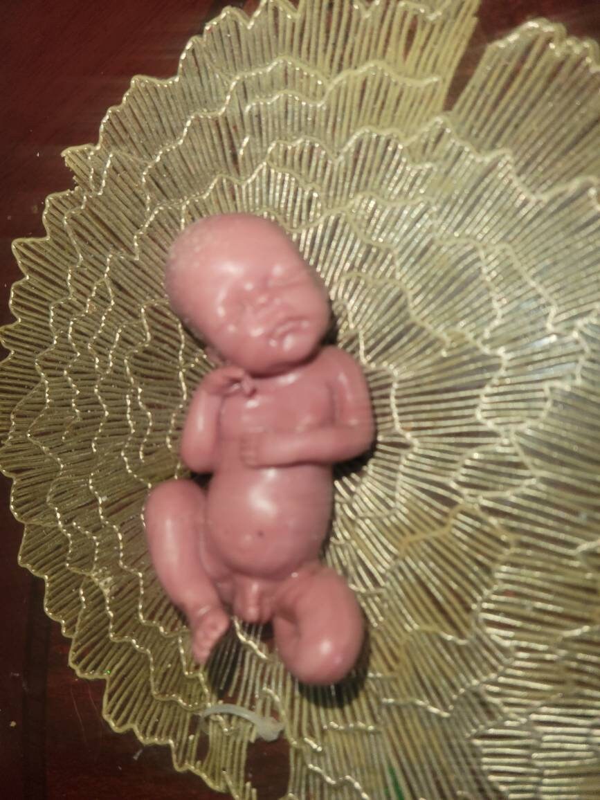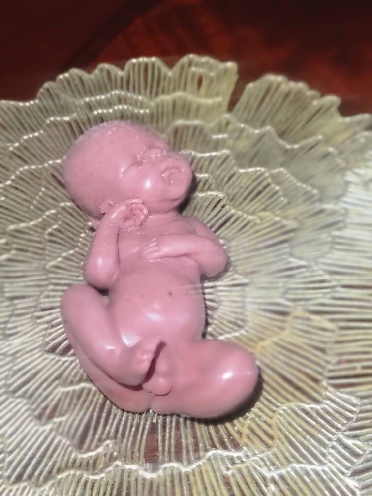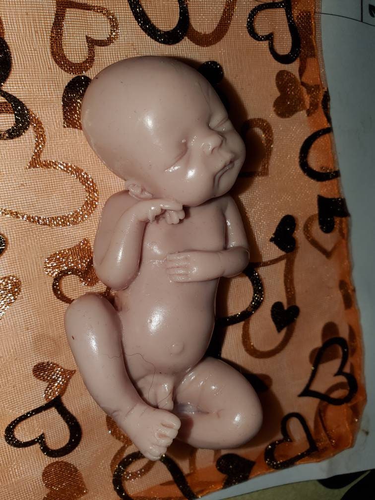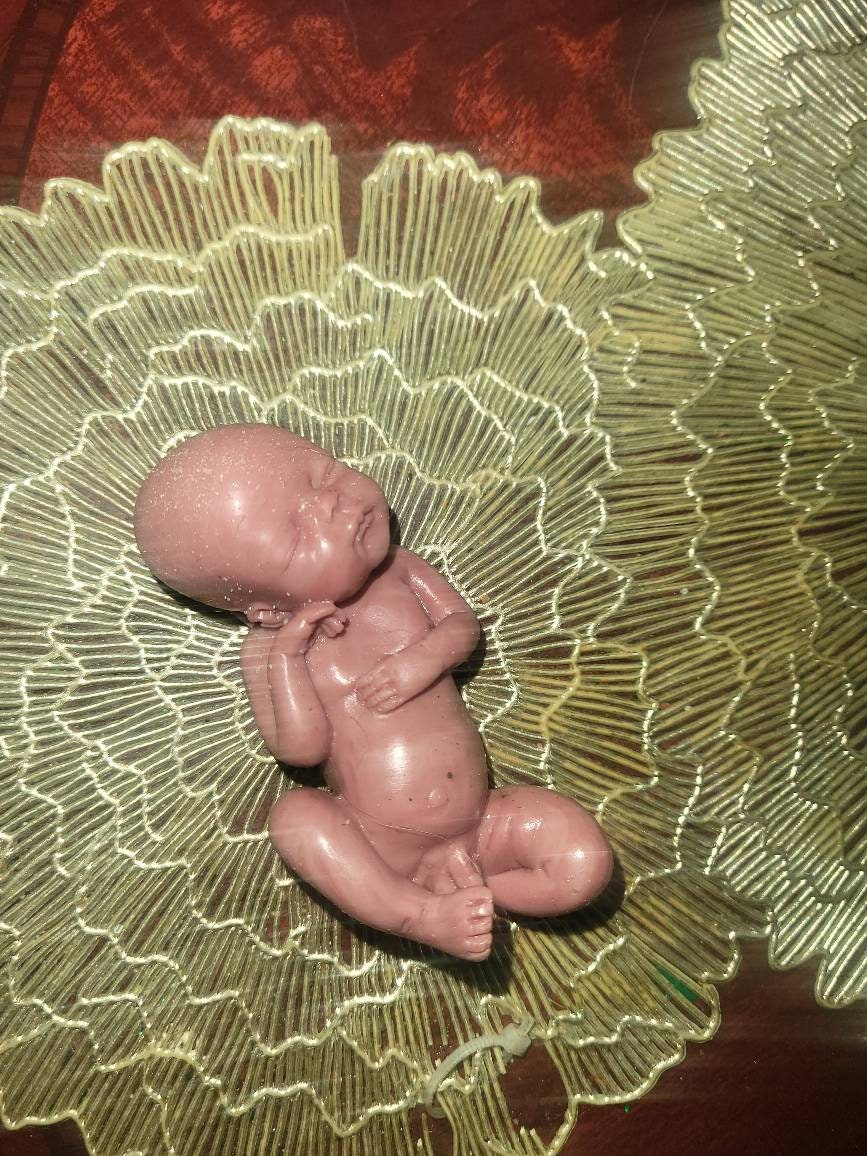 Poured in red to look like memorial fetus baby born too soon or I can pour in Caucasian to look like it's just a miniature  newborn baby. Either way will come with memorial card. The back of this baby is flat /but can be smoothed to be full body baby *up to buyer to do* or $45 extra for me to do. Each is custom poured specially per order