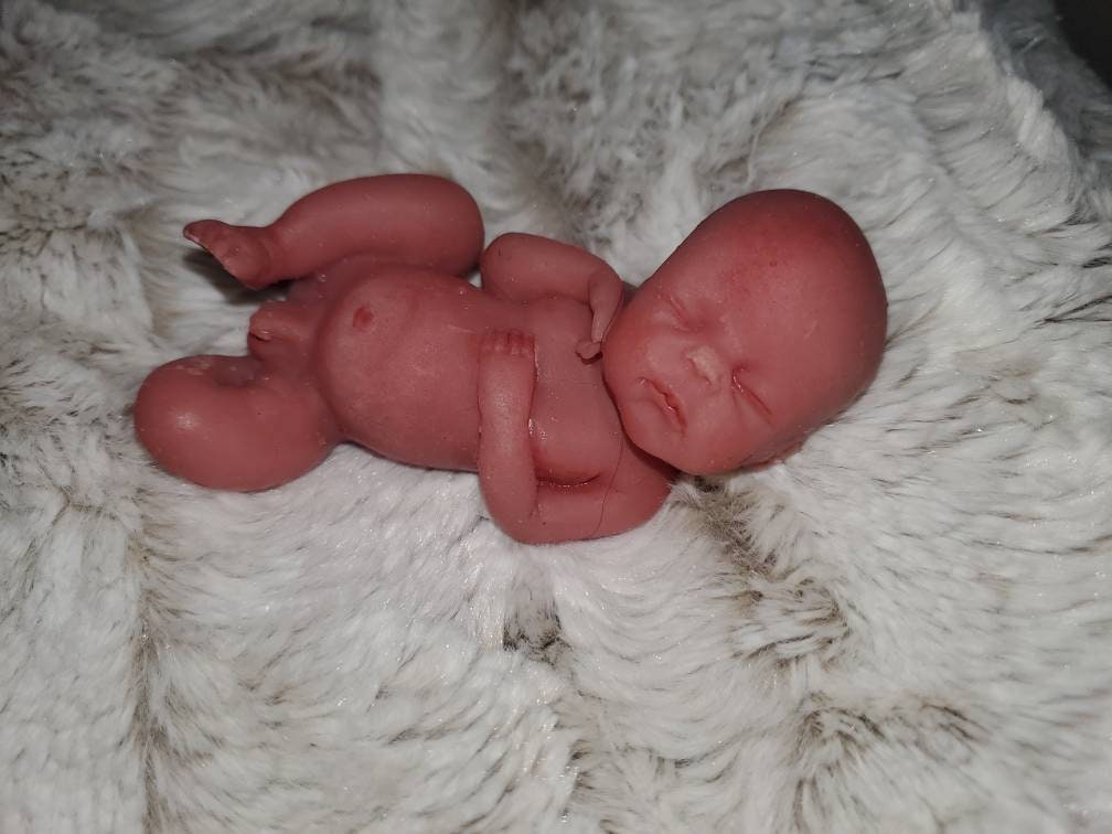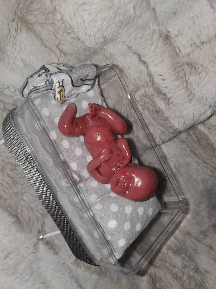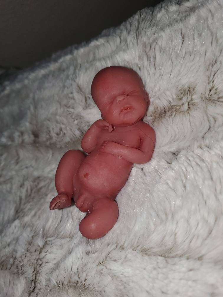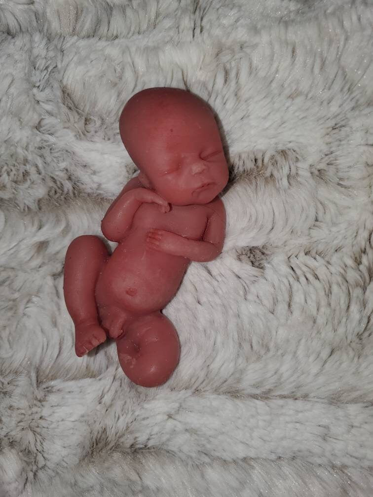 Poured in red to look like memorial fetus baby born too soon or I can pour in Caucasian to look like it's just a miniature  newborn baby. Either way will come with memorial card. The back of this baby is flat /but can be smoothed to be full body baby *up to buyer to do*  extra for me to do. Each is custom poured specially per order any custom details you'd like added feel free to message me . Photo props not included