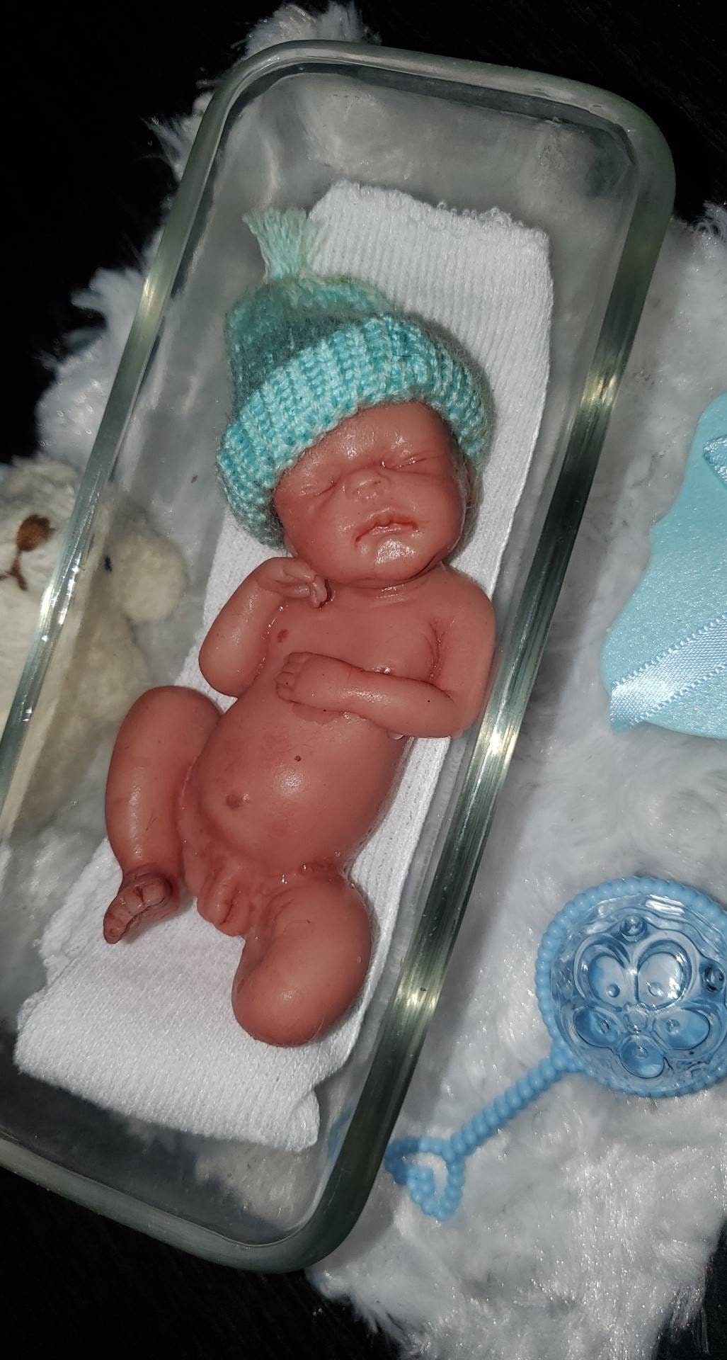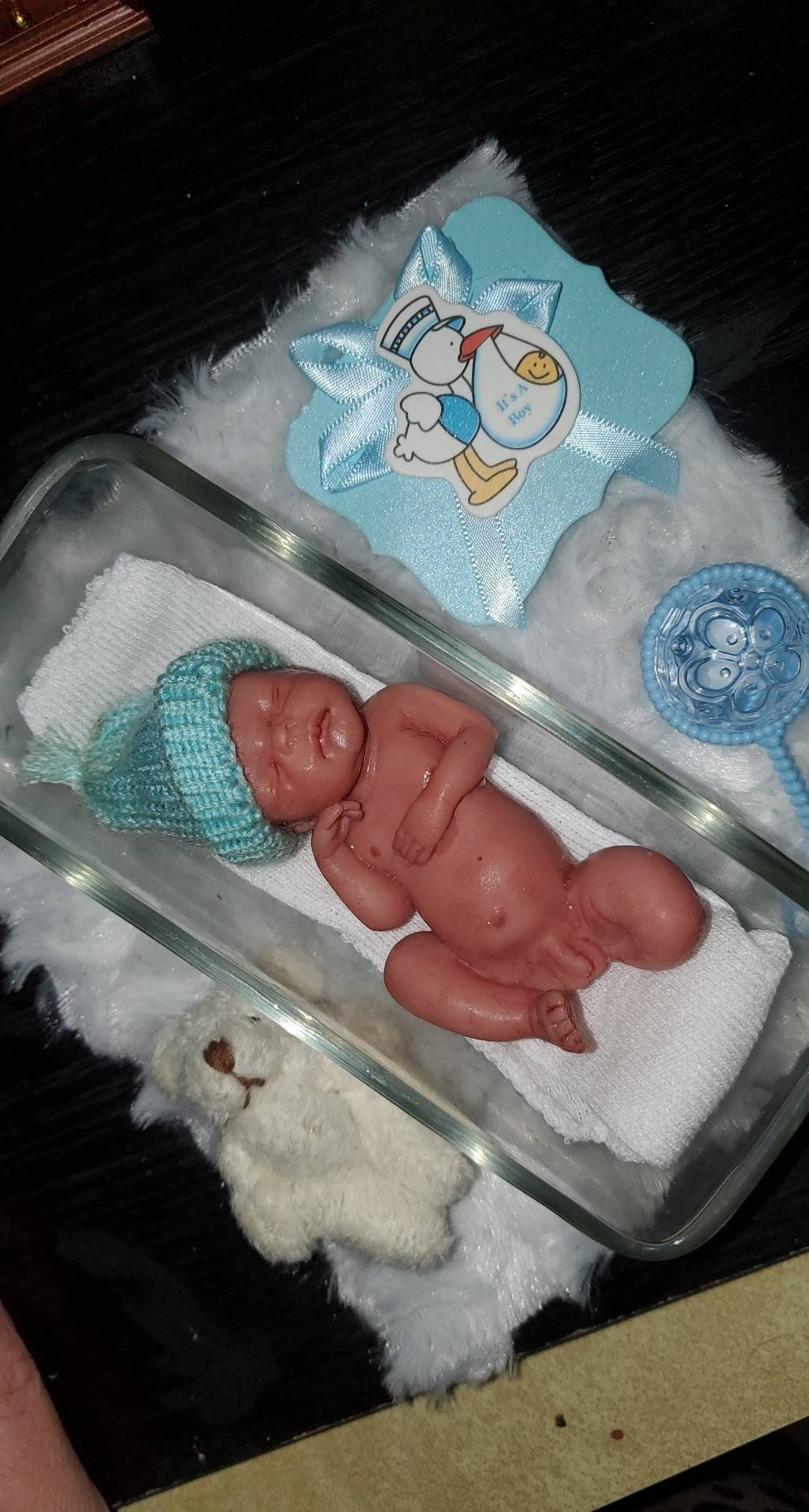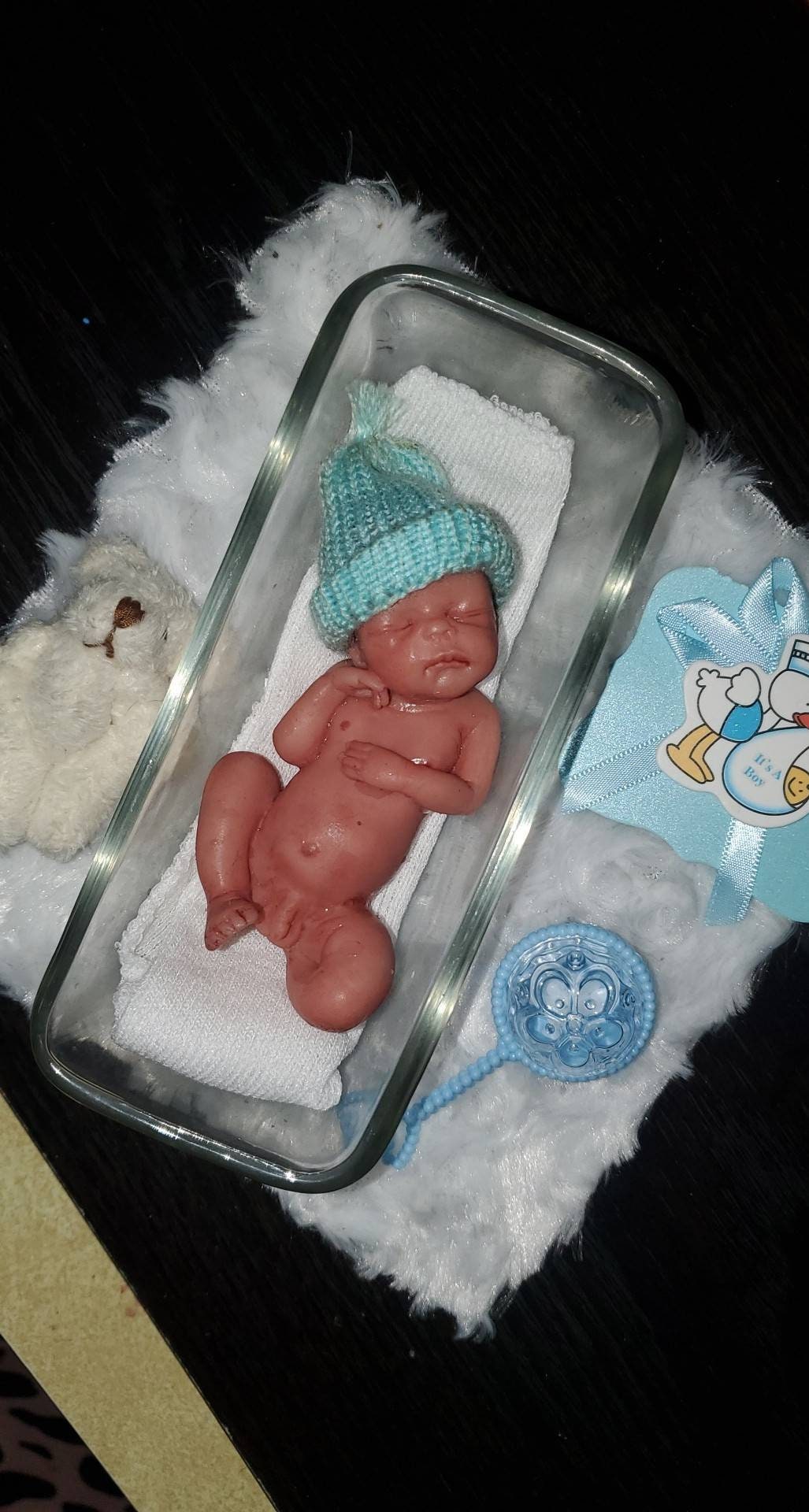 Poured in red to look like memorial fetus baby born too soon or I can pour in Caucasian to look like it's just a miniature  newborn baby. Either way will come with memorial card. The back of this baby is flat /but can be smoothed to be full body baby *up to buyer to do*  extra for me to do. Each is custom poured specially per order any custom details you'd like added feel free to message me . Photo props not included