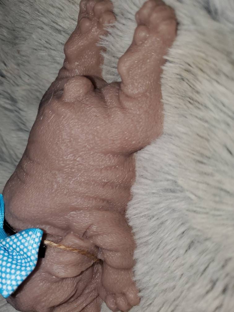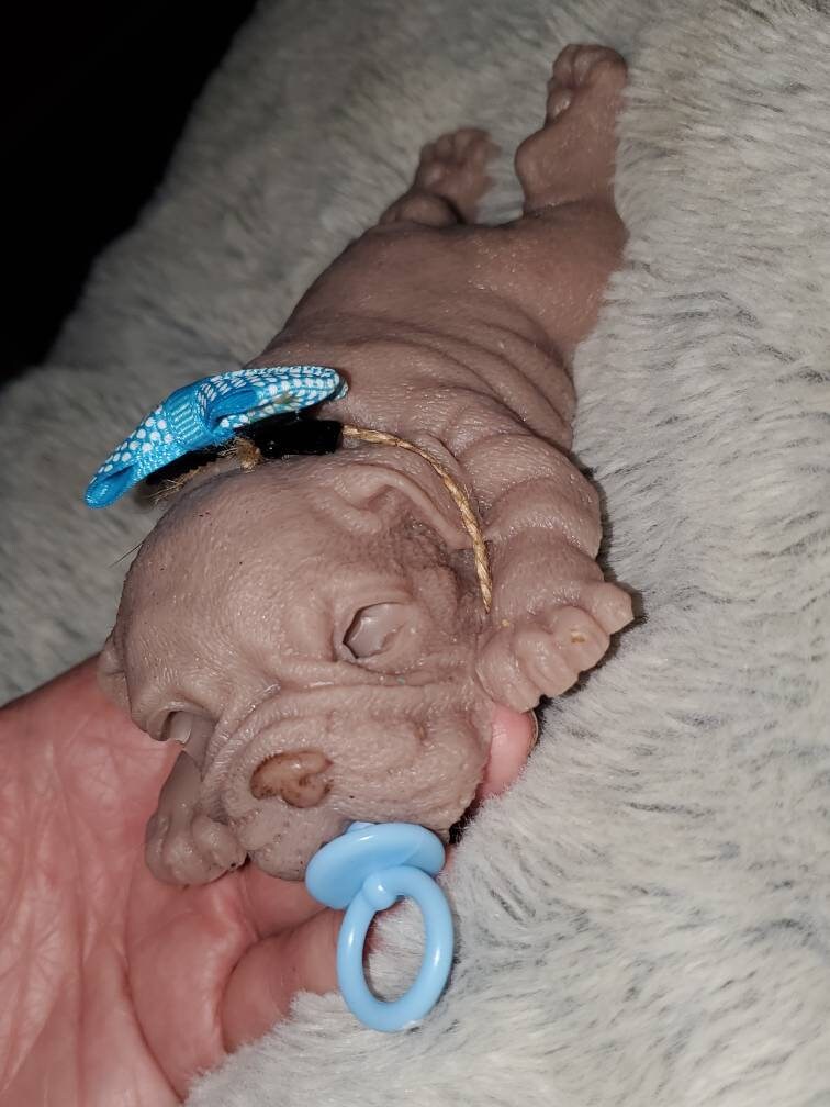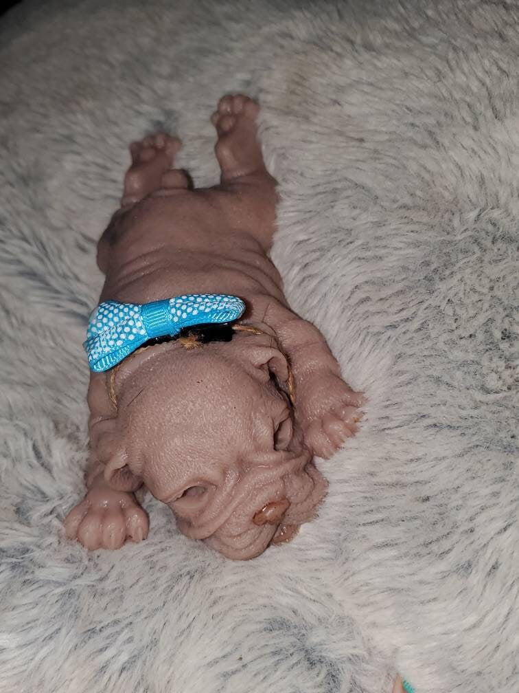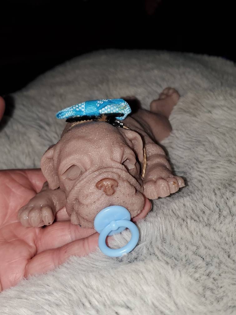 This sweet little silicone puppy is made from EcoFlex 10 soft blend silicone, giving it an ultra-soft, squishy, and flexible feel - perfect for cuddling, collecting, or memorial purposes. The puppy features a flat bottom so it sits nicely for display.
