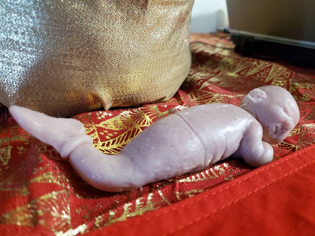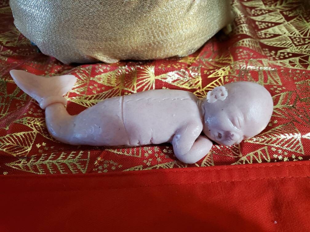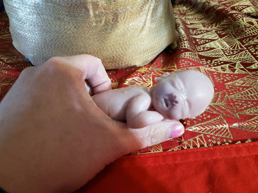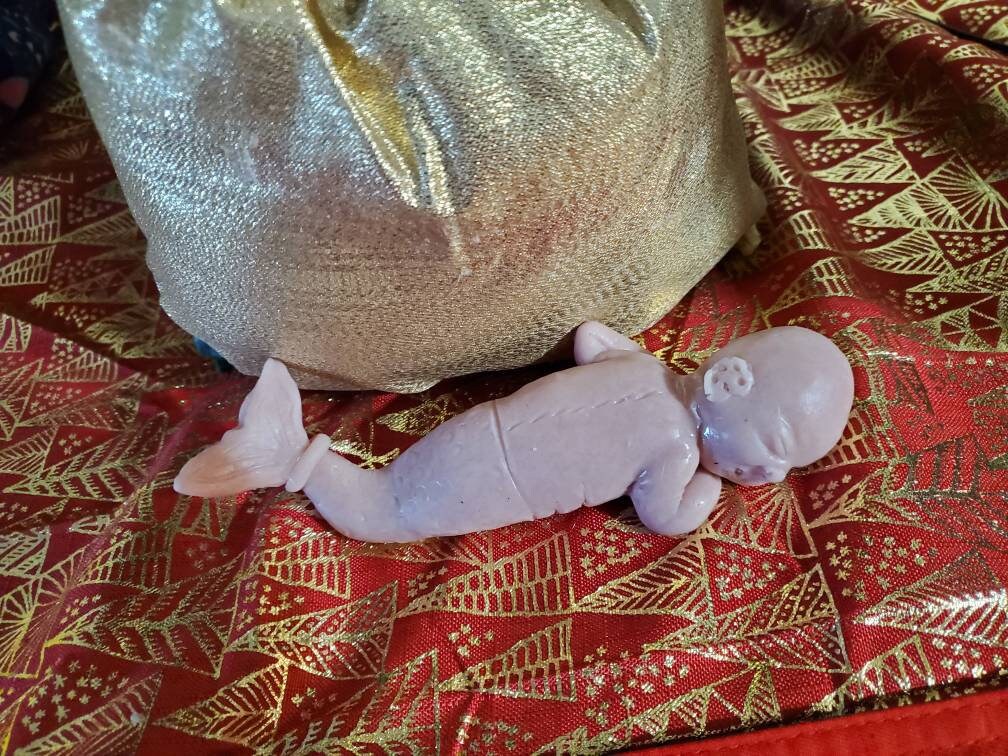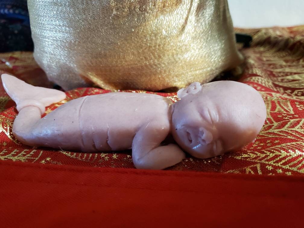 Baby has flat bottom side, but fully details front side. Poured in soft blend silicone. Sculpted by Michelle Brier mandly. Poured by myself.