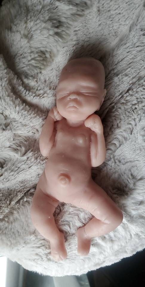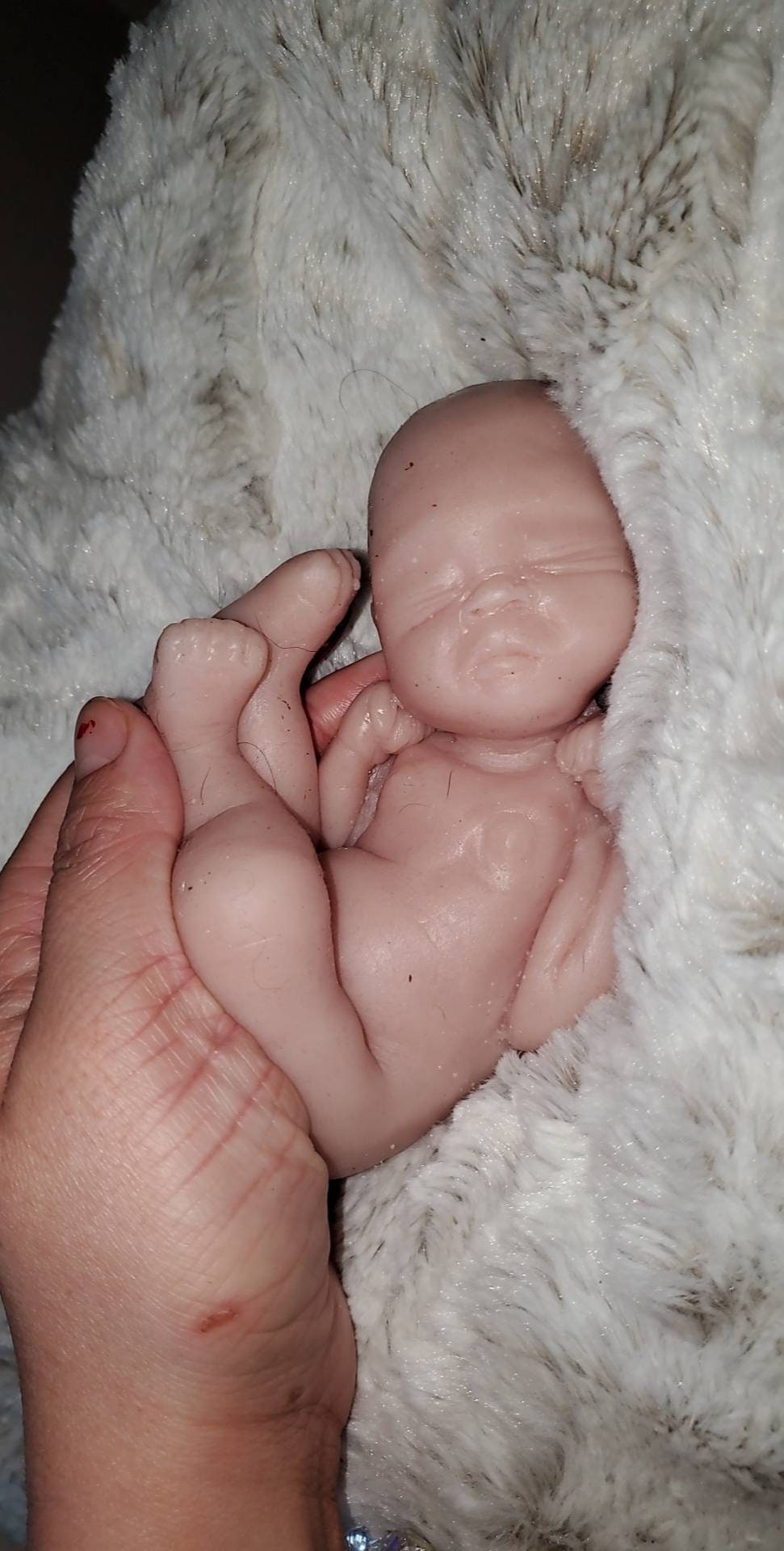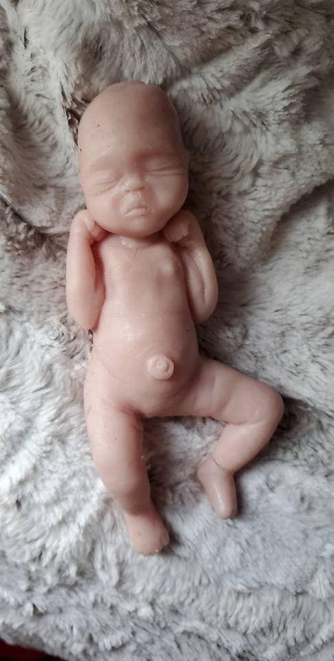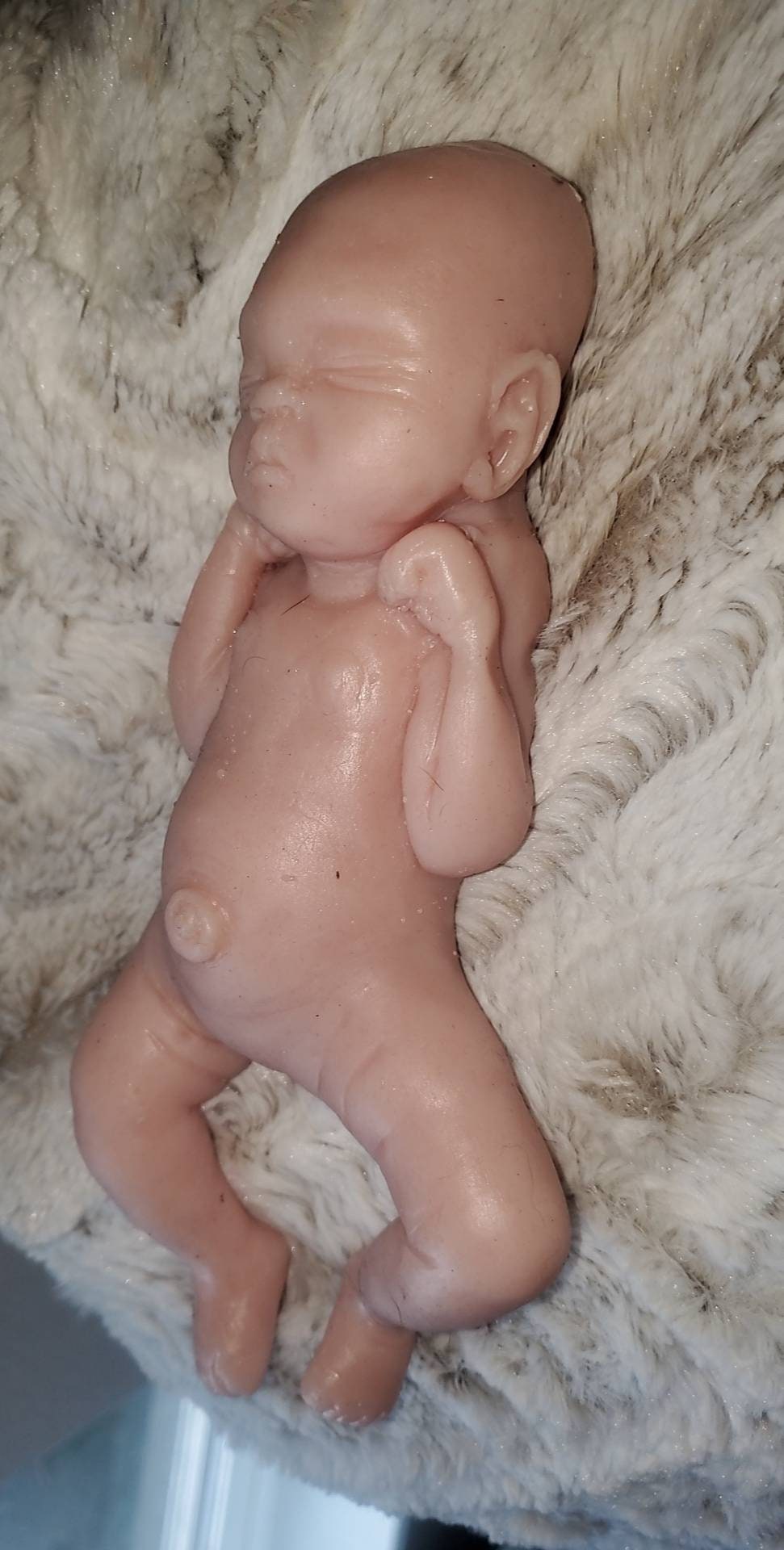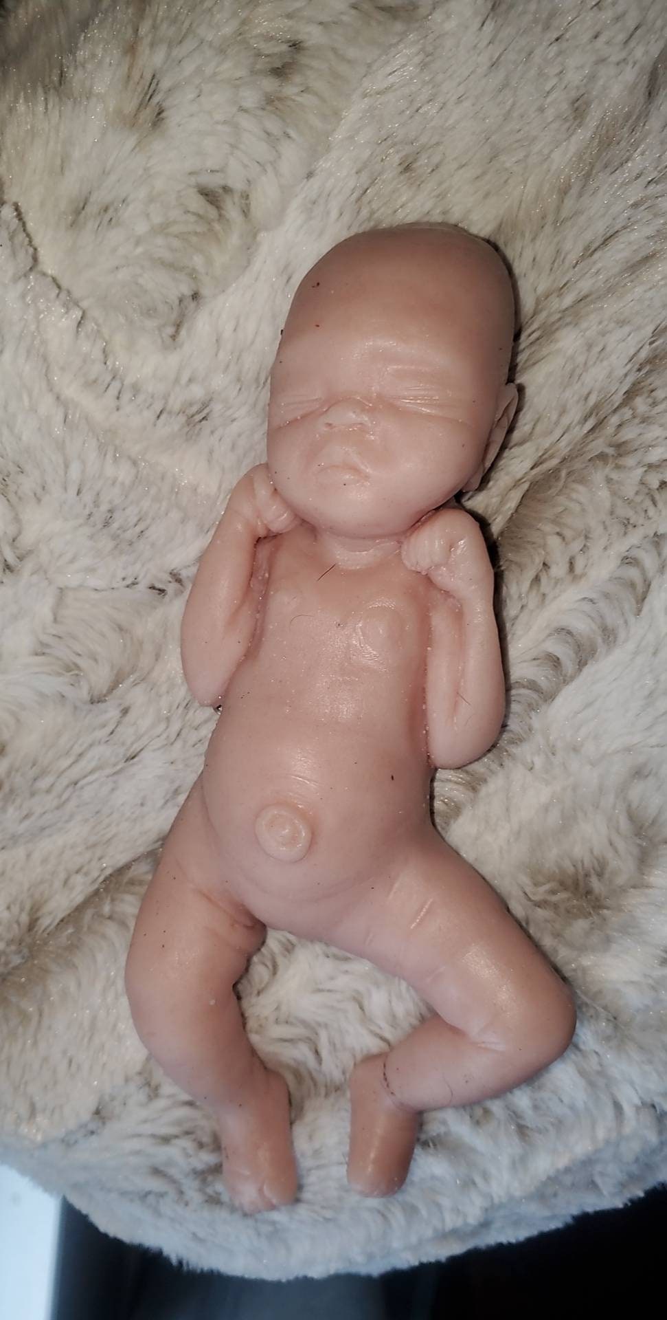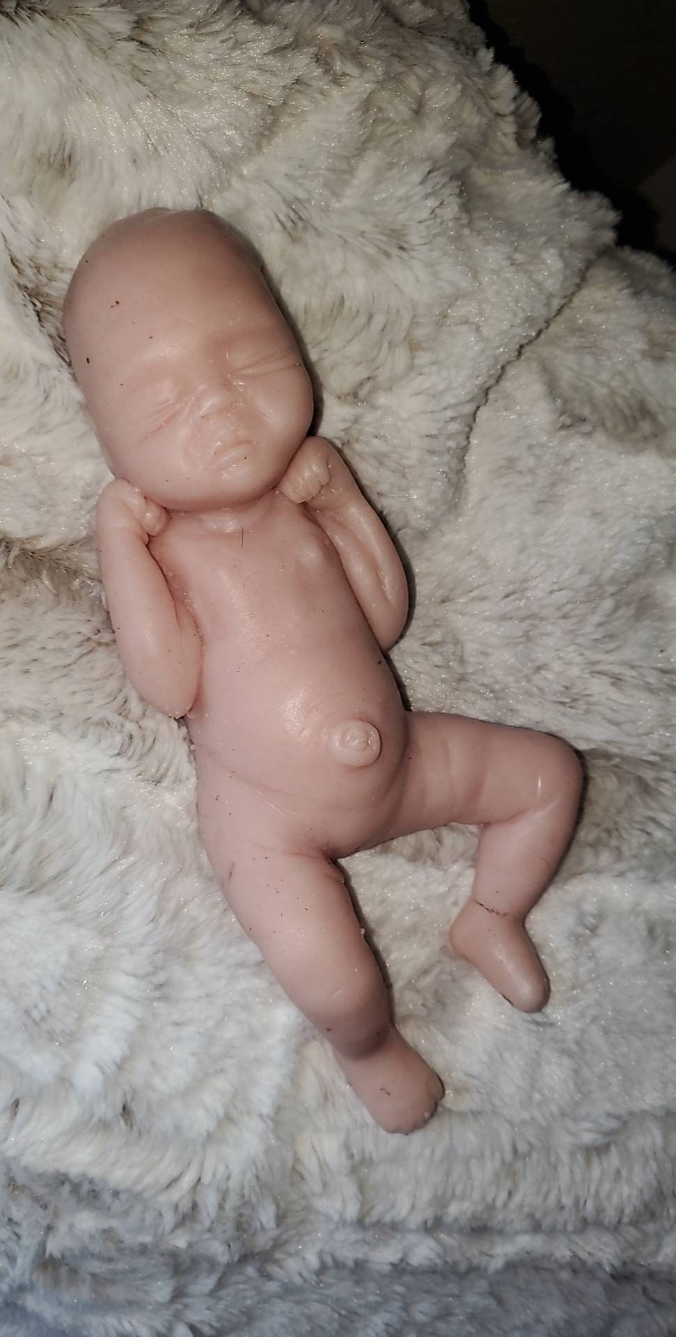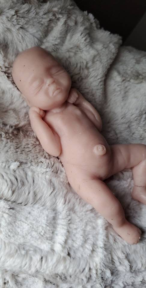 Poured in soft blend silicone. I can open mouth upon request. You can purchase blank or fully painted kit. No returns. Valerios reborn nursery. Custom pour for Blank only takes 1- day. Painting service will be around 1-2, weeks depending how much work I have ahead. Thank you valerios reborn nursery