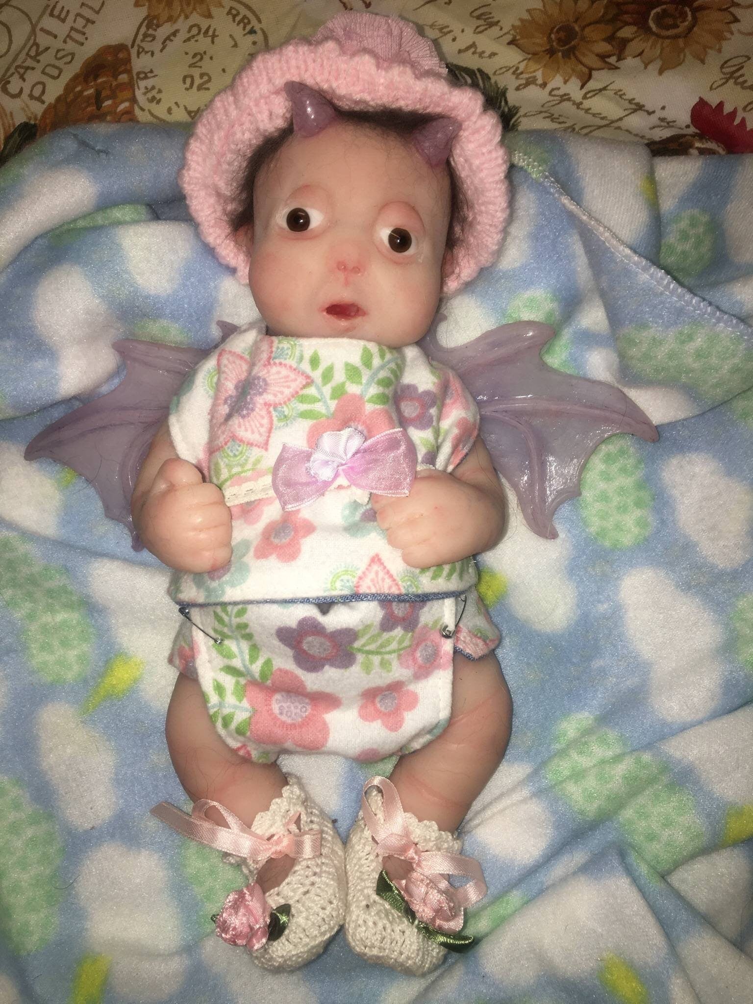 Poured in soft silicone, changaling has elf ears and 4 toes. Super chubby little thing and is 12" long being a cute preemie. Custom to order you can choose coloring if you don't see the option message me for Amy custom details