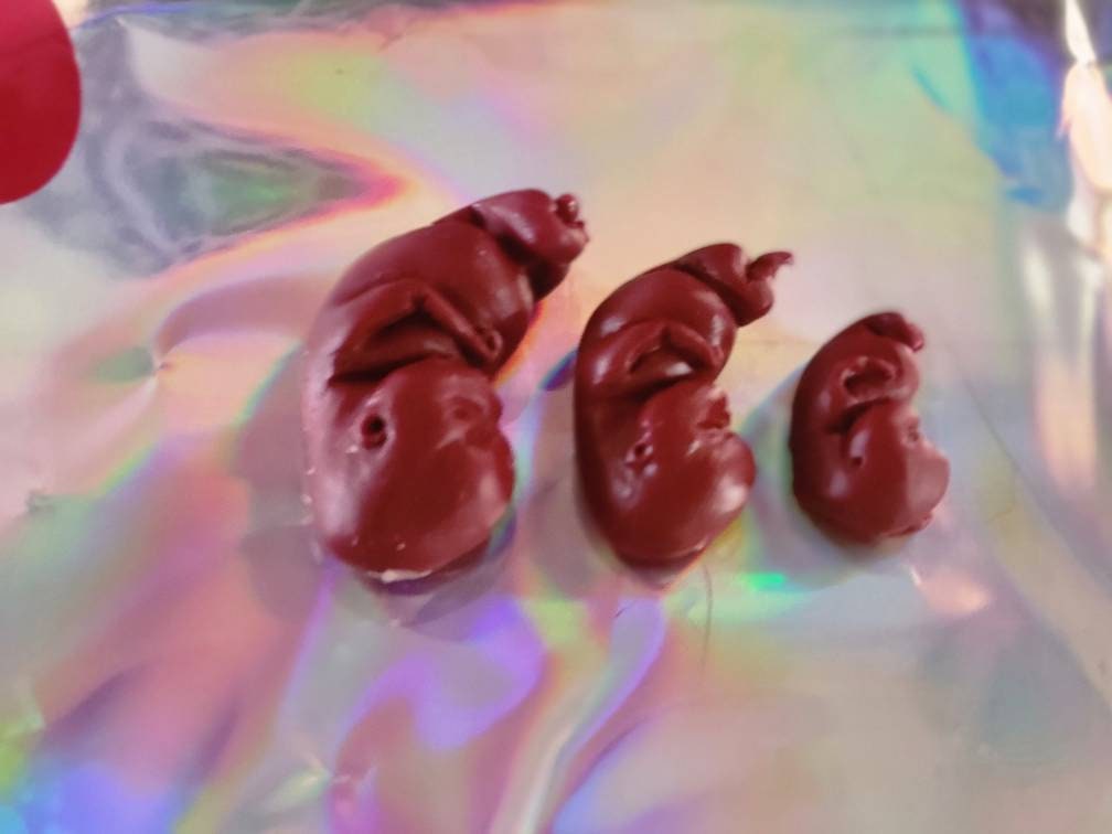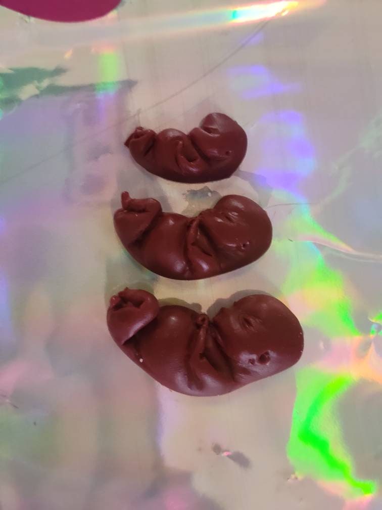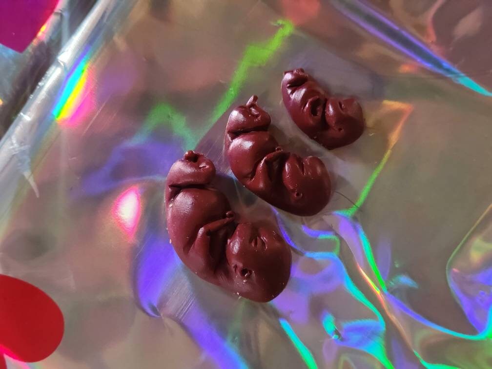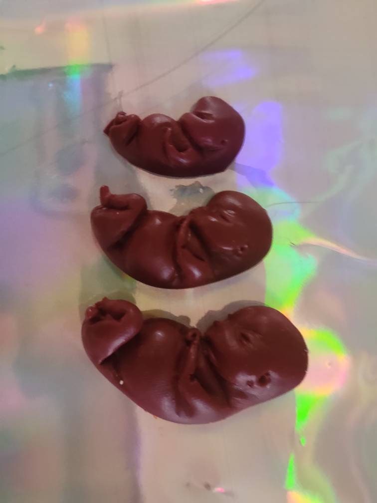 Custom to order. This listing is for a DARK RED FETUS. You choose REAL SIZING GESTATION. Comes with beautiful memorial card. Great for a gift for those who have lossed a baby. Great for grieving process. Each baby is custom to order will be shipping within 3 days priority mail shipping. Back side of fetus is flat. Front side is fully detailed
