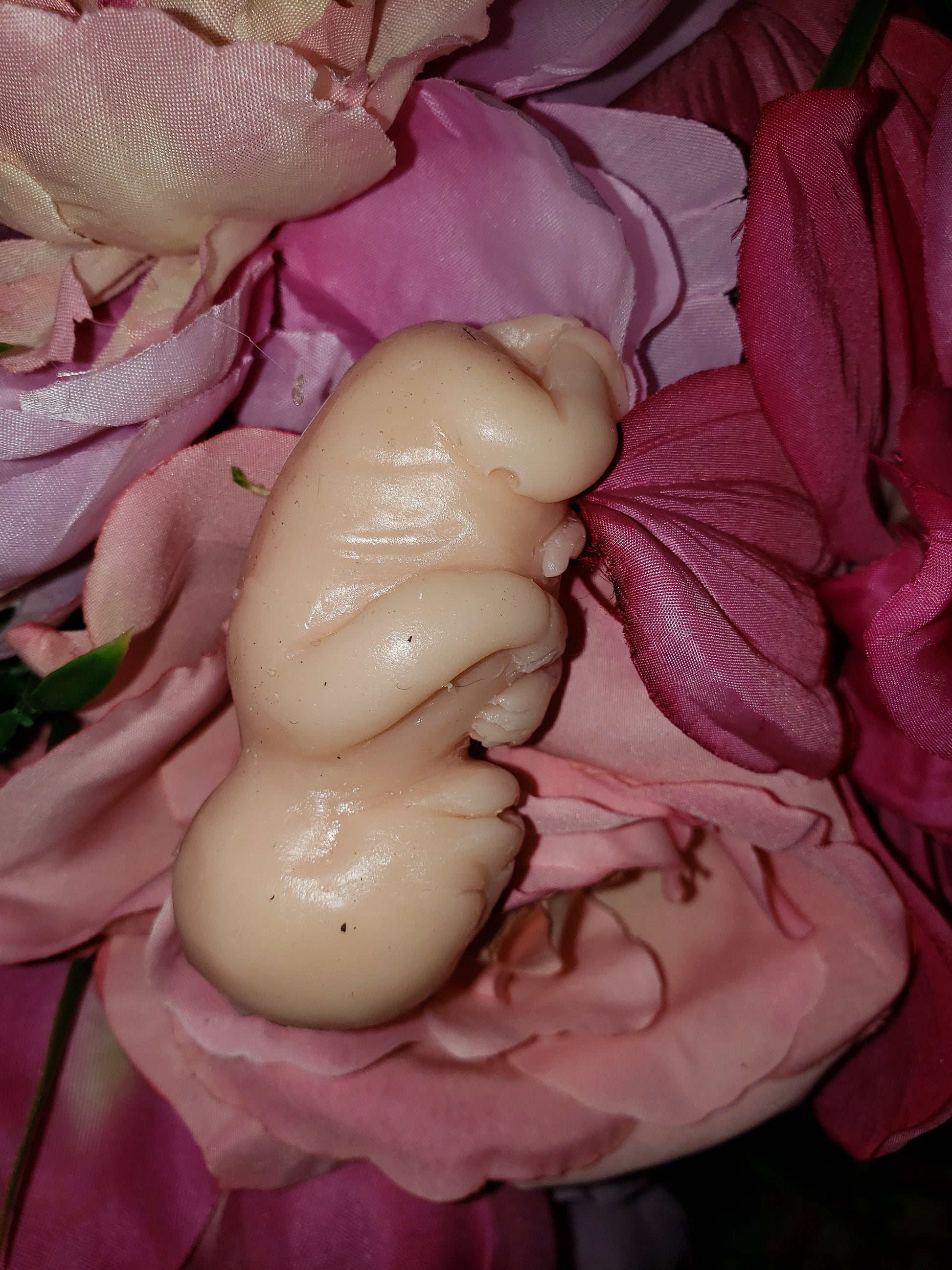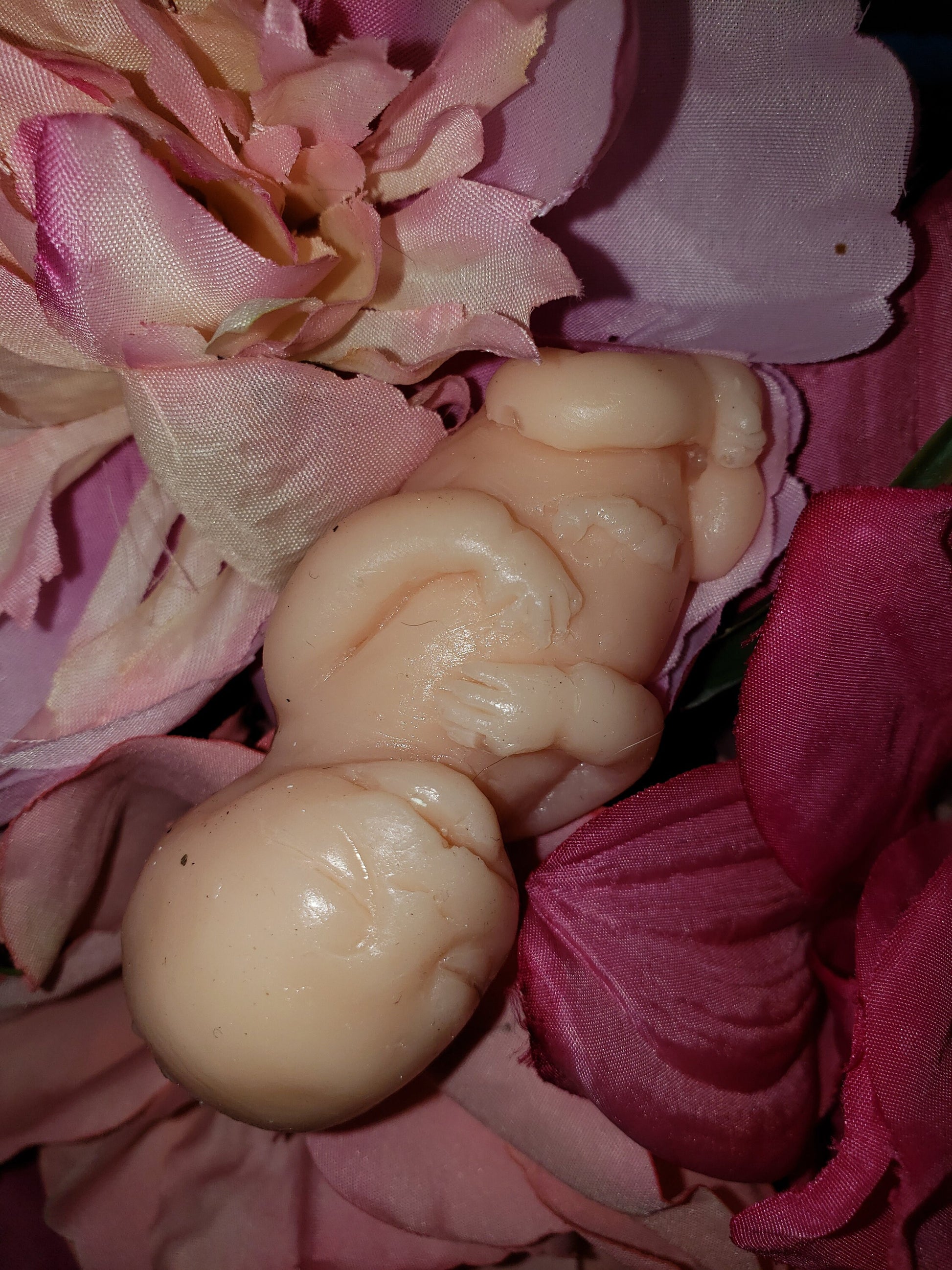 this is a full body silicone fetus has front and back, custom to order specially per order. comes with memorial gift. no returns
