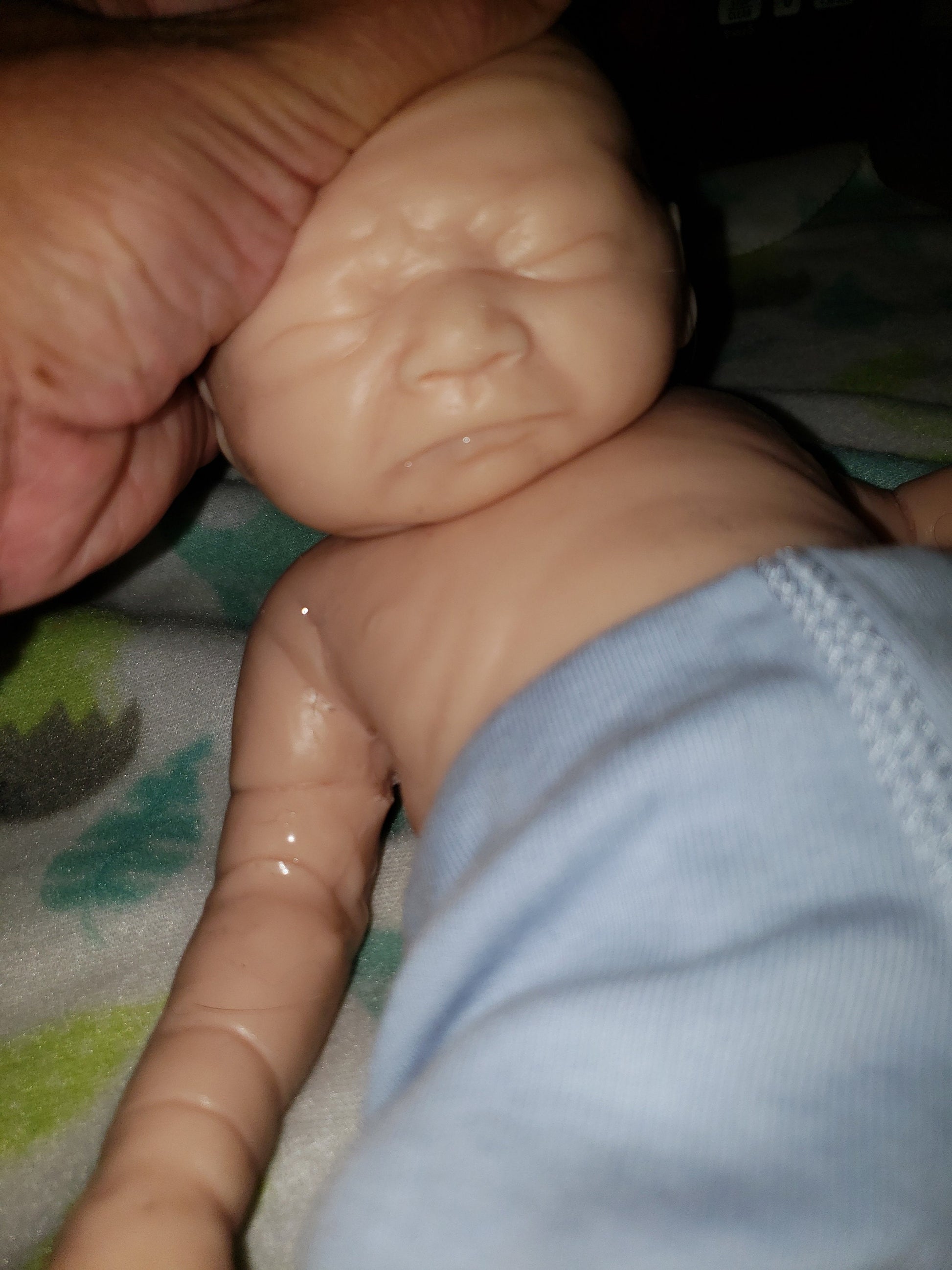 You can choose to have your baby arrive as a blank unpainted kit or fully painted and brought to life with realistic details. Sculpted by the incredibly talented Bracken Taylor Green and poured by Valerio’s Reborn Nursery.