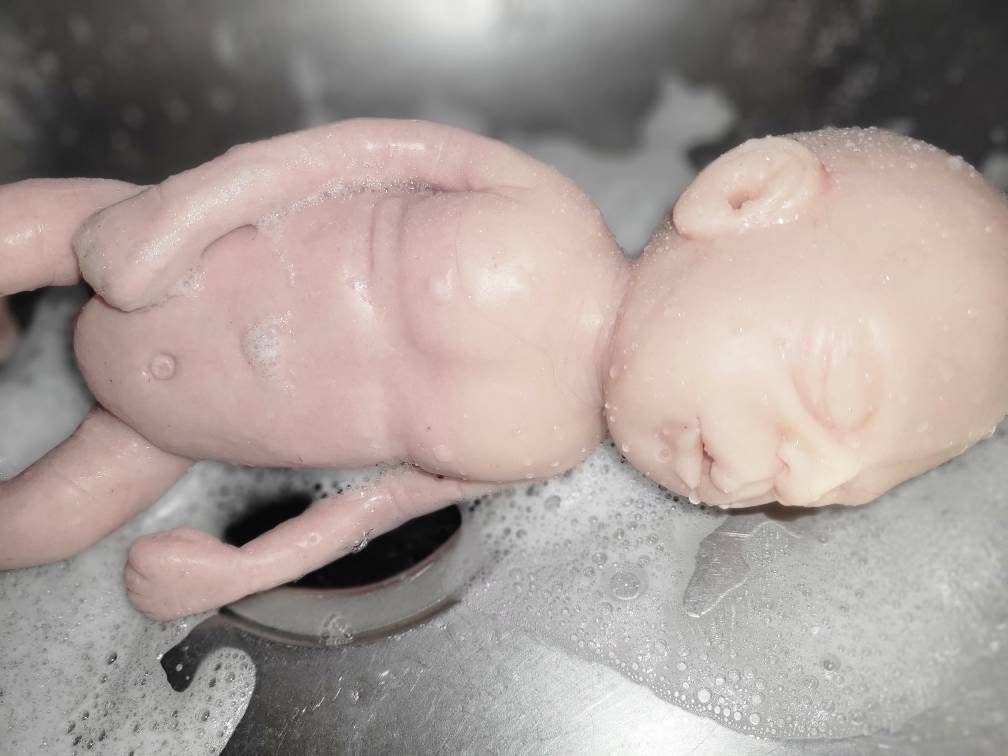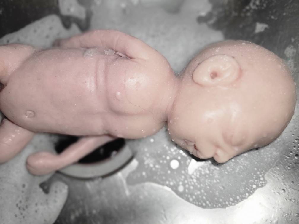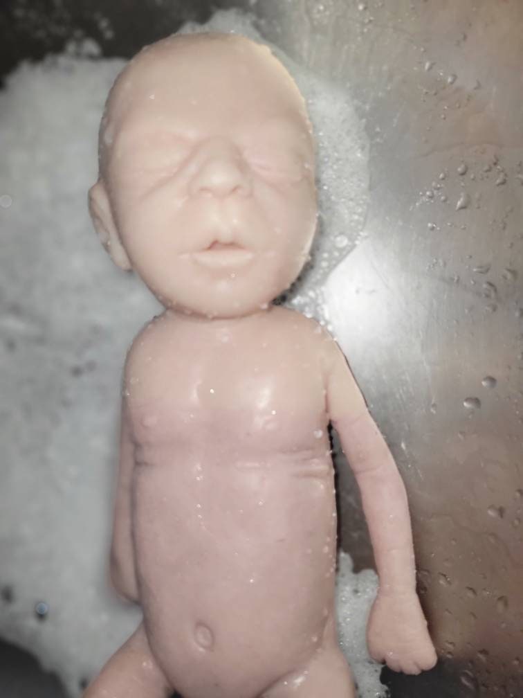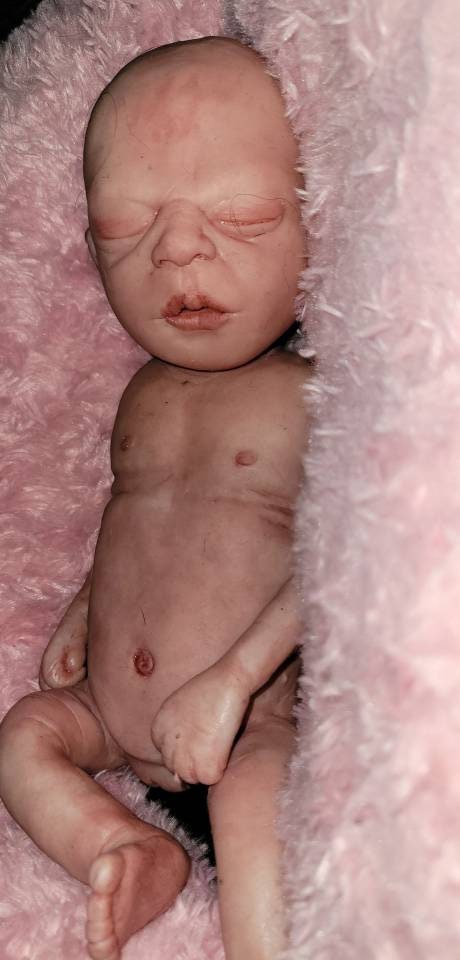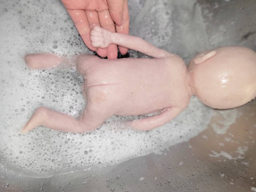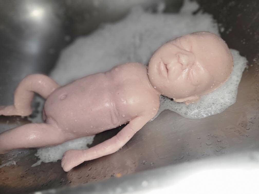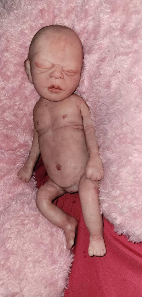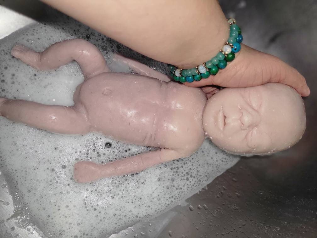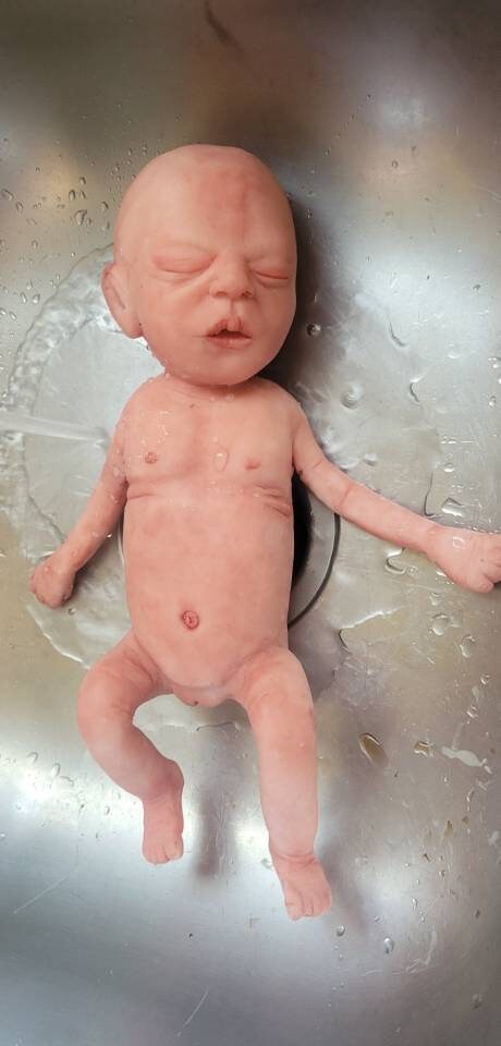 This adorable full-body silicone baby is hand-poured using high-quality EcoFlex 20 silicone, making it incredibly soft, squishy, and flexible. Its lifelike design includes an open mouth, perfect for a pacifier or bottle, adding to the realistic play experience.