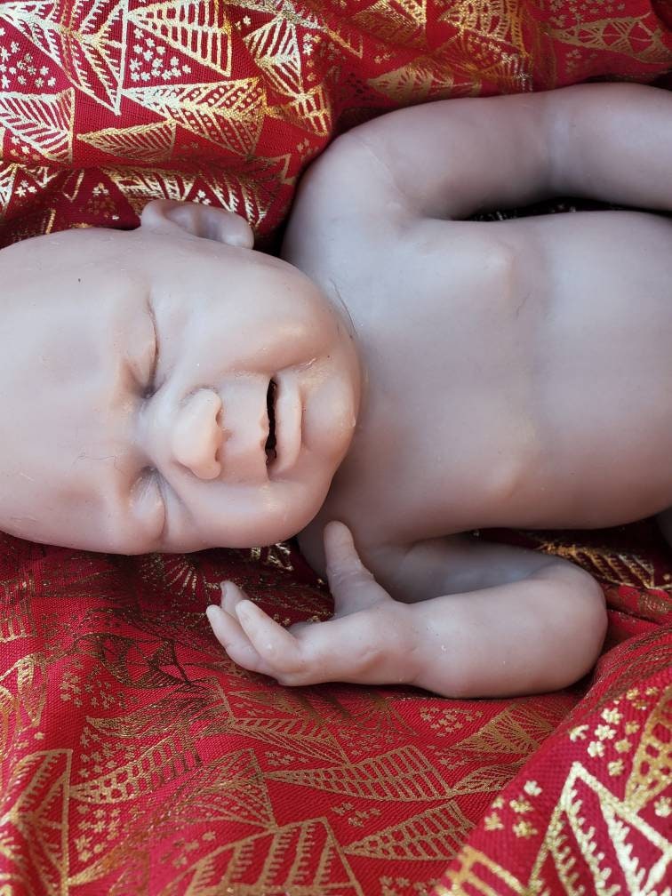 Introducing the exquisite "Amber Marie" sculpt, a beautifully crafted reborn doll designed to capture the essence of lifelike artistry. This lovely sculpt is a collaboration of care and skill, brought to life by the talented Pamela Erf of Bitz n Bows Babies and meticulously molded and poured by me, Valerio's Reborn Nursery.