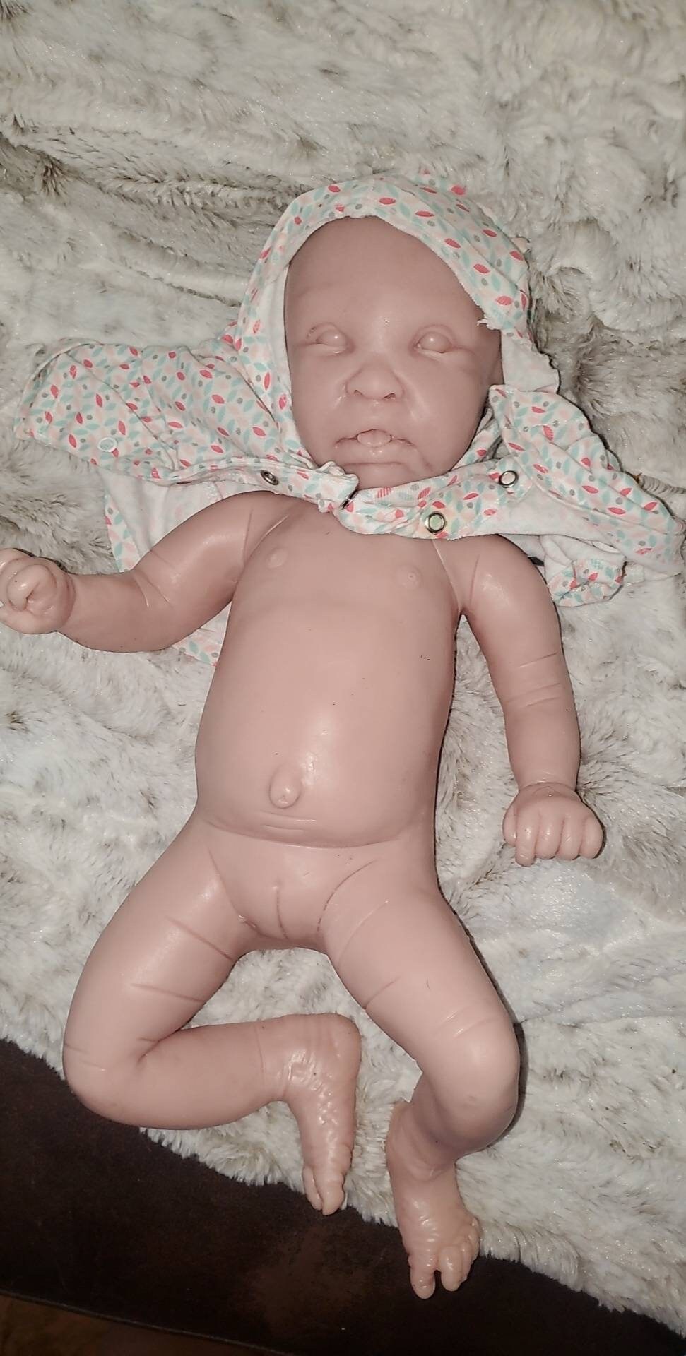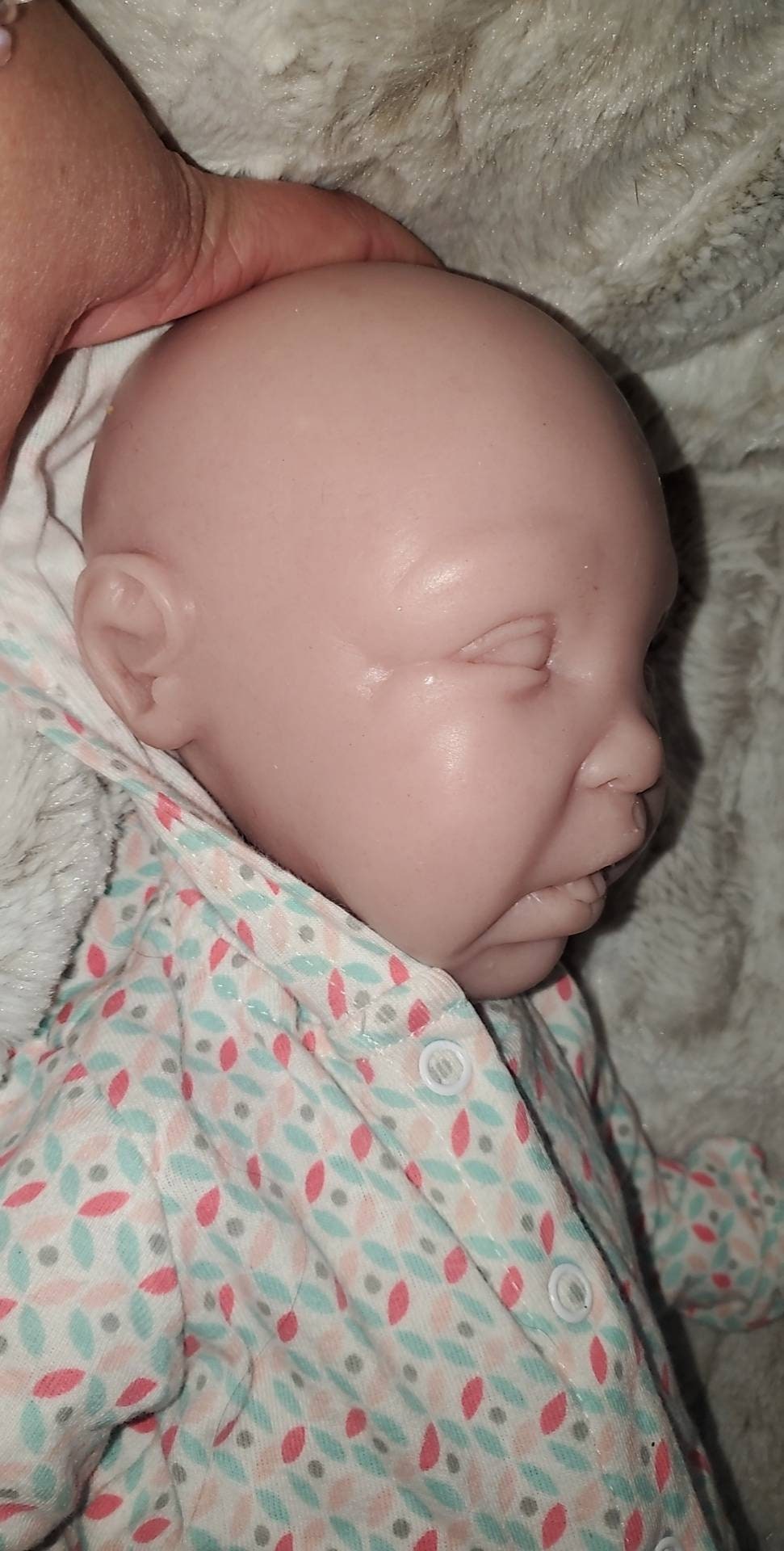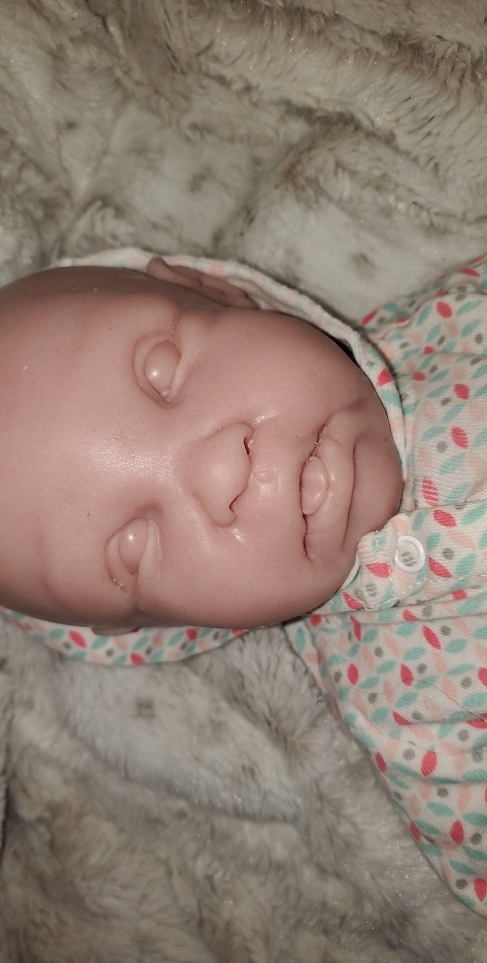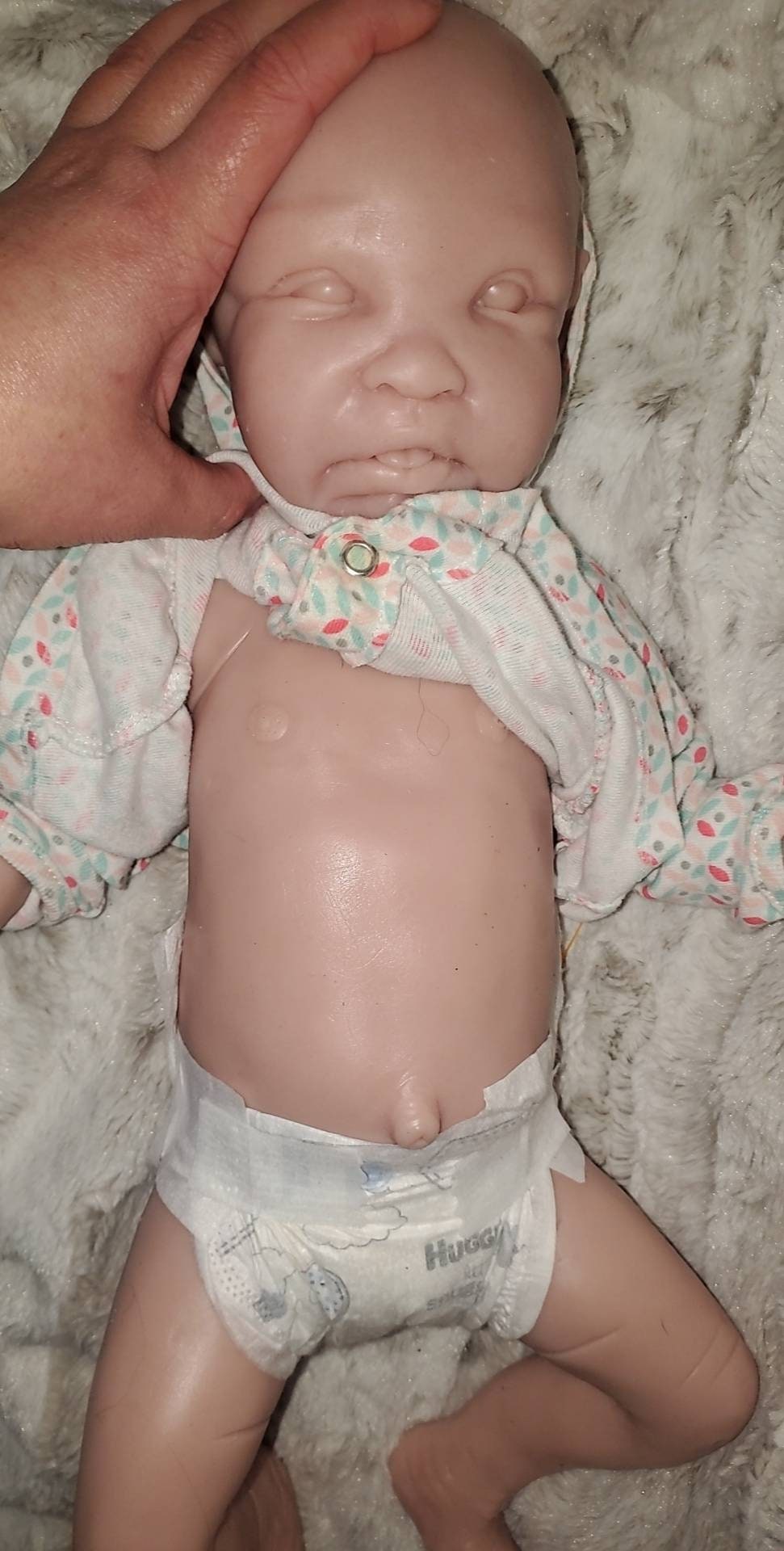 Beautiful baby girl poured in soft blend silicone. Head sculpted by Dianna Richards. Has open eyes, and tounge. body sculpted by Lynn Biggs. Casted and poured by me valerios reborn nursery. Can be full body silicone baby or head only for cuddle body. No returns