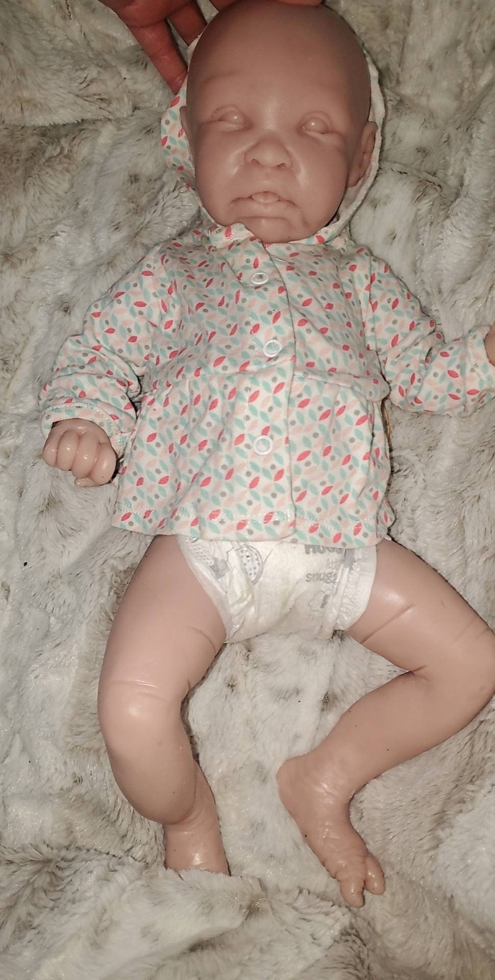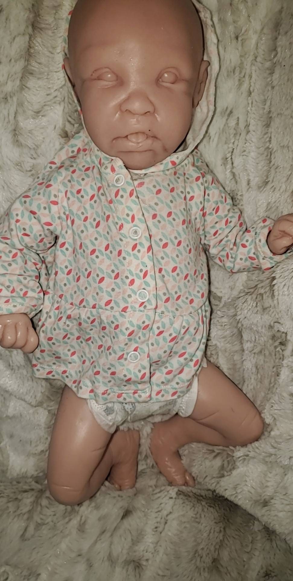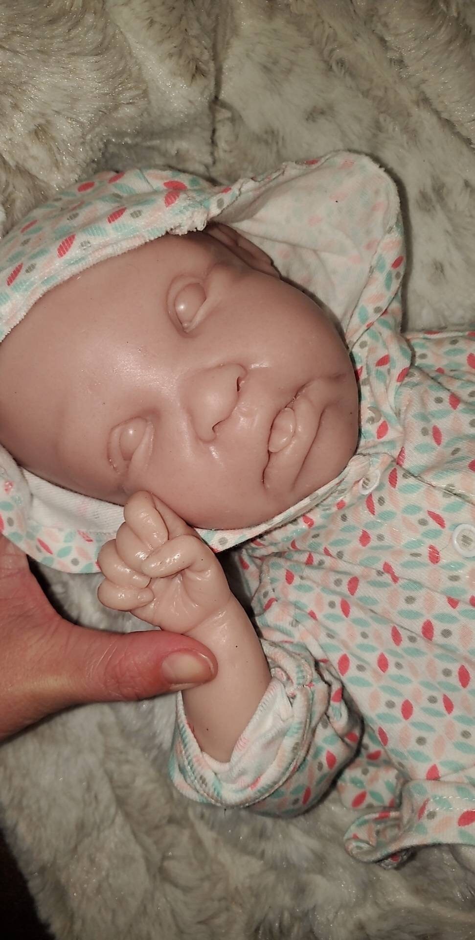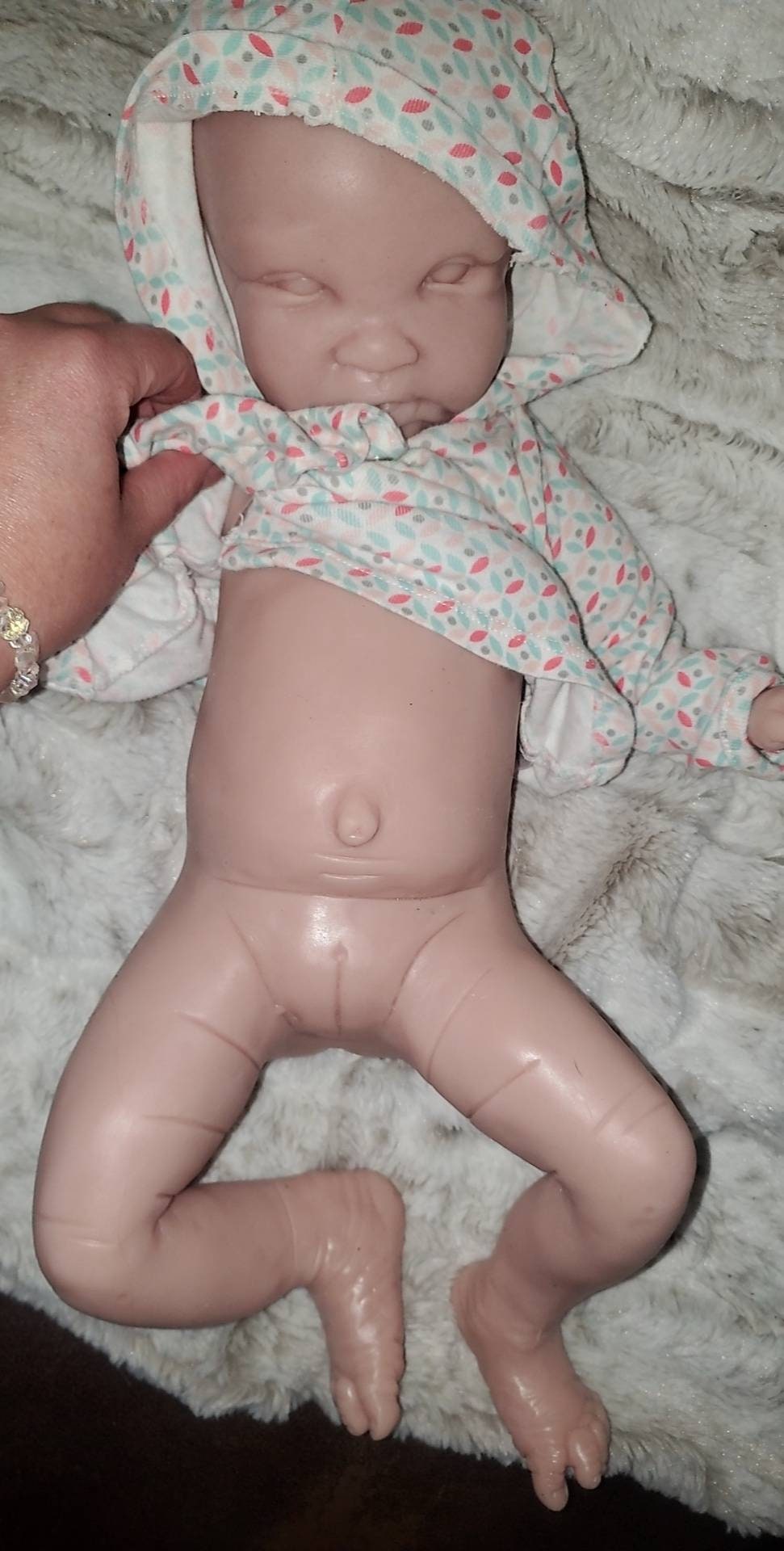 Beautiful baby girl poured in soft blend silicone. Head sculpted by Dianna Richards. Has open eyes, and tounge. body sculpted by Lynn Biggs. Casted and poured by me valerios reborn nursery. Can be full body silicone baby or head only for cuddle body. No returns