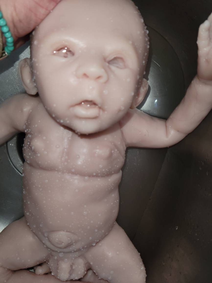 I attach head once out the mold may have some slight flaws around neck, and seam but other than that is very smooth skin hand made custom to each order. To view my painting work on fb valerios reborn nursery