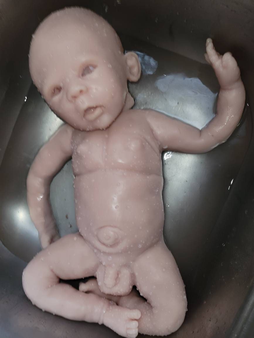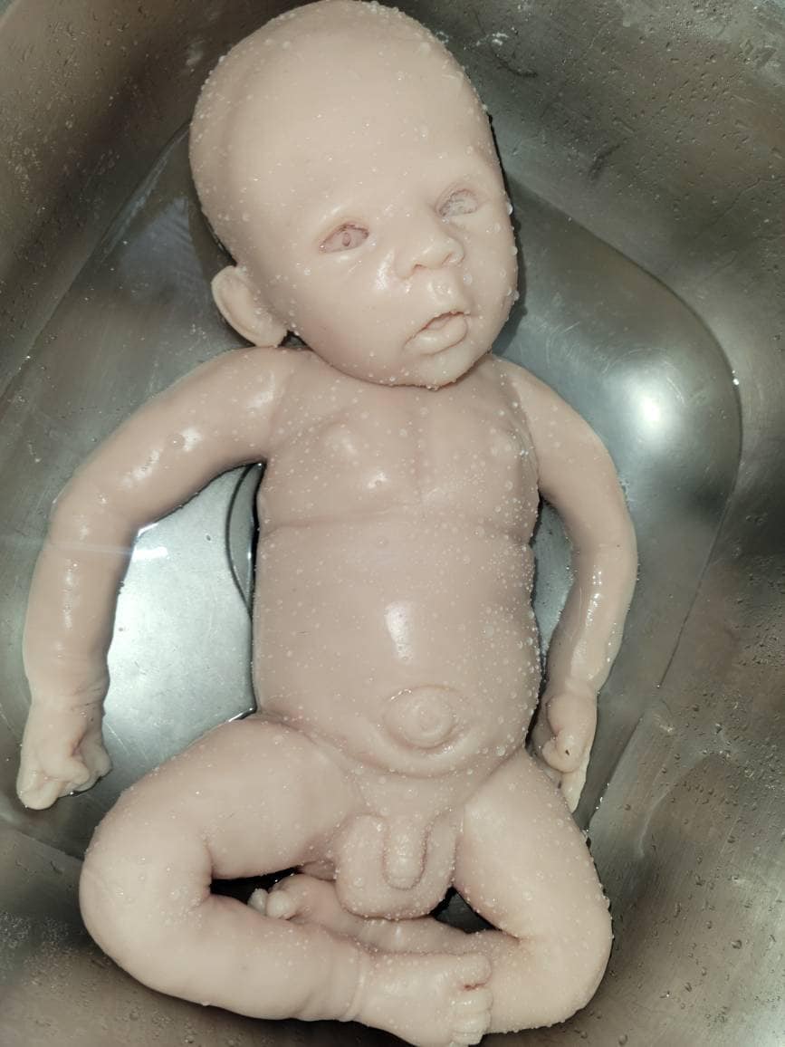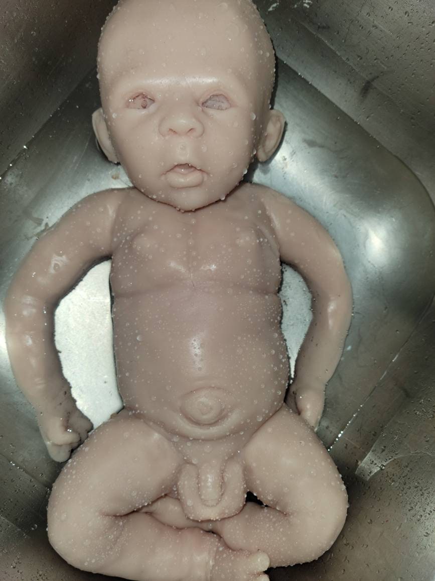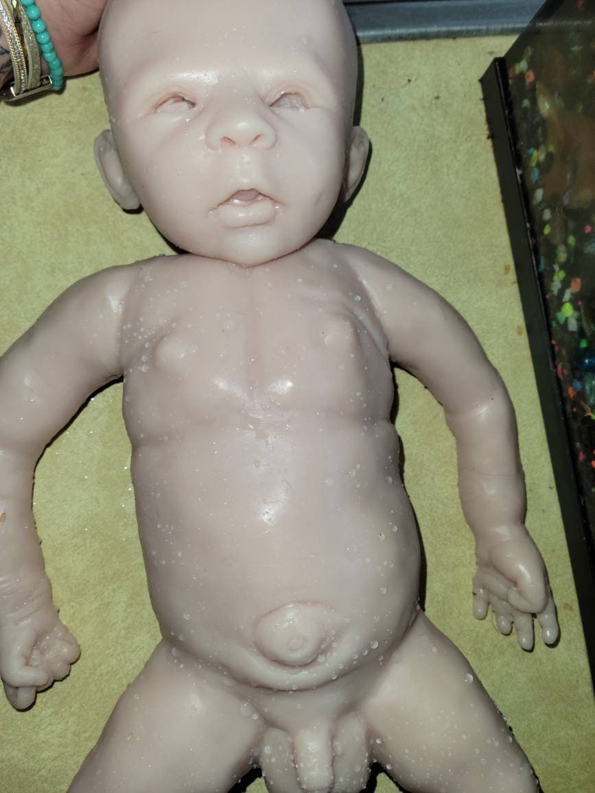 23" poured in eco flex blend silicone. Open Eyes, can add drink n wet for free of charge make sure to add to description you want it added when purchasing.  Marshmallow blend is $100 extra. Can be blank or painted.