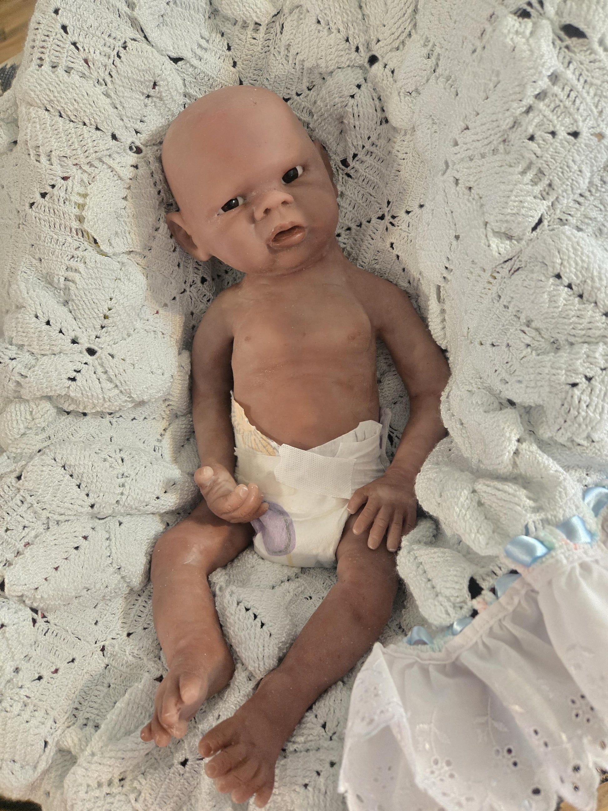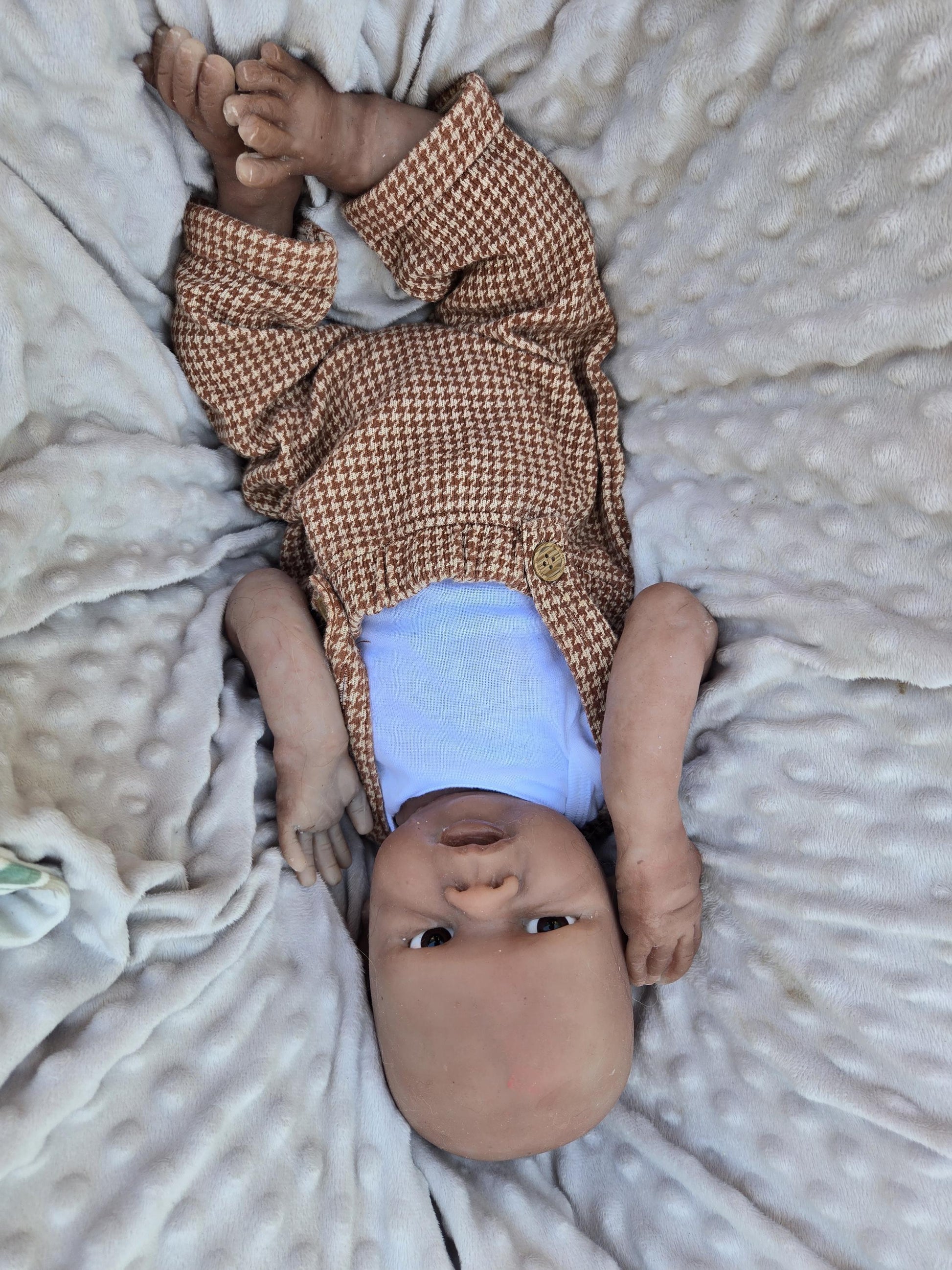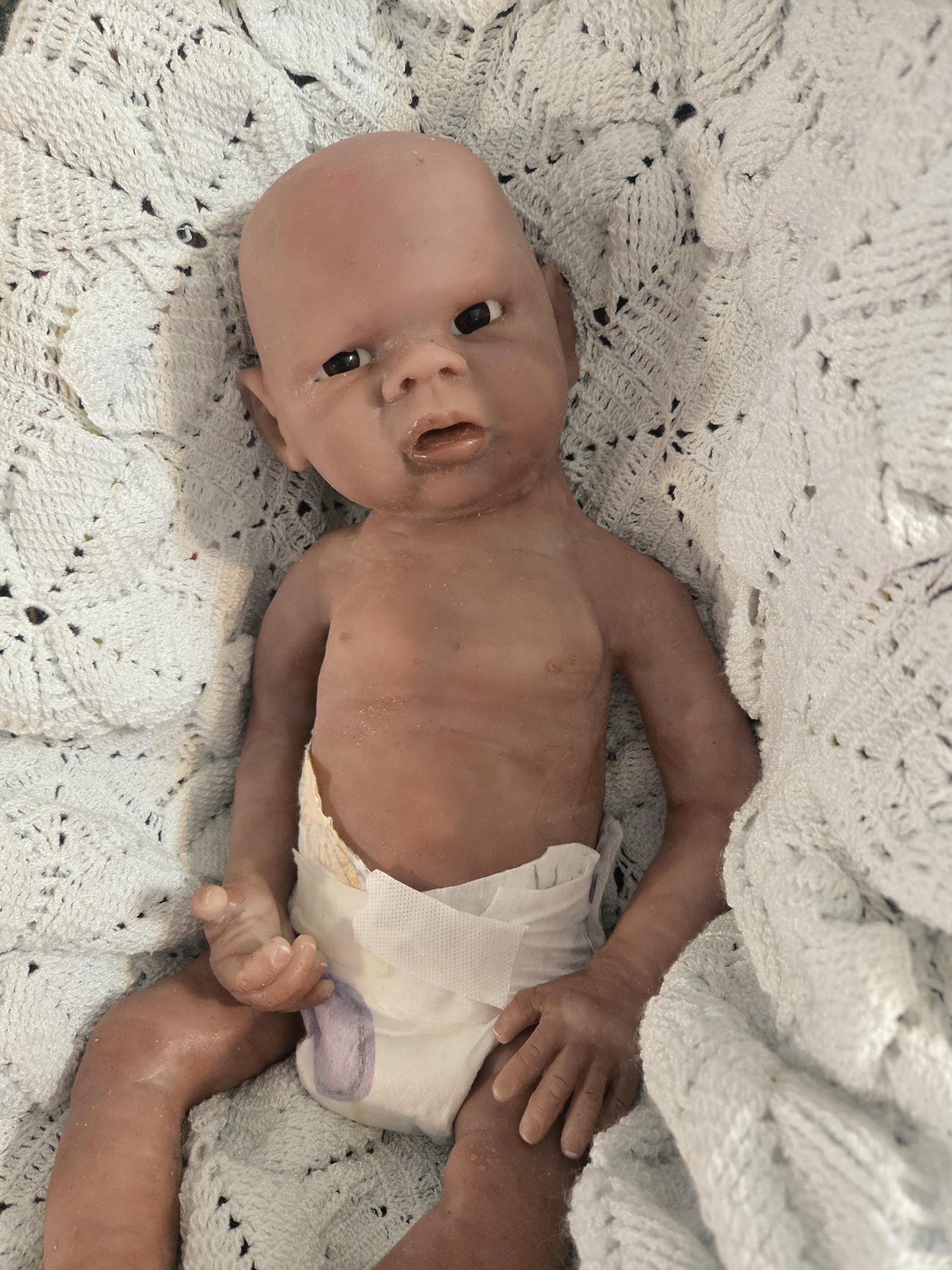 Say hello to sweet baby Levi! This full-body silicone cutie is a custom order made just for you. Sculpted by the talented Pamela Erf, Levi measures 21 inches long—perfectly sized like a real newborn—and is poured in an ultra-soft, squishy silicone blend that makes him irresistibly cuddly and floppy.