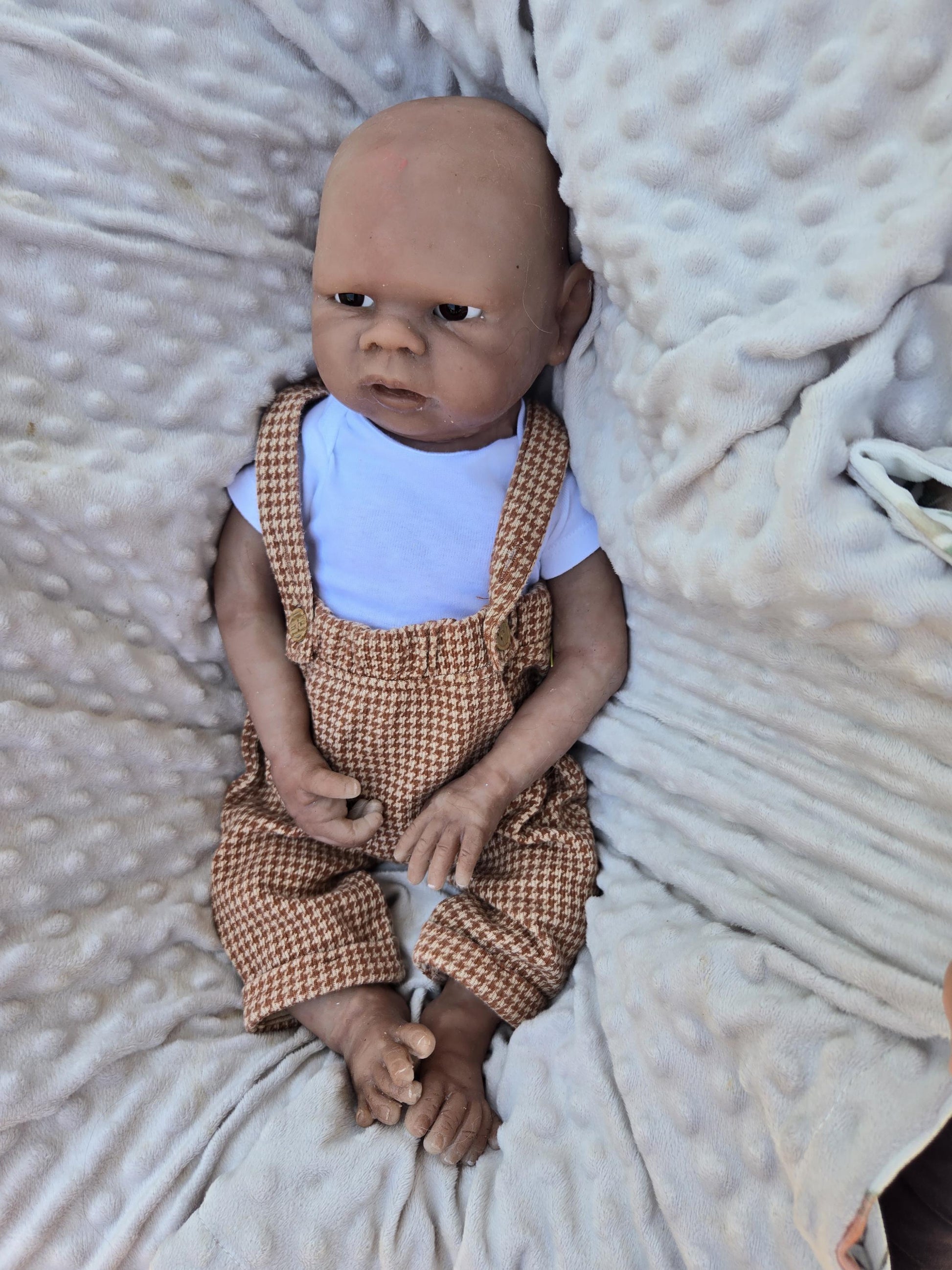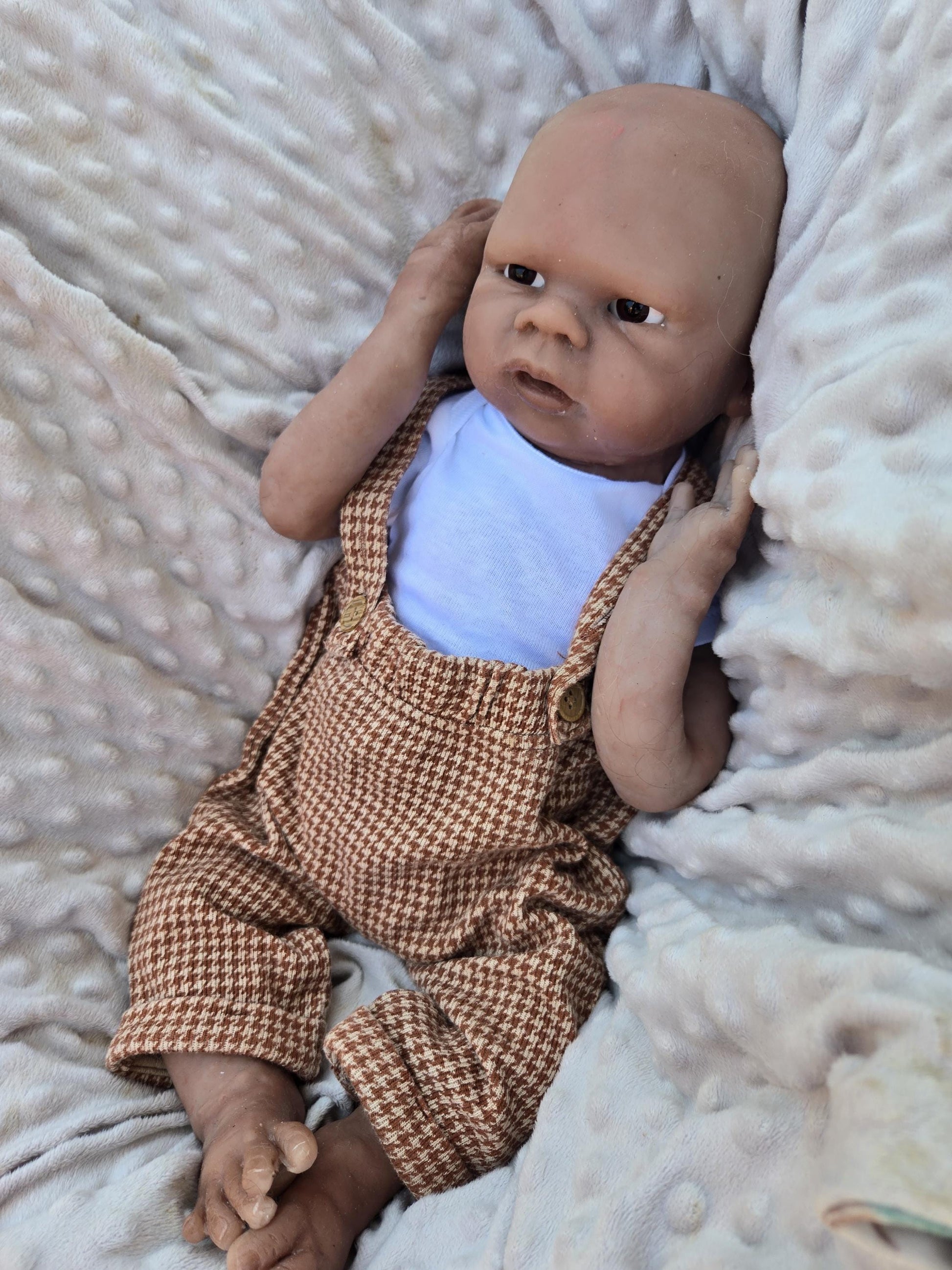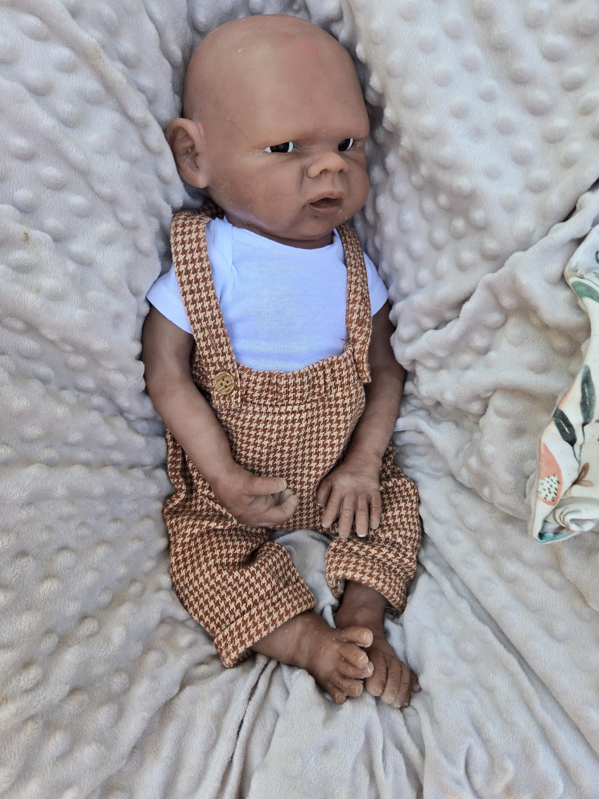 Say hello to sweet baby Levi! This full-body silicone cutie is a custom order made just for you. Sculpted by the talented Pamela Erf, Levi measures 21 inches long—perfectly sized like a real newborn—and is poured in an ultra-soft, squishy silicone blend that makes him irresistibly cuddly and floppy.