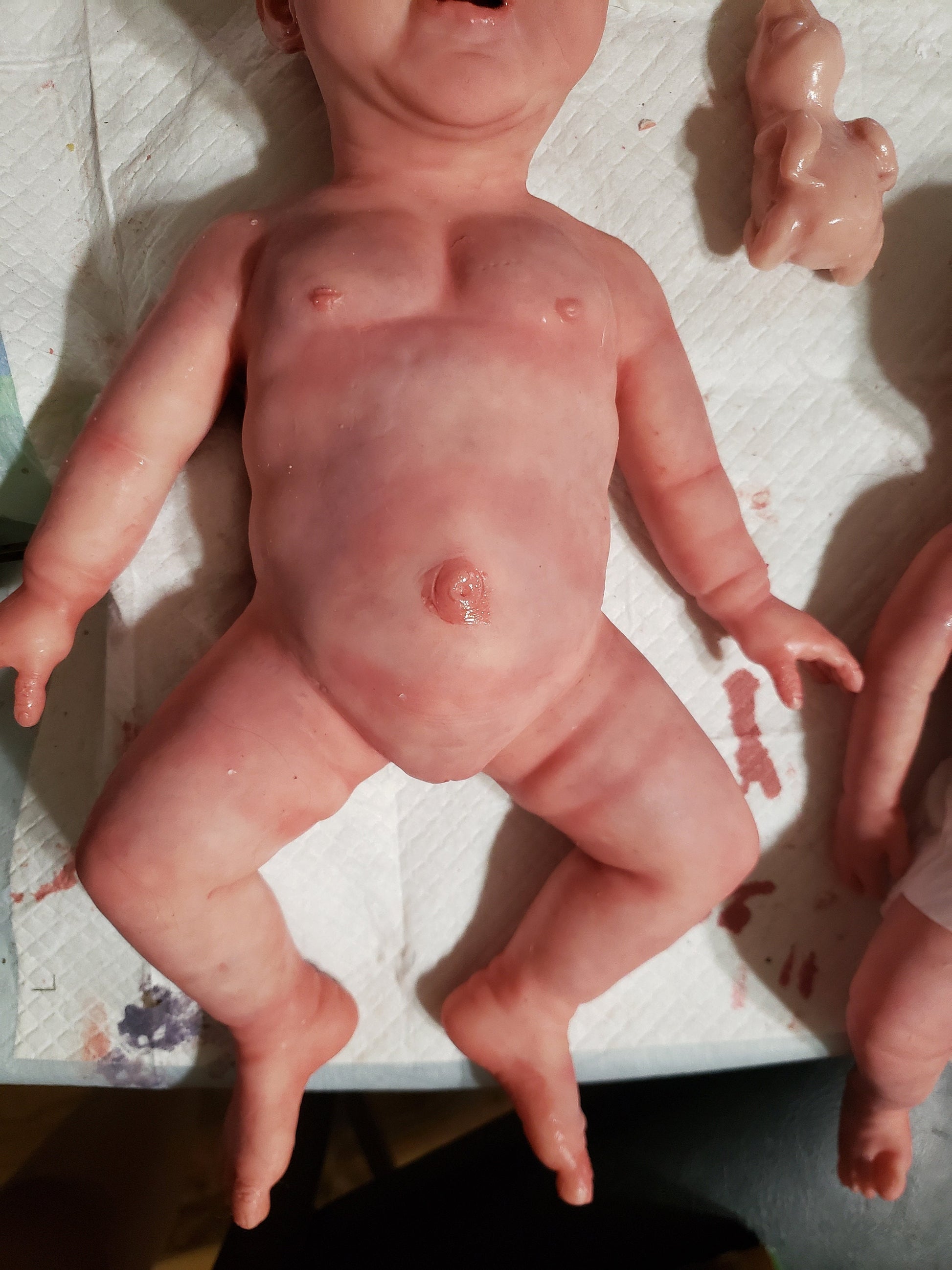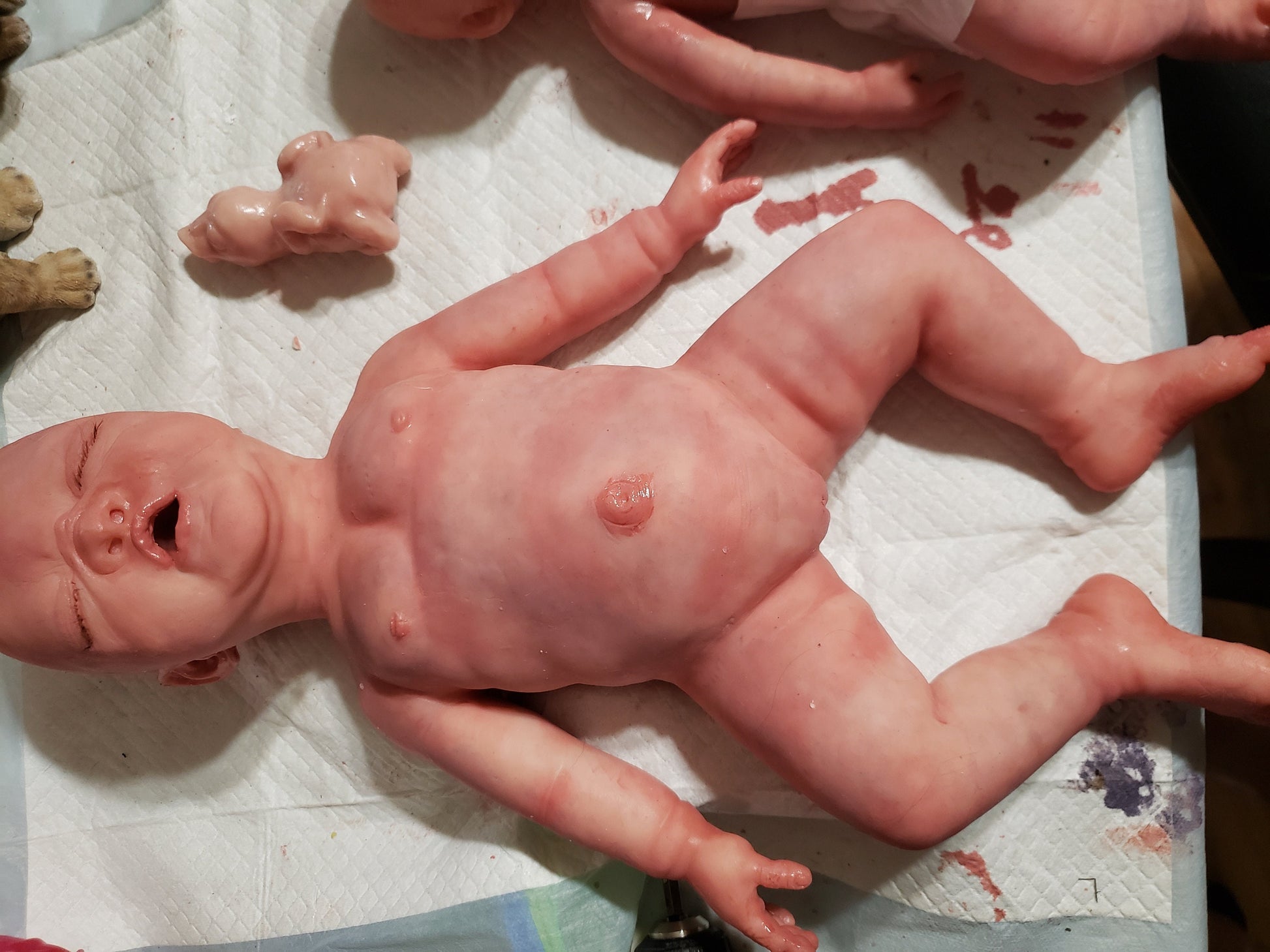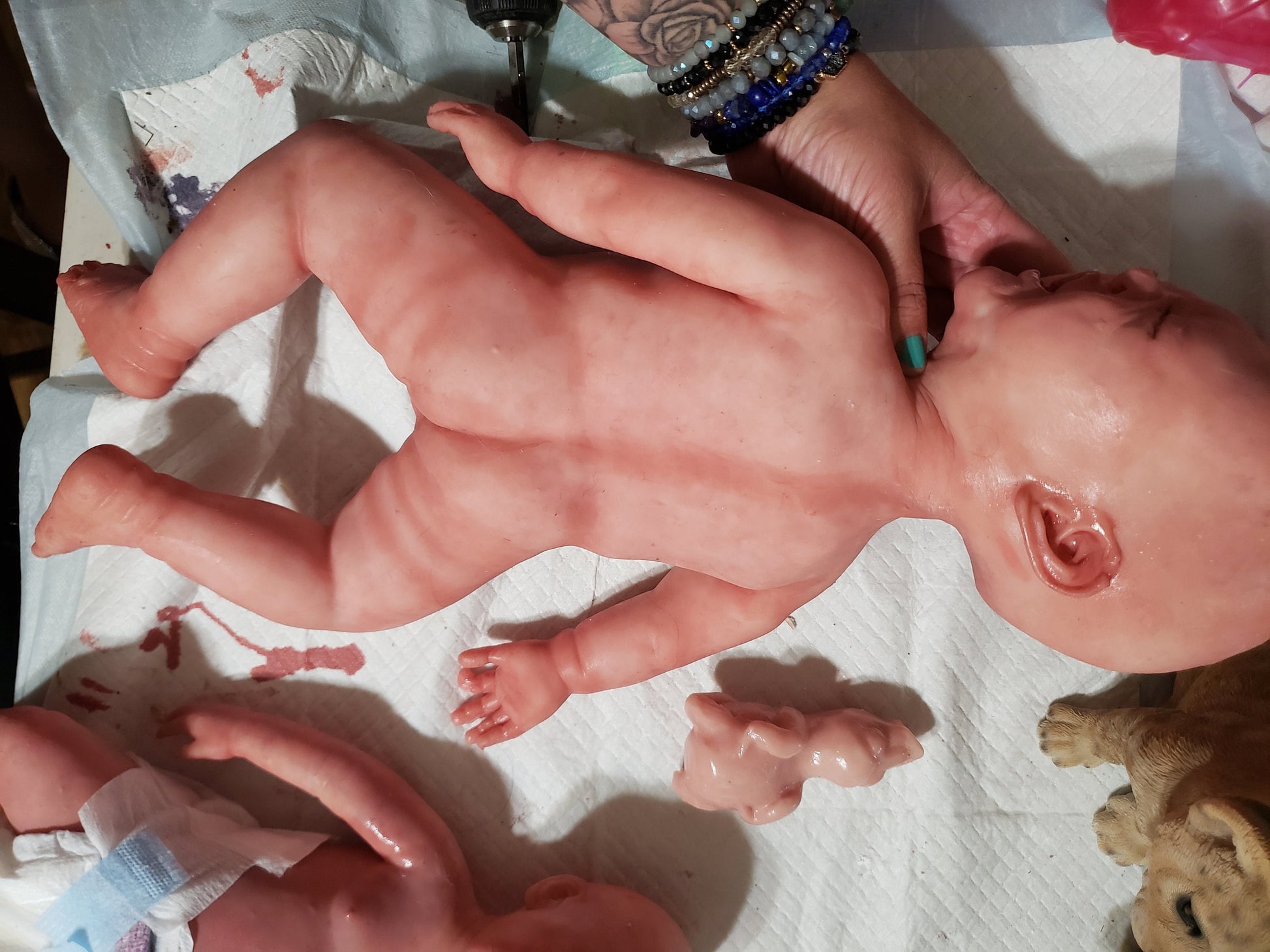 Full body silicone baby girl or can be boy it is newborn size. Custom order no returns. I pour in eco flex 20 silicone unless requested otherwise. Marshmellow blend is $150 extra