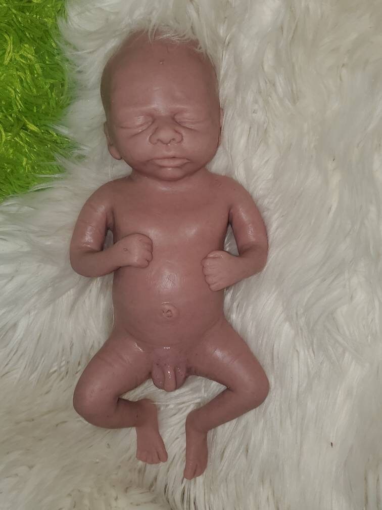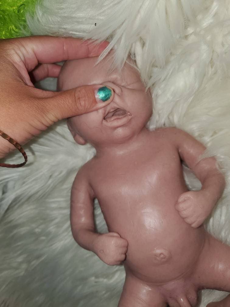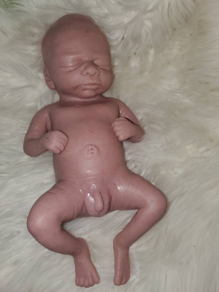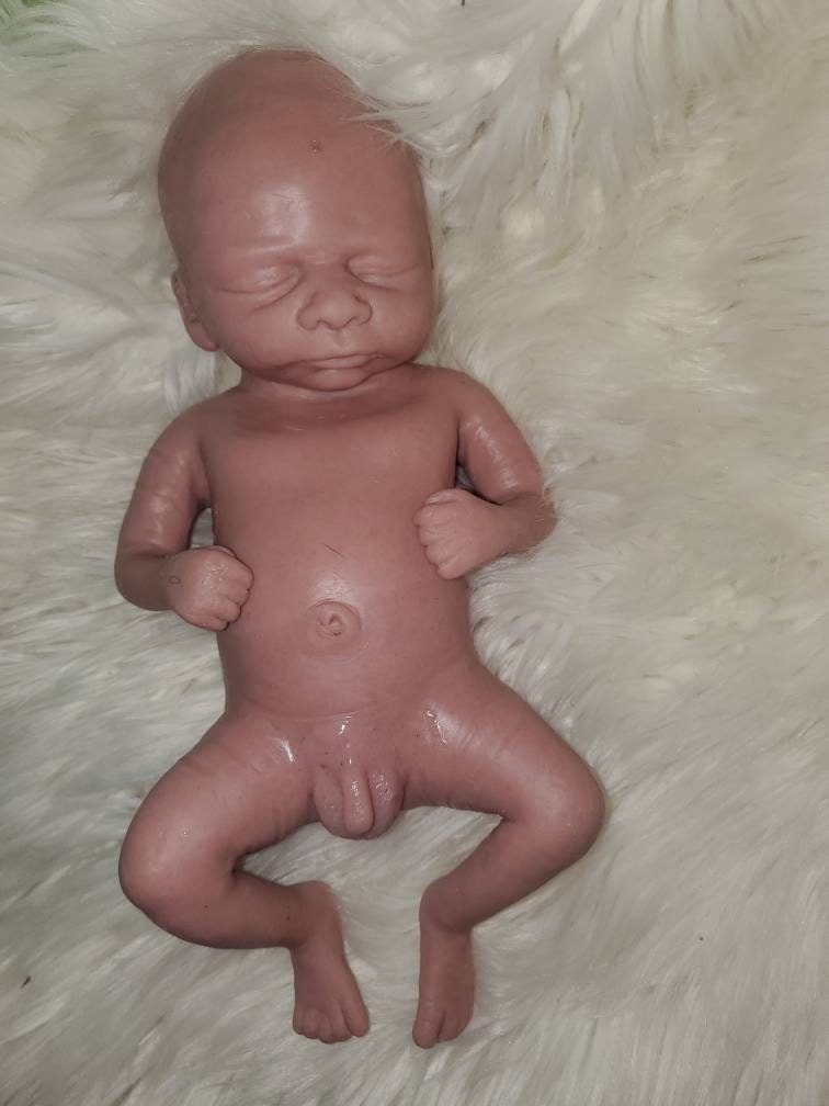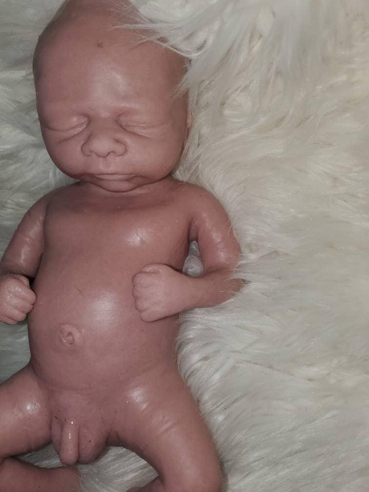 Poured in soft blend eco flex silicone Very soft. Flexible and squishy. Sleeping beauty can be a Boy or girl. Can install drink n wet for extra.