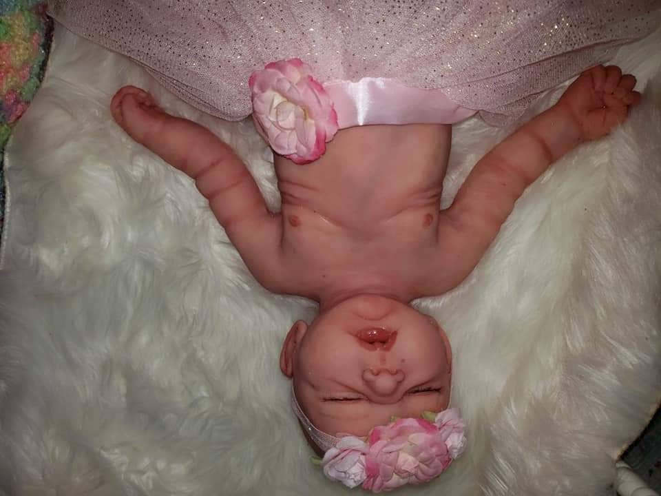 Poured in one peice (seam does not show but may show slight spout but not much) open mouth for bottle or pacifier. can pour in Caucasian, darker birascial, or AA!) her skin is very smooth, but she may have some small imperfections, noun of my babies are ever ""perfect"" there is no such thing as they are hand made from start to finish! She has some random lumps on body not terrible thiugh. Rooted lashes are no extra charge, and can peirce ears. She can be a girl or Boy !!! Her head was sculpted by caryssa, and her body is a remade version of cassie mae by carryssa but remade by Michelle Brier mandly. Molded, casted and poured by myself valerio's reborn nursery!
