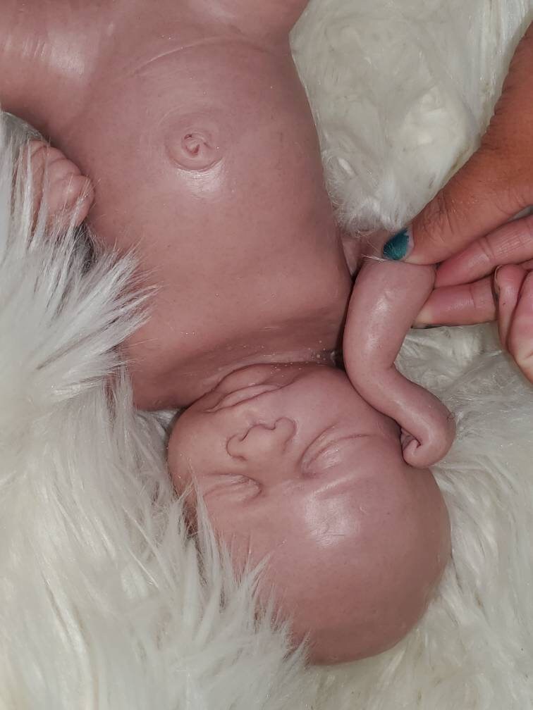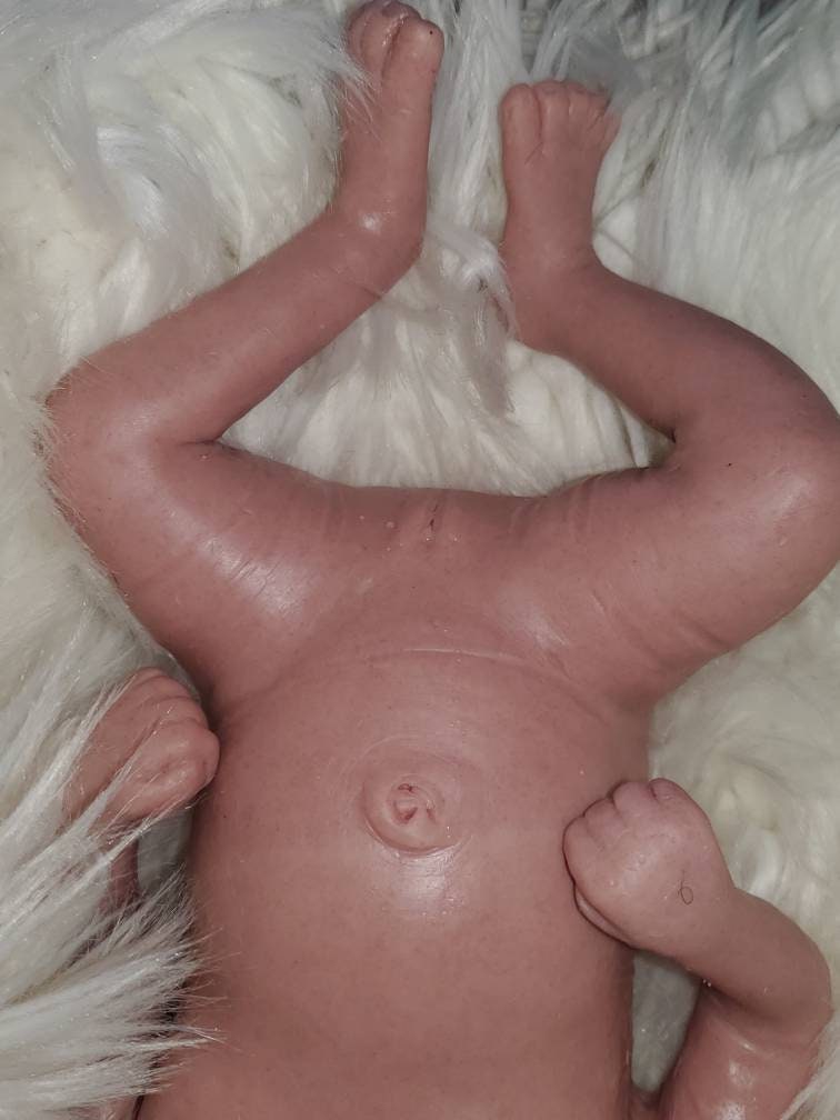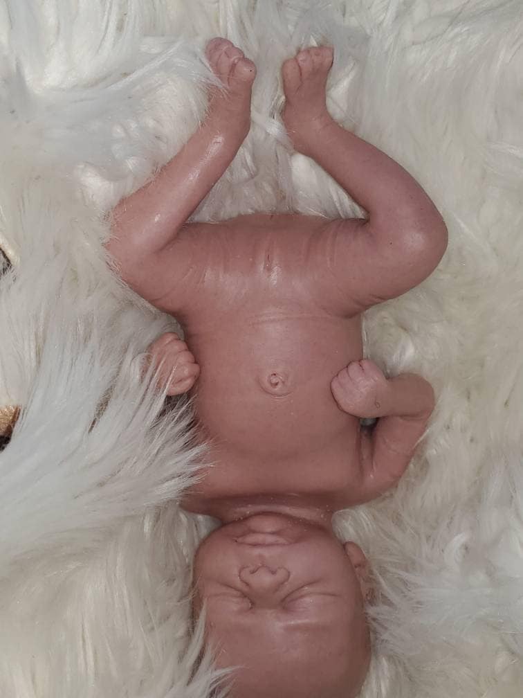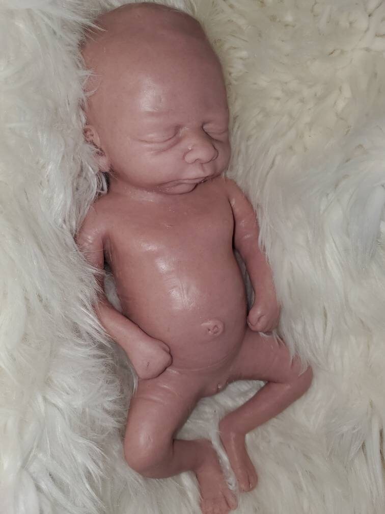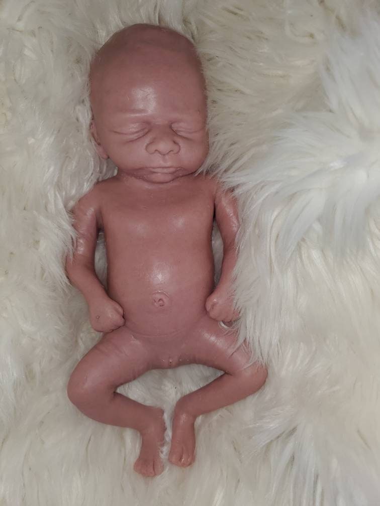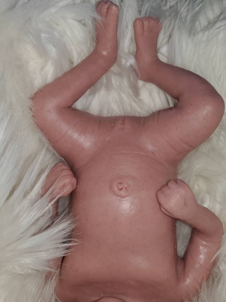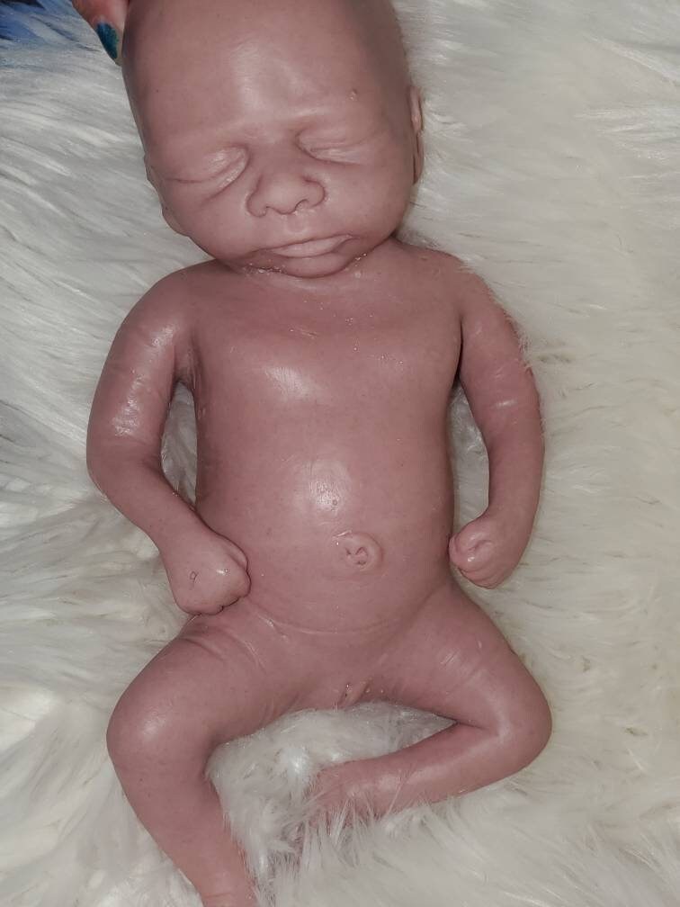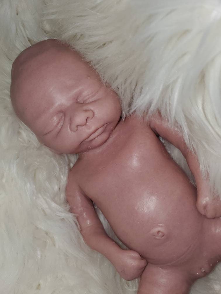 Poured in soft blend eco flex silicone Very soft. Flexible and squishy. Sleeping beauty can be a Boy or girl. Can install drink n wet for extra.