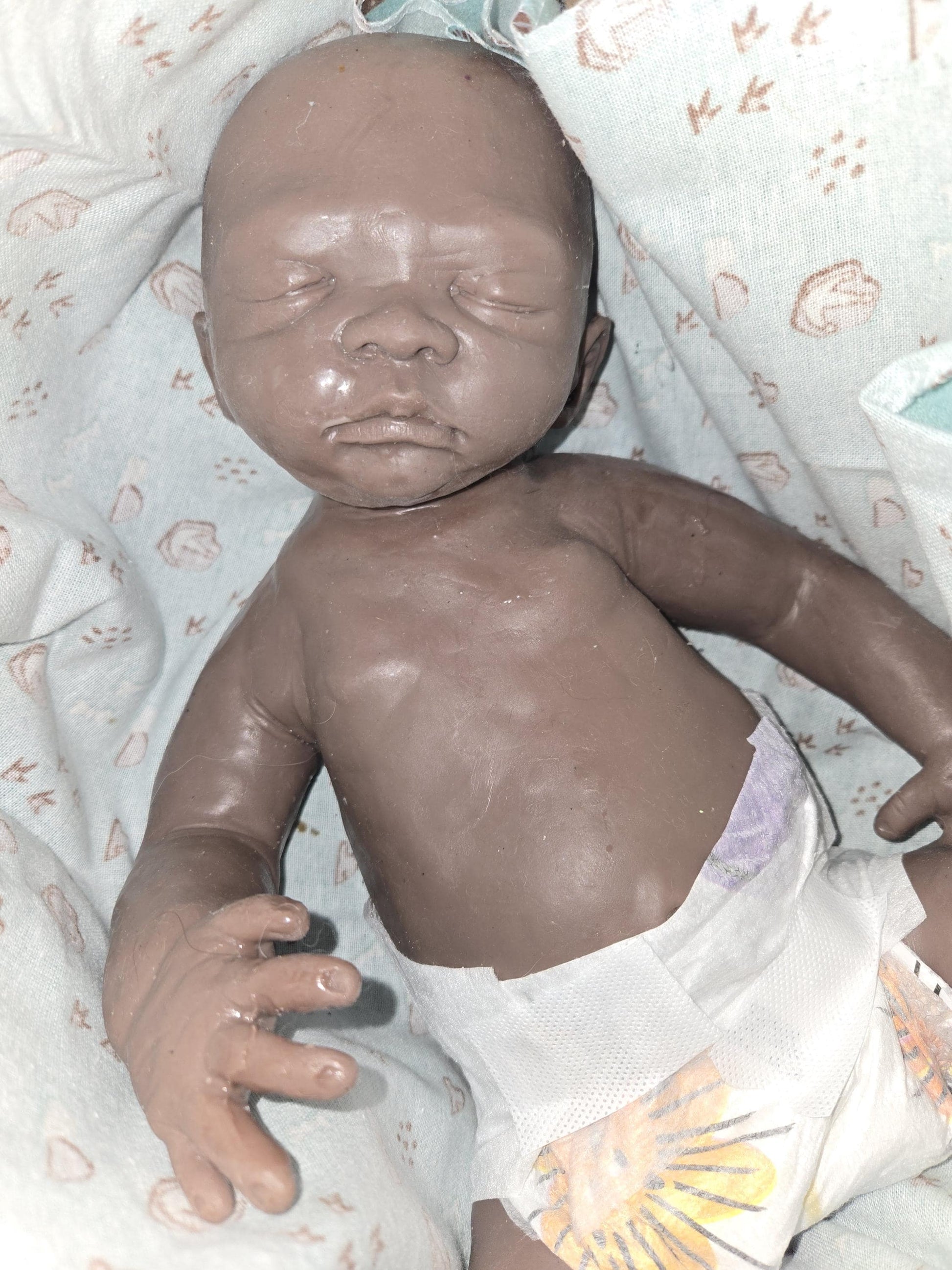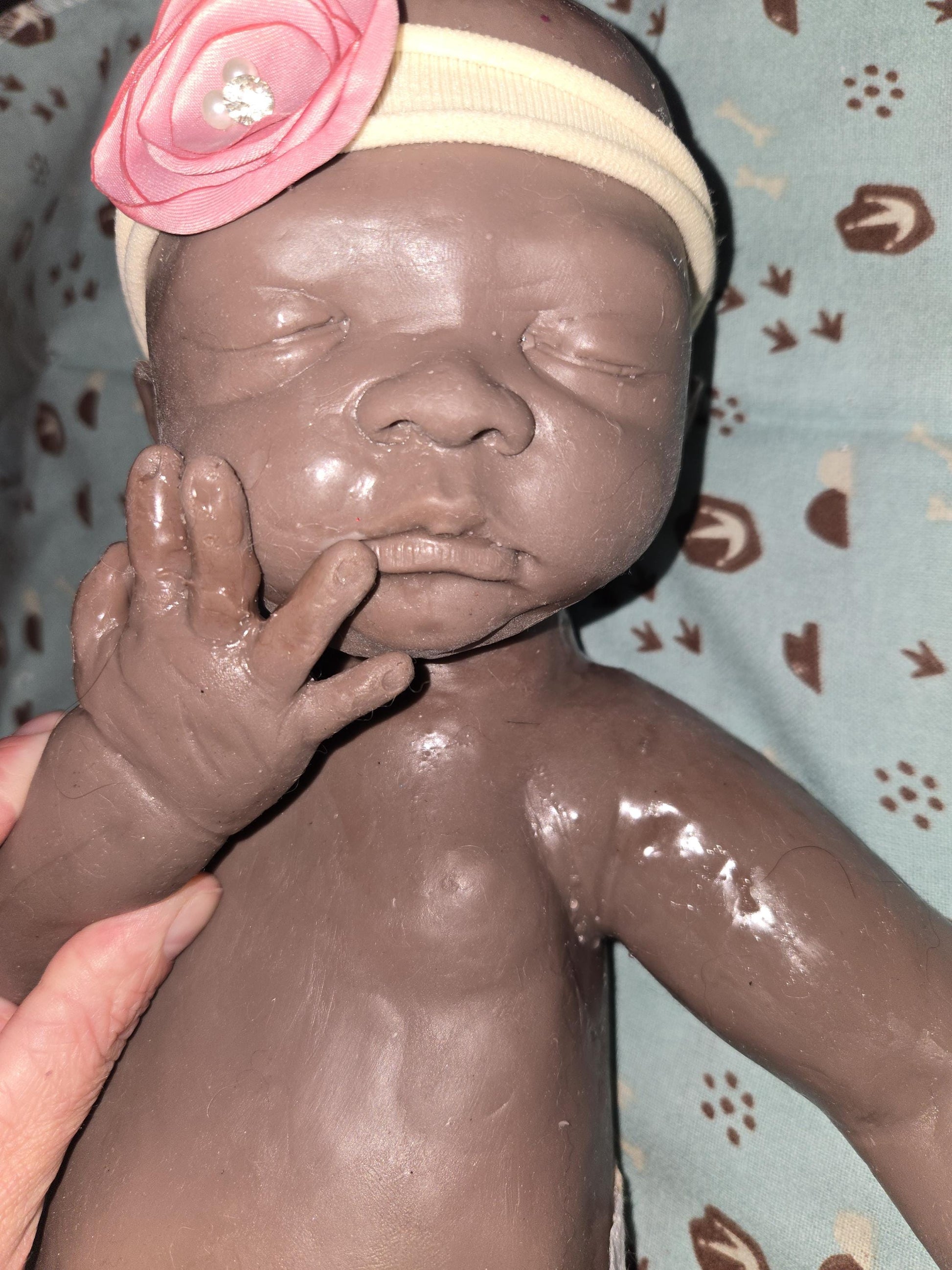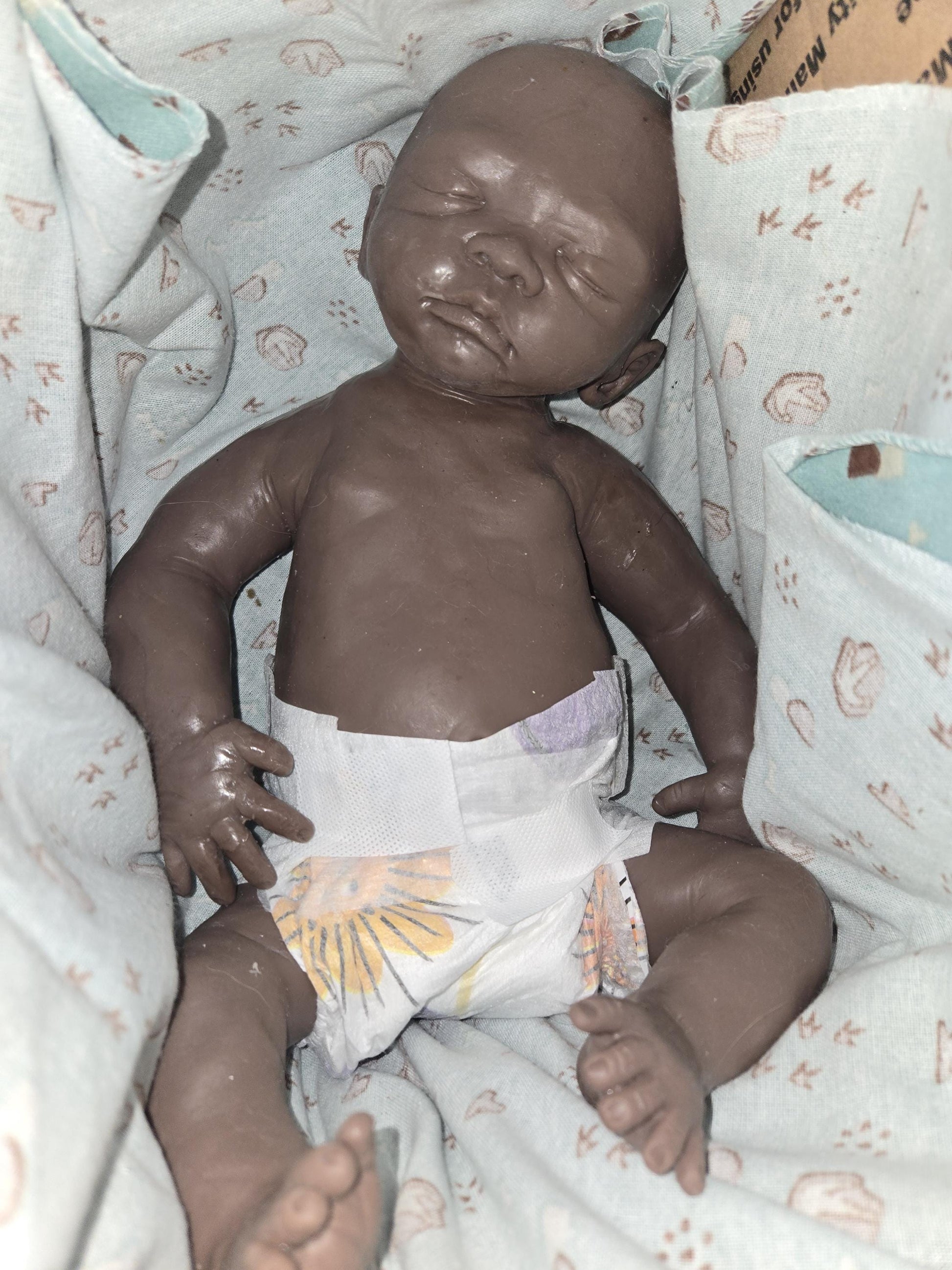 seamless baby very smooth body. I pour all my babies in eco flex 20 silicone that is a very soft flexible silicone but I can also offer marshmellow blend for extra (view seperate listing) Gracie is a 17 inch newborn. can be a boy or girl. photo listed is african American but i can pour in any skin tone. blank kits and fully painted versions available