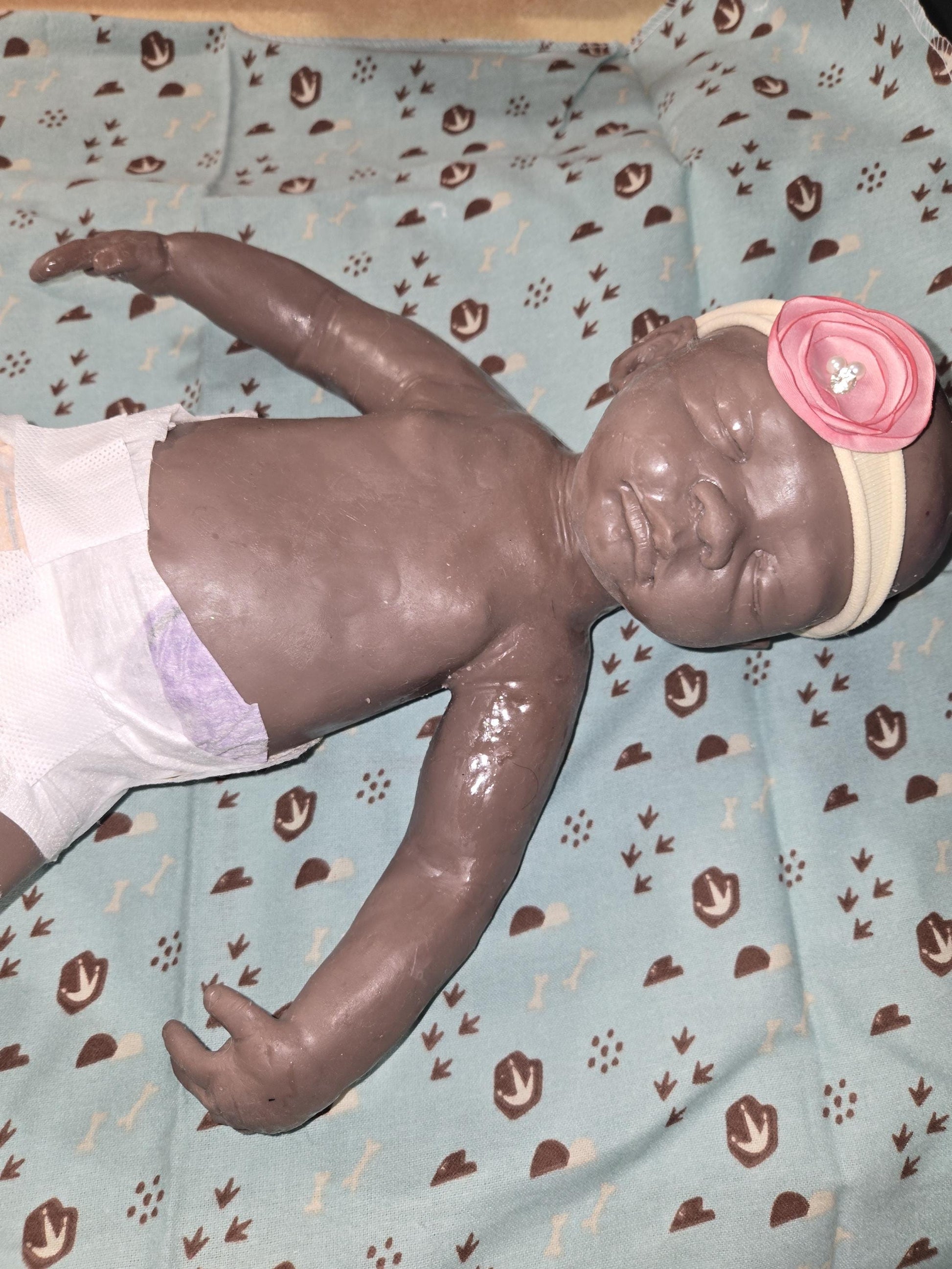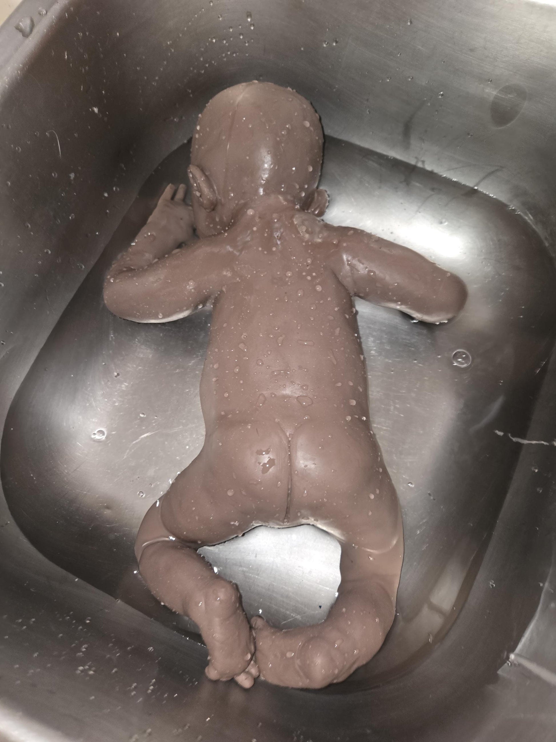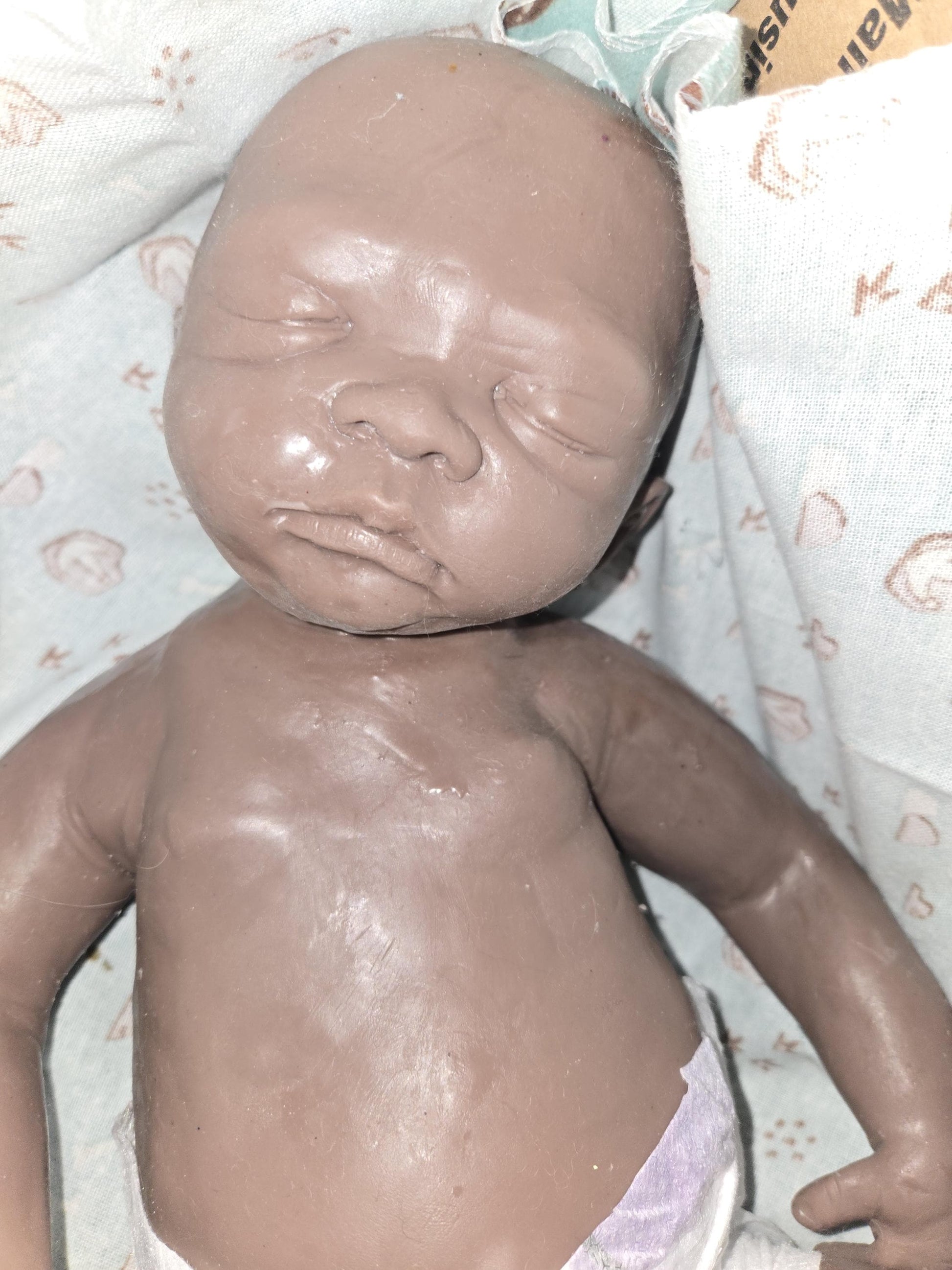 seamless baby very smooth body. I pour all my babies in eco flex 20 silicone that is a very soft flexible silicone but I can also offer marshmellow blend for extra (view seperate listing) Gracie is a 17 inch newborn. can be a boy or girl. photo listed is african American but i can pour in any skin tone. blank kits and fully painted versions available