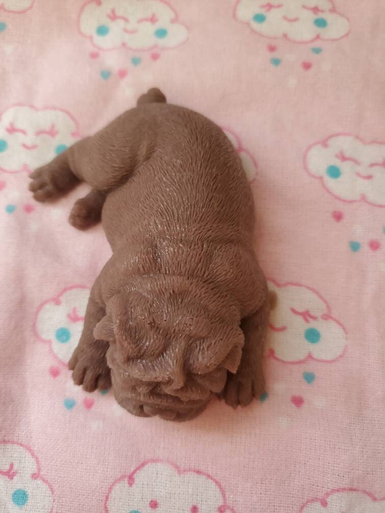 This sweet little silicone puppy is made from EcoFlex 10 soft blend silicone, giving it an ultra-soft, squishy, and flexible feel - perfect for cuddling, collecting, or memorial purposes. The puppy features a flat bottom so it sits nicely for display.
