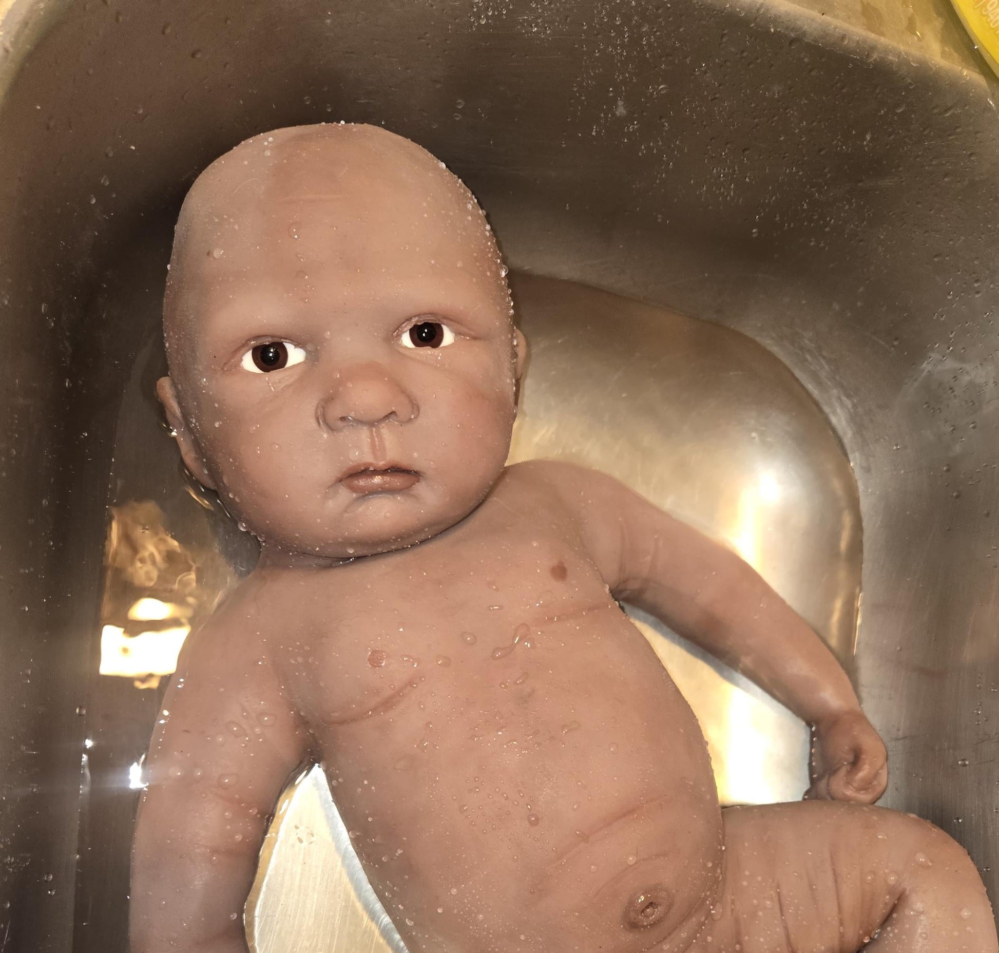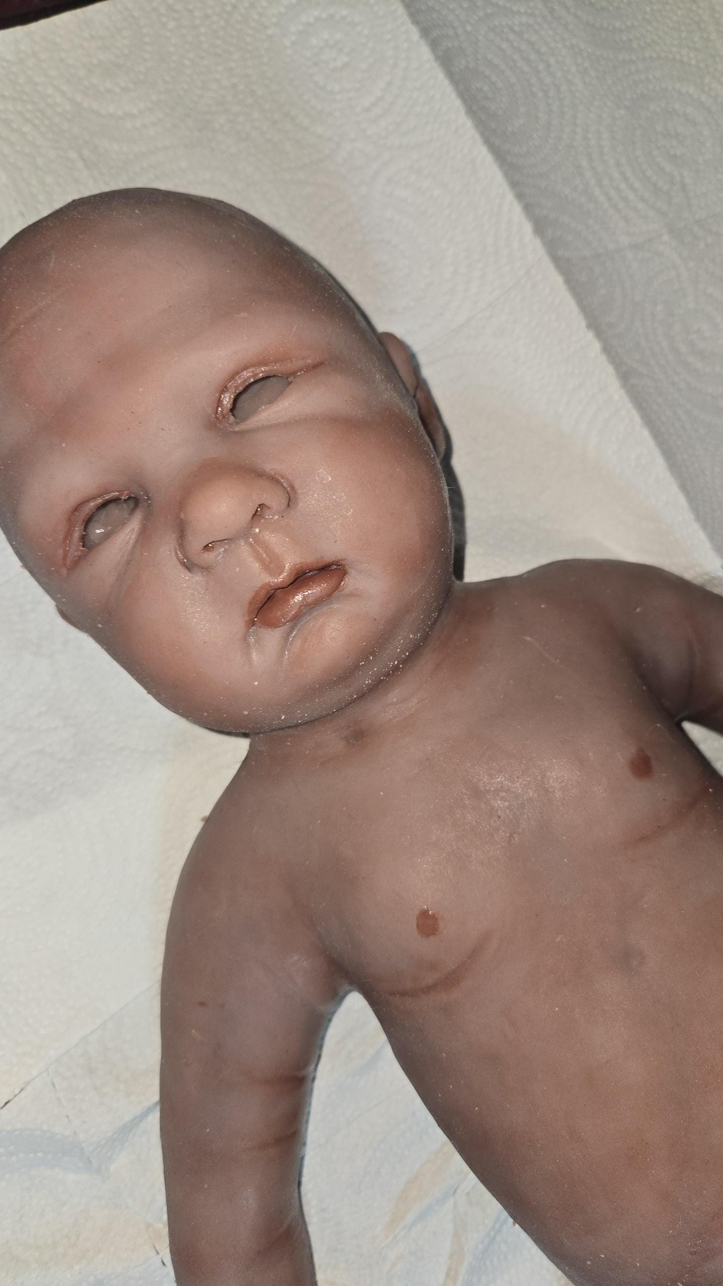 This sweet baby measures 24 inches, the size of a 6-month-old infant. She will be expertly poured in soft, flexible EcoFlex 10/20 platinum cure silicone for an ultra-realistic feel. She features open eyes and an open mouth, perfect for added realism and gentle posing. may have slight imperfections as she is hand made. please view separate listing's if ypu want add ons (pierced ears, marshmellow blend, rooted hair, drink n wet etc) no returns or cancelations this is a custom order