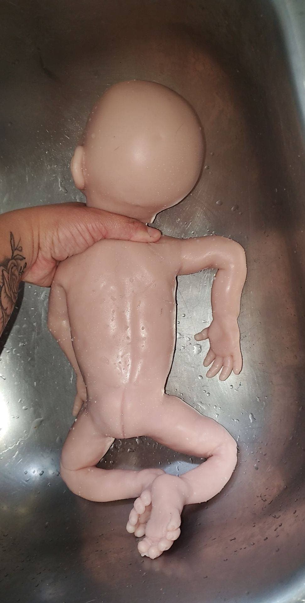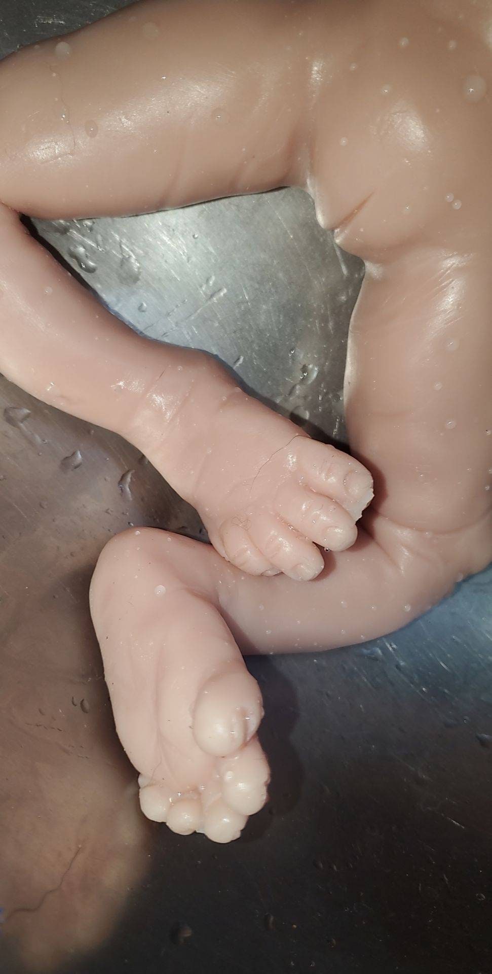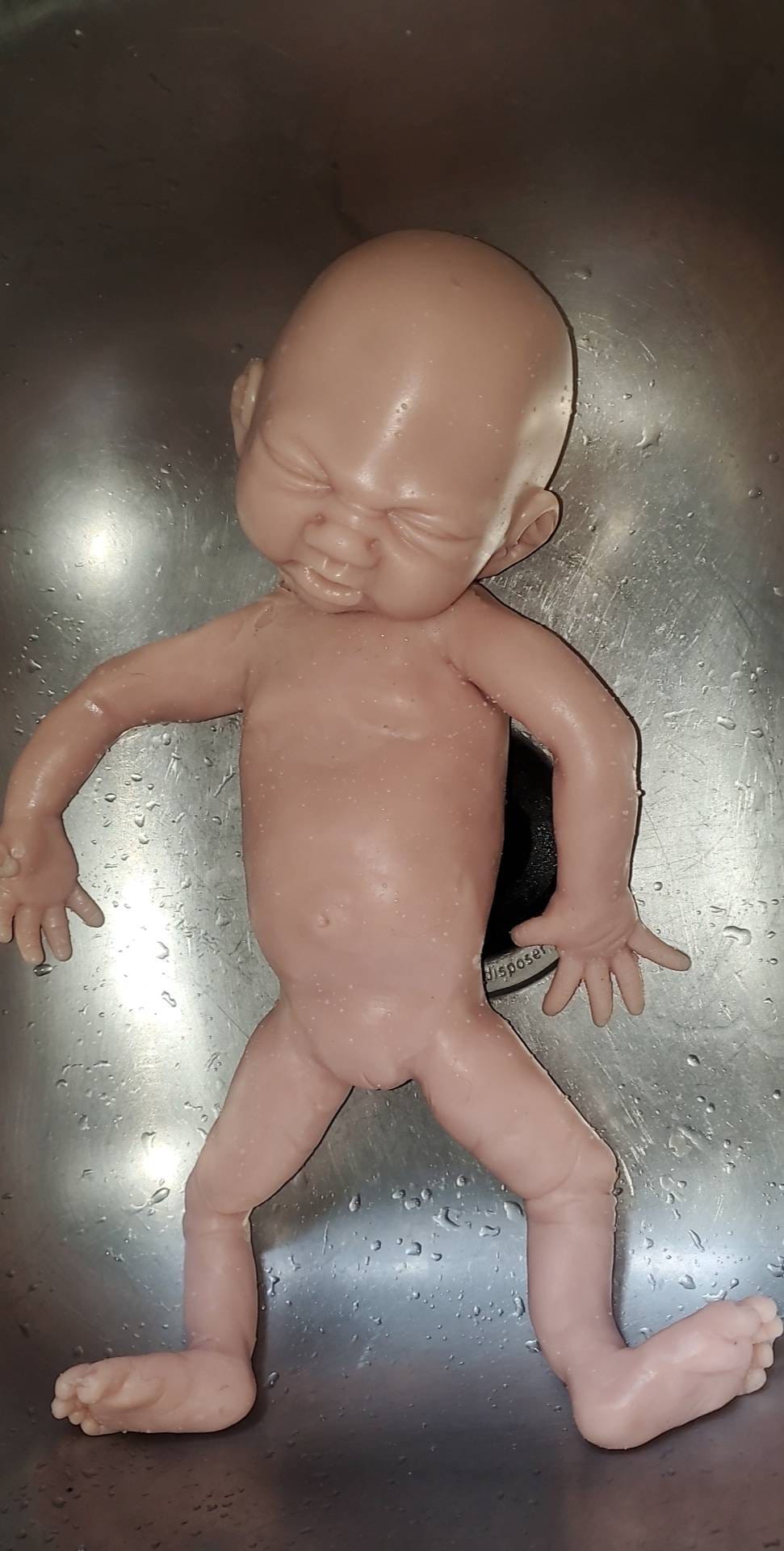 Full Body Silicone Baby poured in soft squishy eco flex platinum cure silicone. This is a seamless baby with head attached separately. For lowered price on baby you can buy eith the head not attached and do it yourself
