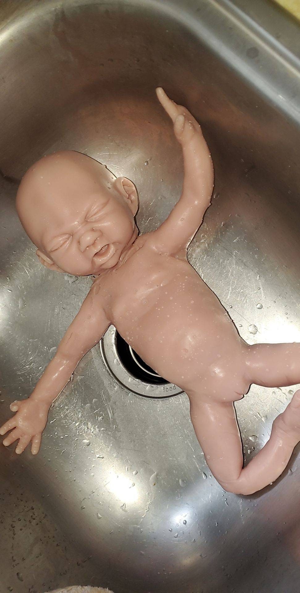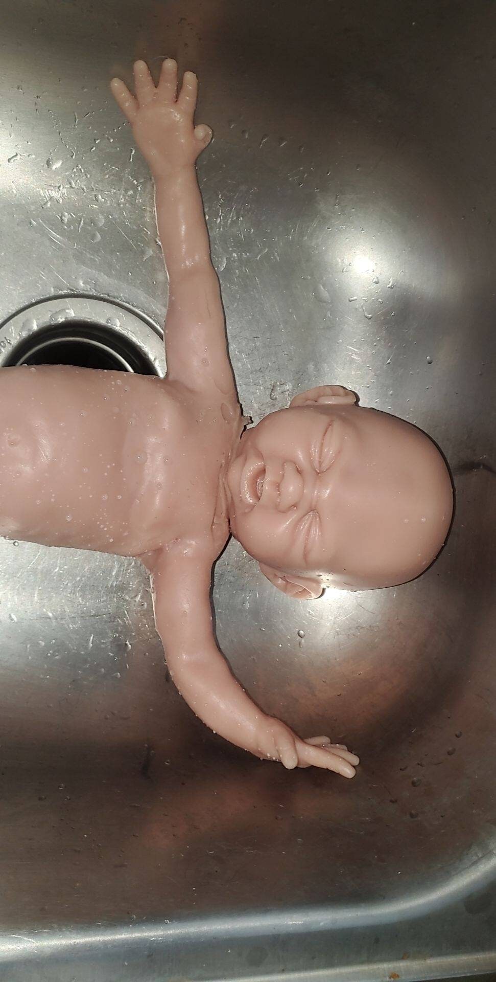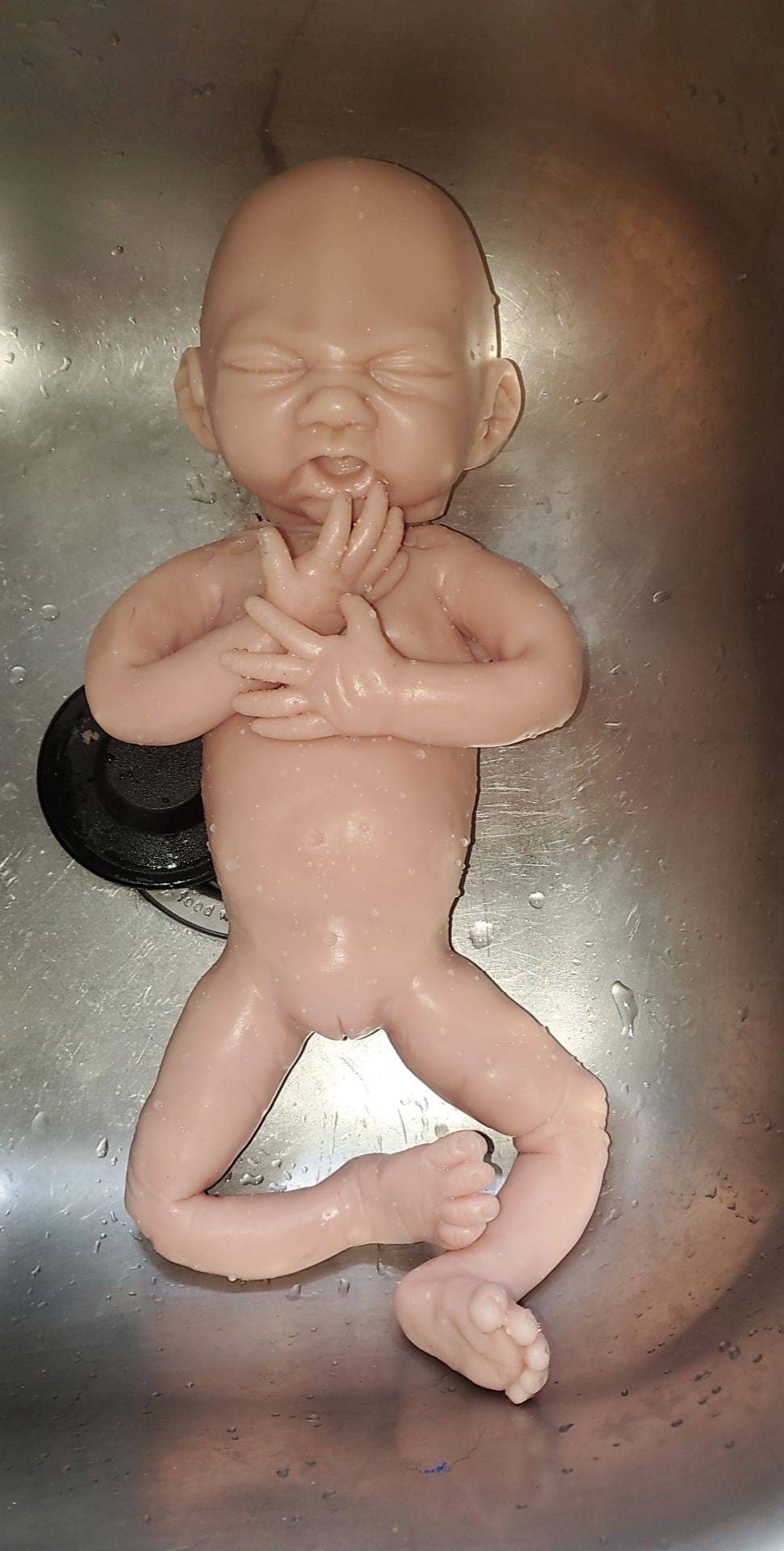 Full Body Silicone Baby poured in soft squishy eco flex platinum cure silicone. This is a seamless baby with head attached separately. For lowered price on baby you can buy eith the head not attached and do it yourself