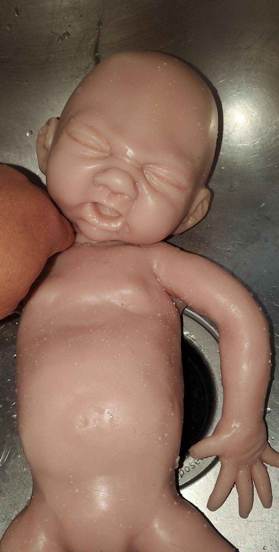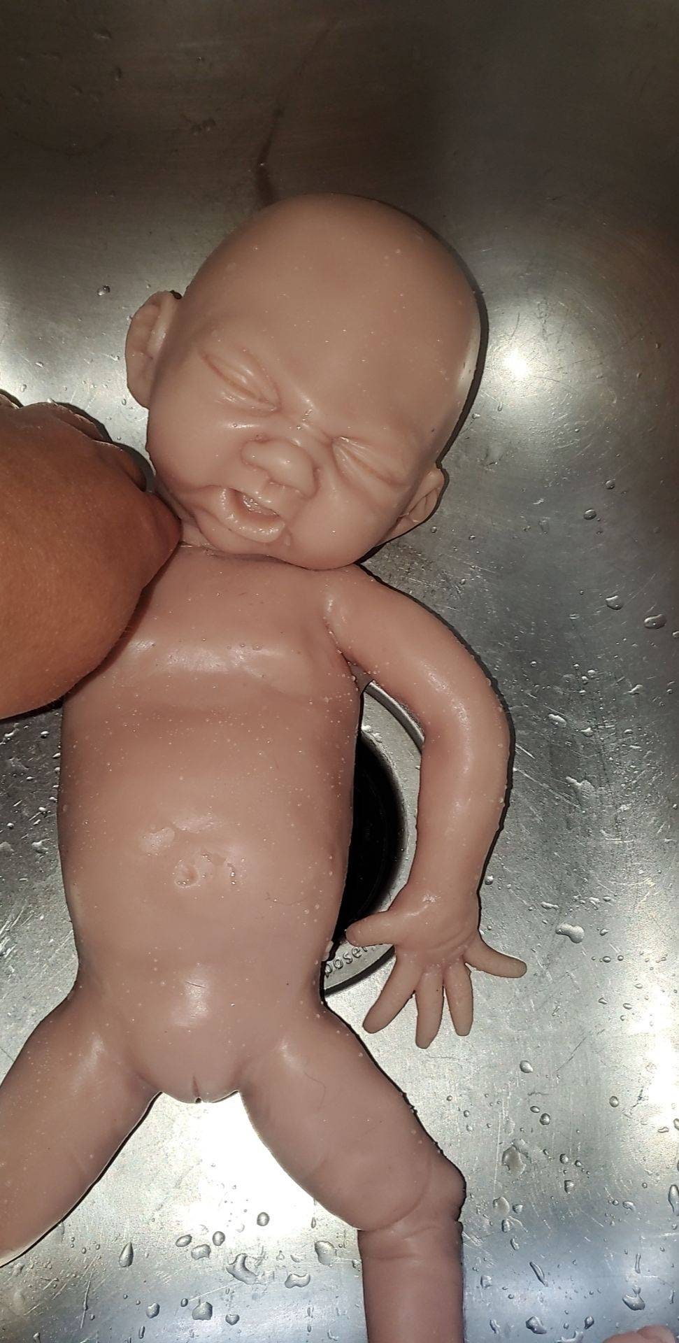 Full Body Silicone Baby poured in soft squishy eco flex platinum cure silicone. This is a seamless baby with head attached separately. For lowered price on baby you can buy eith the head not attached and do it yourself