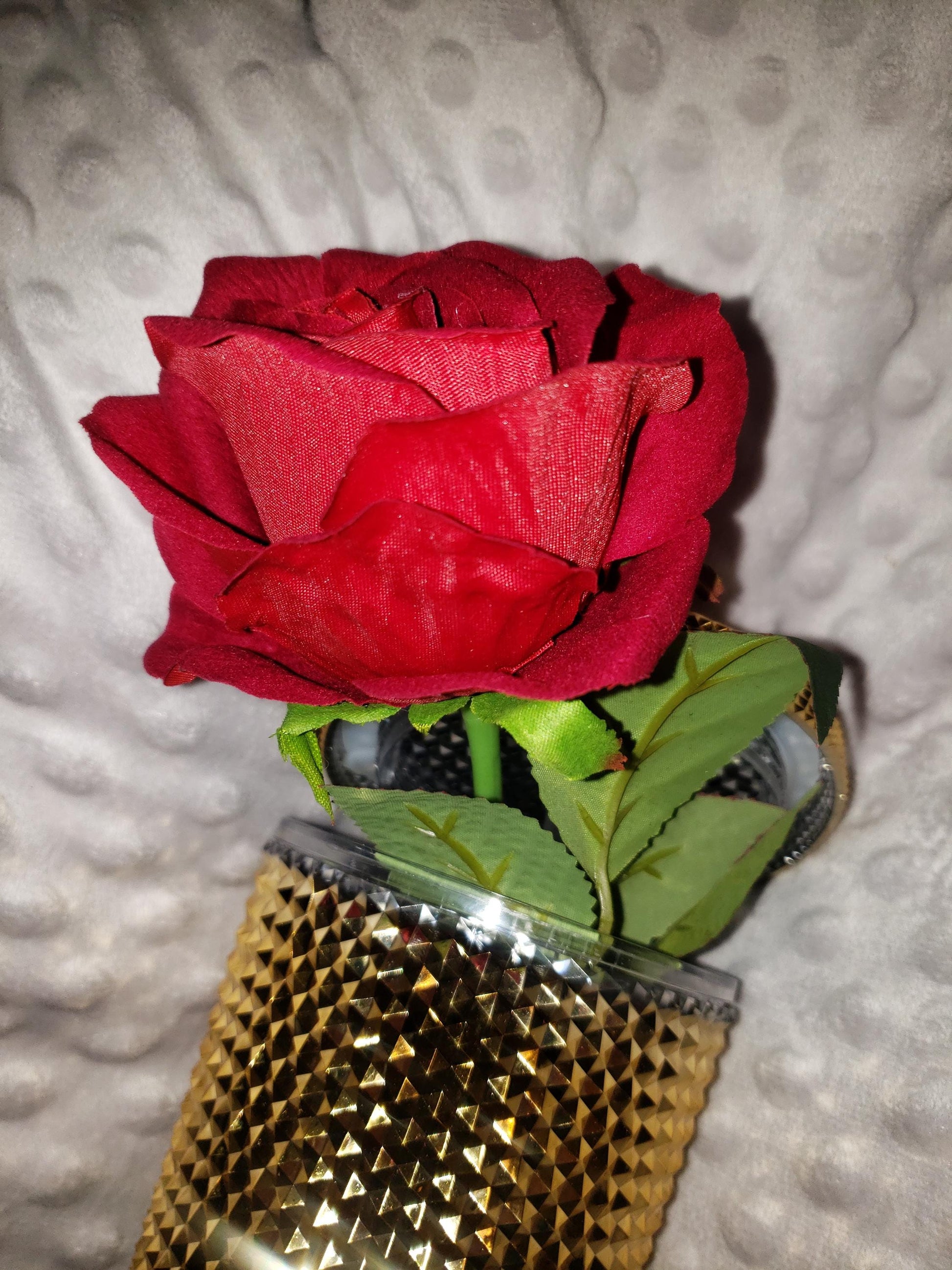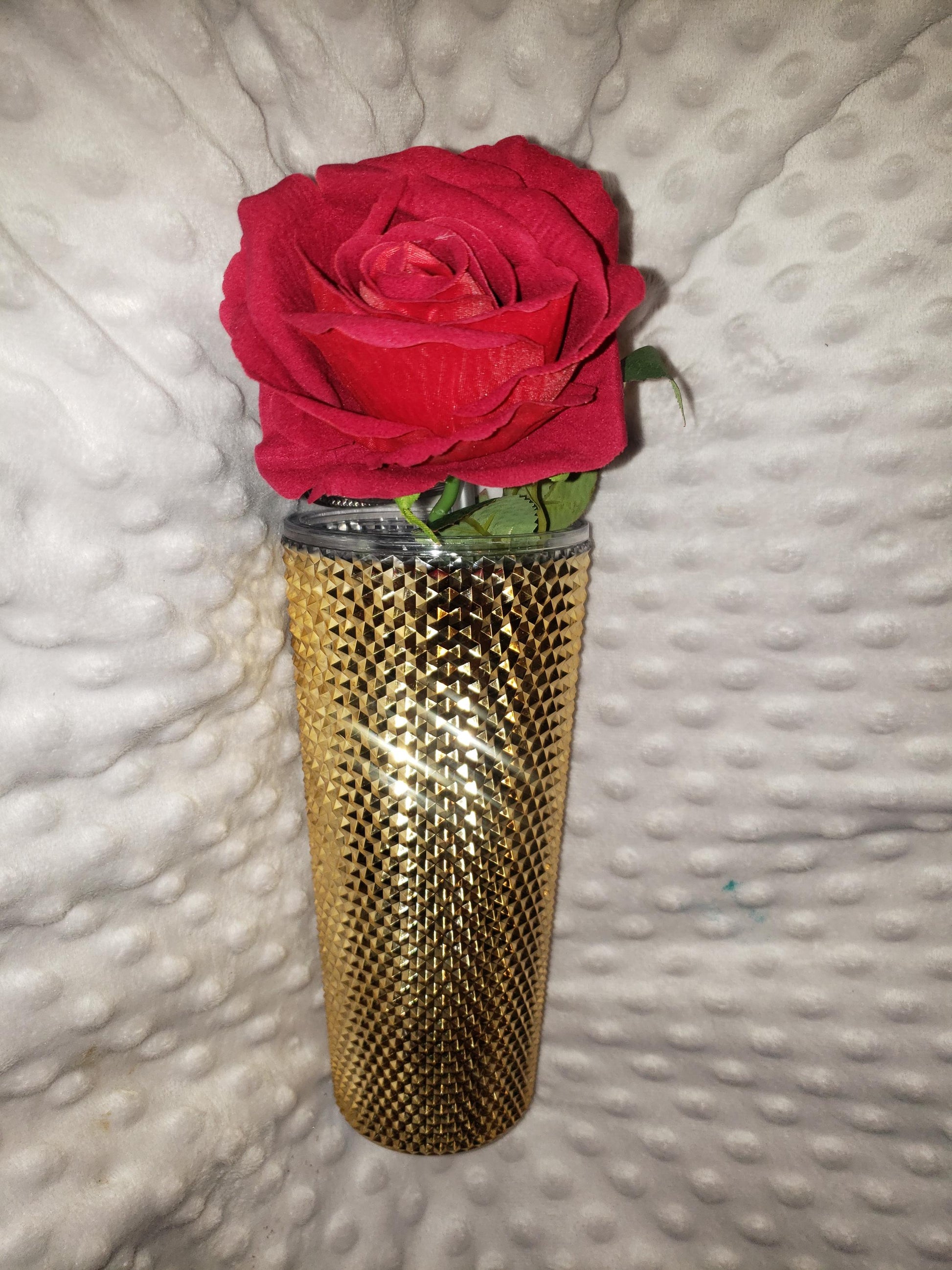 gold tumbler GIFT birthday mothers day with fake beautiful rose