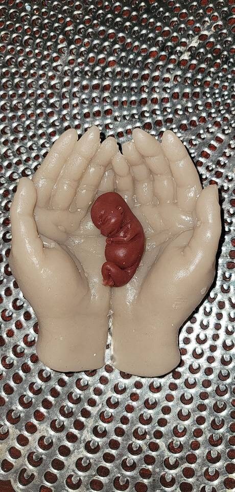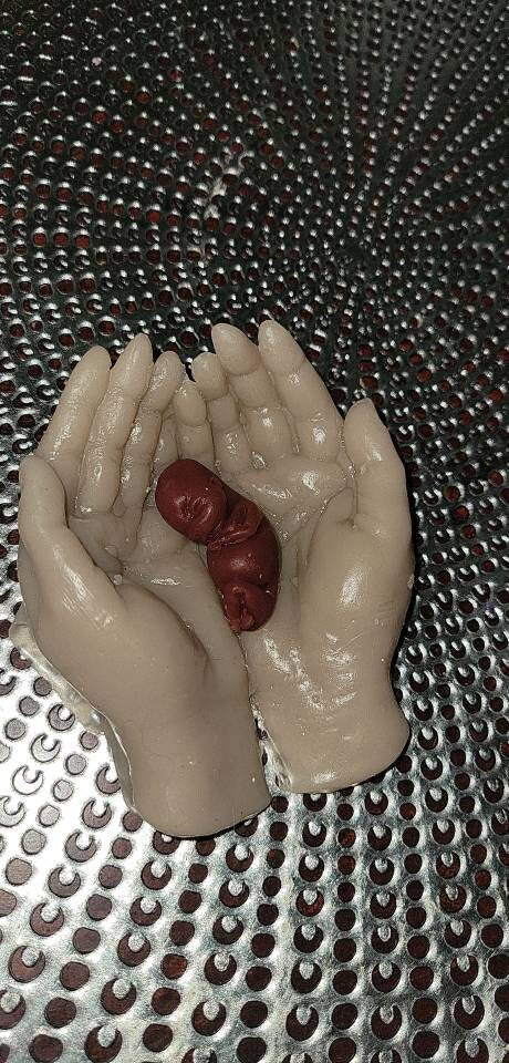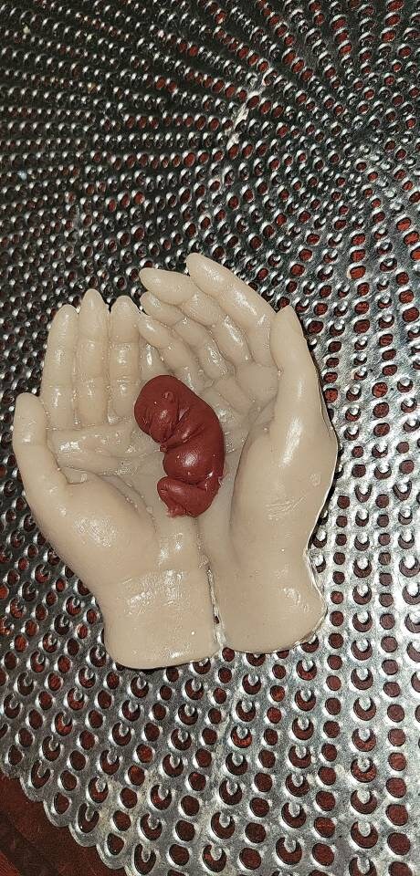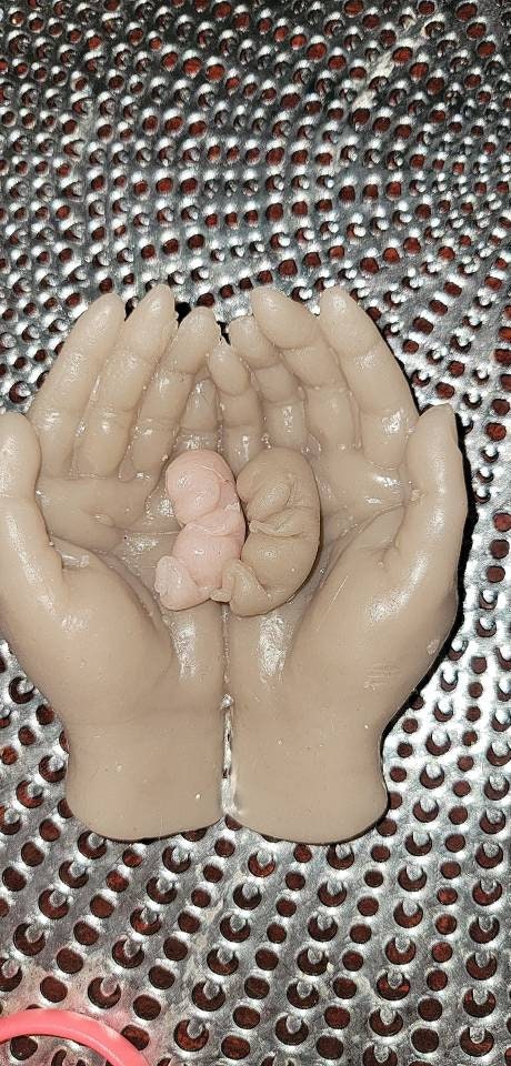 Memorial fetus babies silicone fetus and hands 10 or 11 week gestation