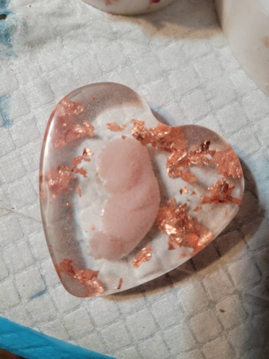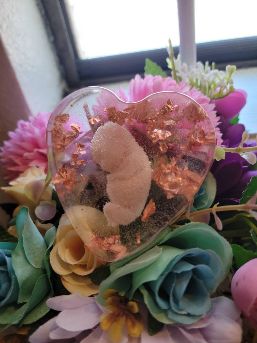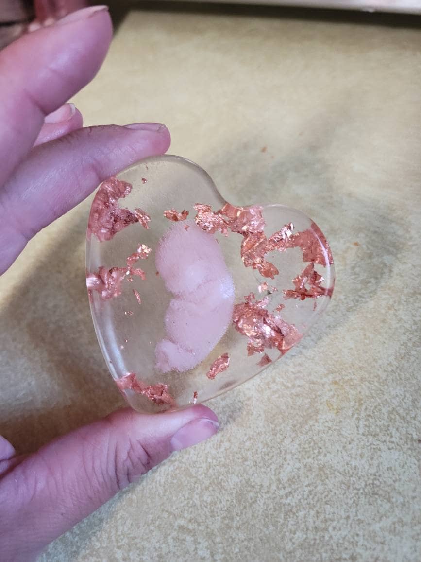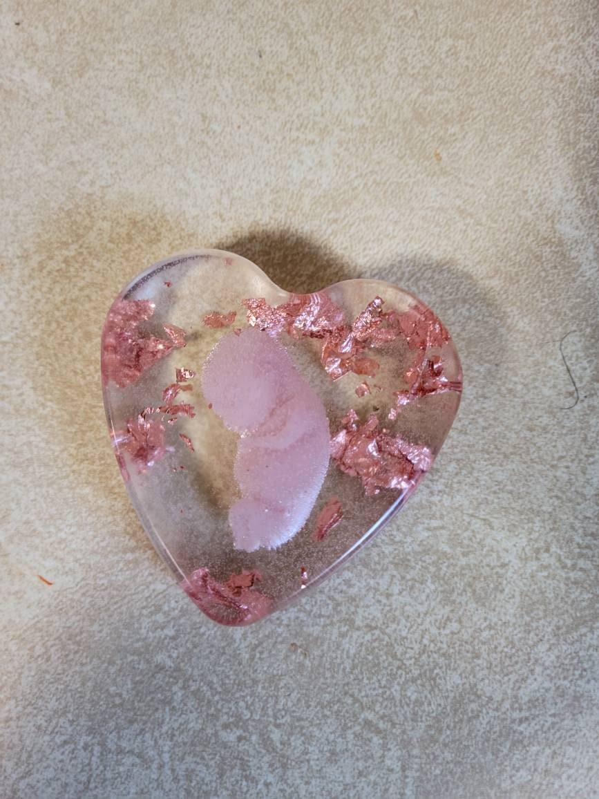 Silicone baby inside resin heart. Great memorial fetus gift or great if you've had a loss of your own. Made specially per order I can add any custom details upon request
