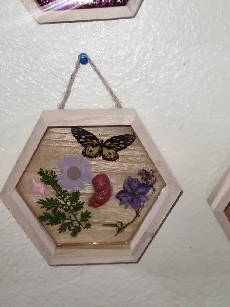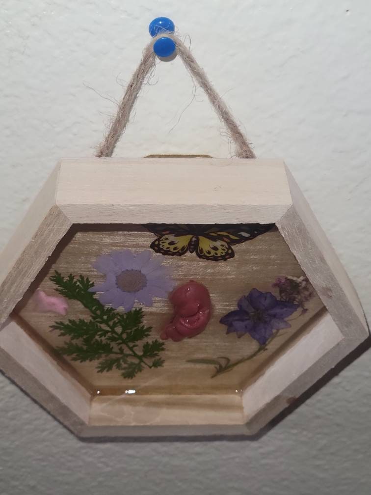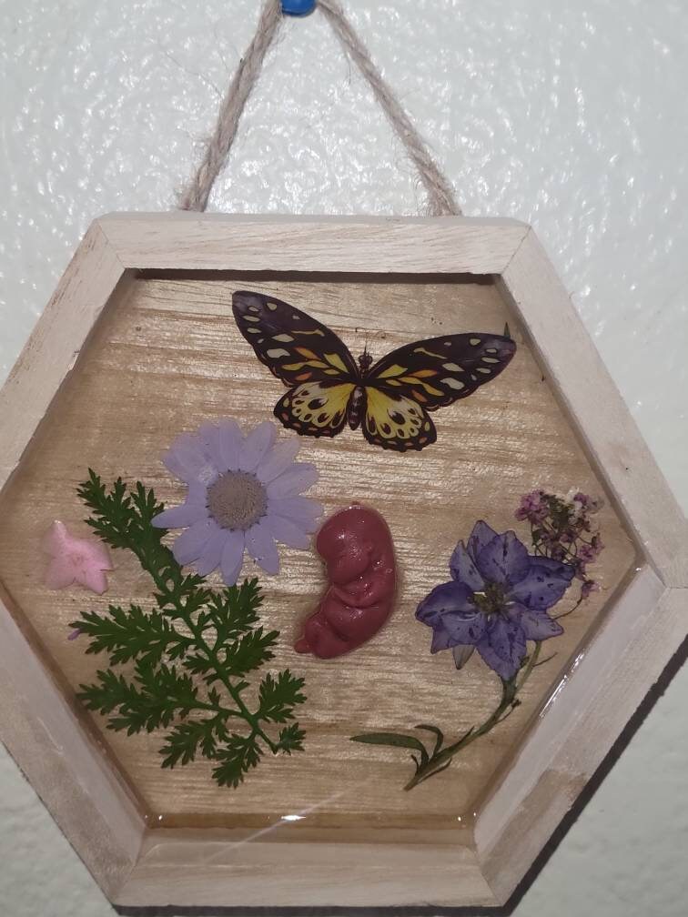Ready to ship 10 week old silicone fetus in Beautiful wood frame with resin background