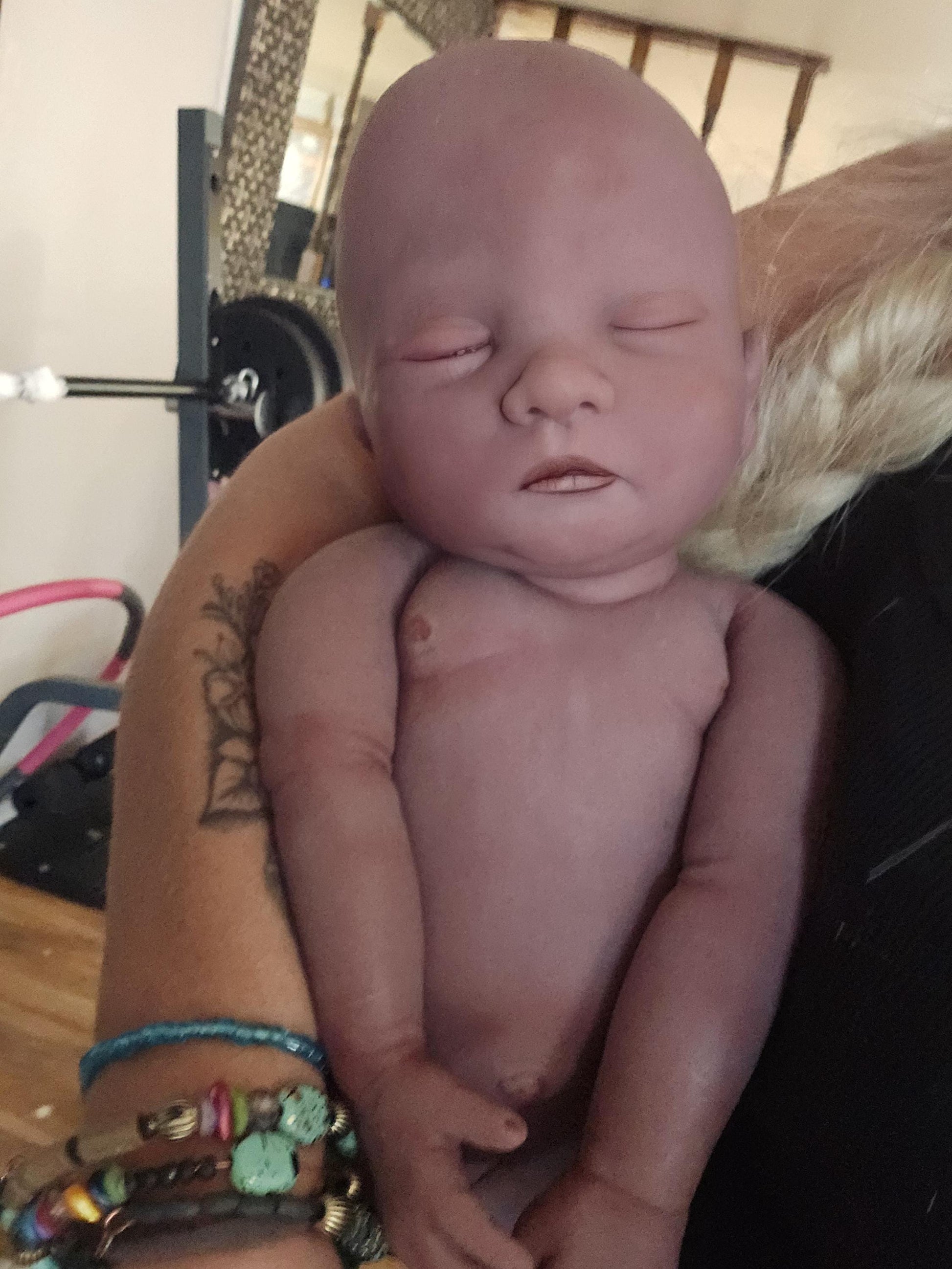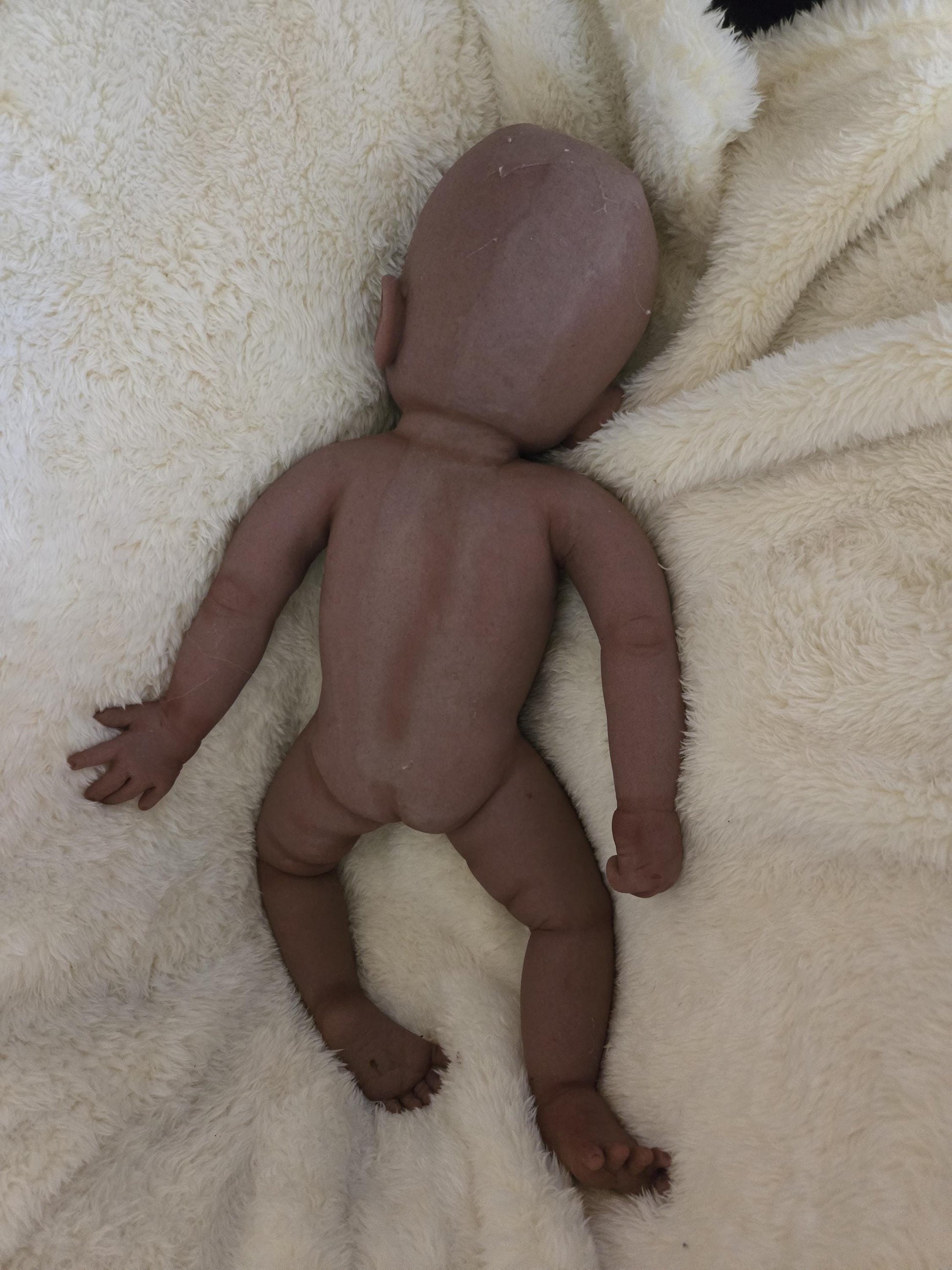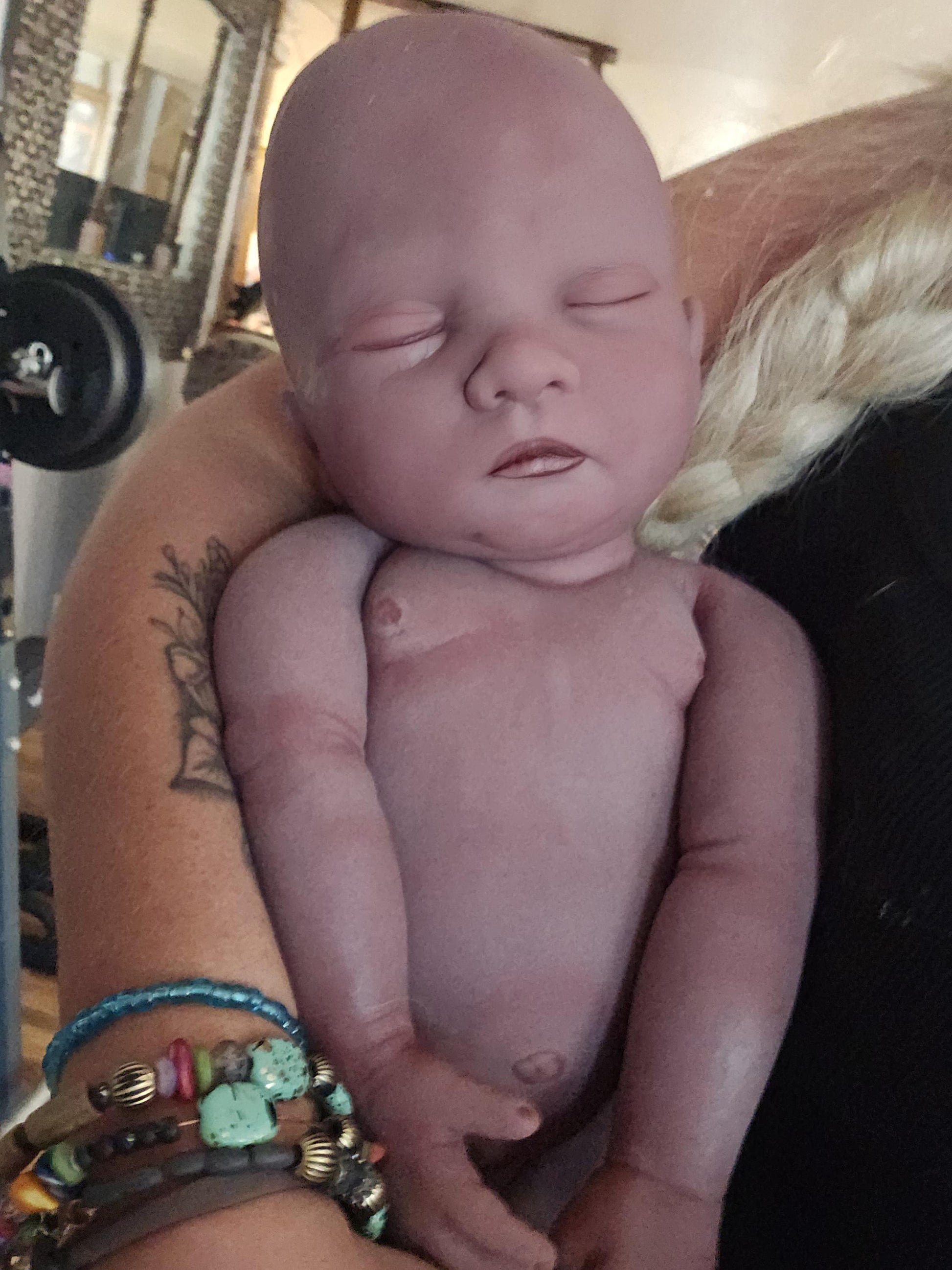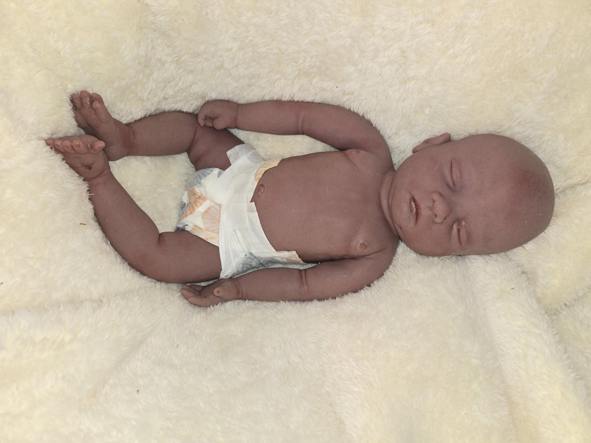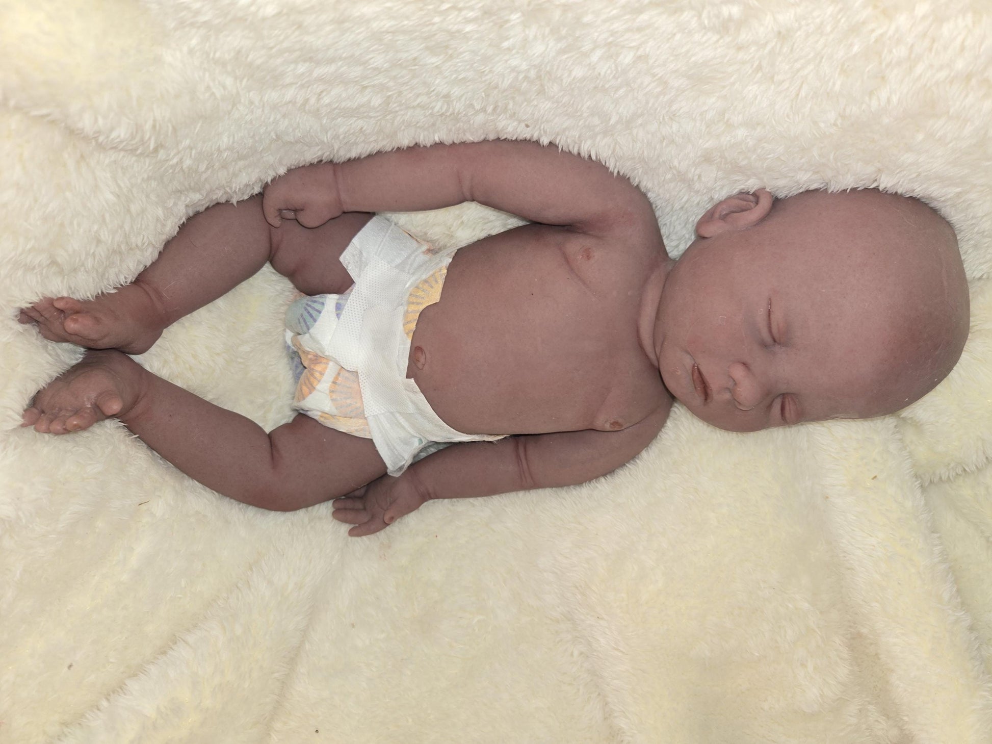 This sweet full-body silicone baby boy is fully painted and ready to find his forever mommy! Measuring approximately 18 inches long, he has been hand-poured in soft marshmallow blend silicone for an incredibly realistic, cuddly feel. His peaceful sleeping face, delicate newborn details, and smooth finish make him a perfect addition to any collection.