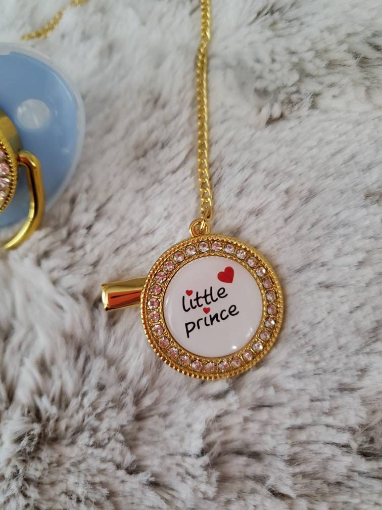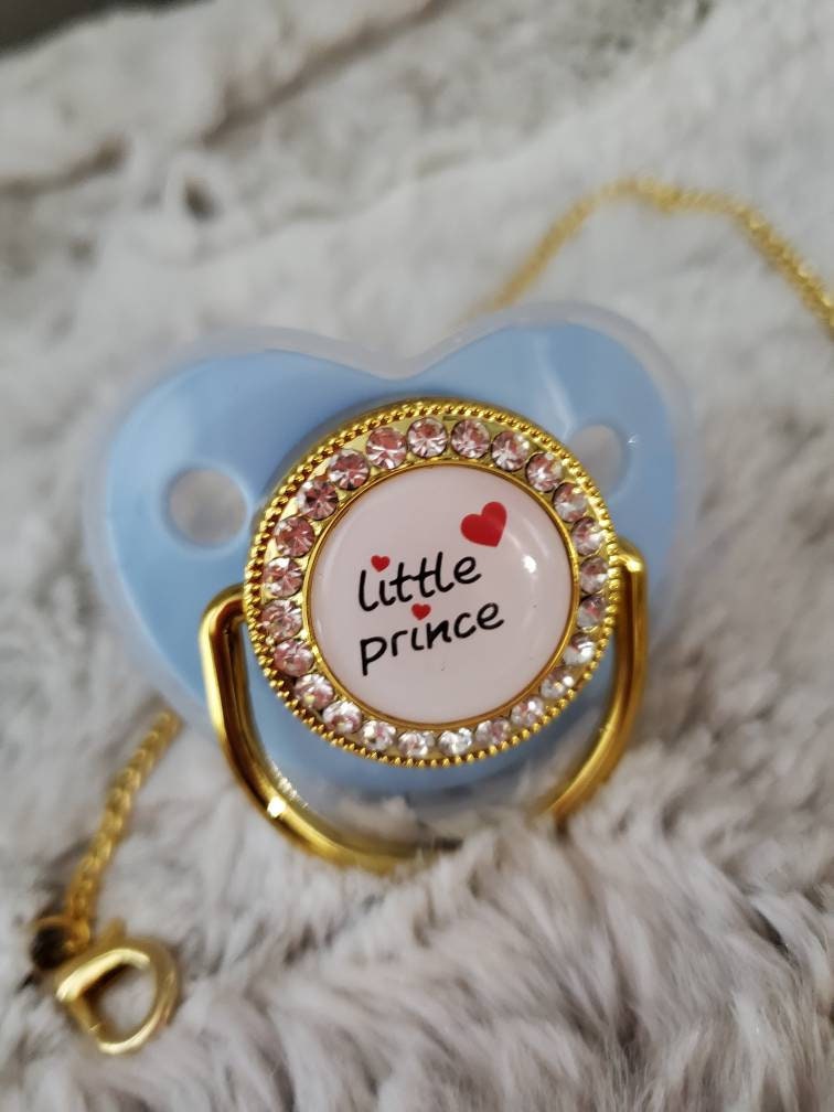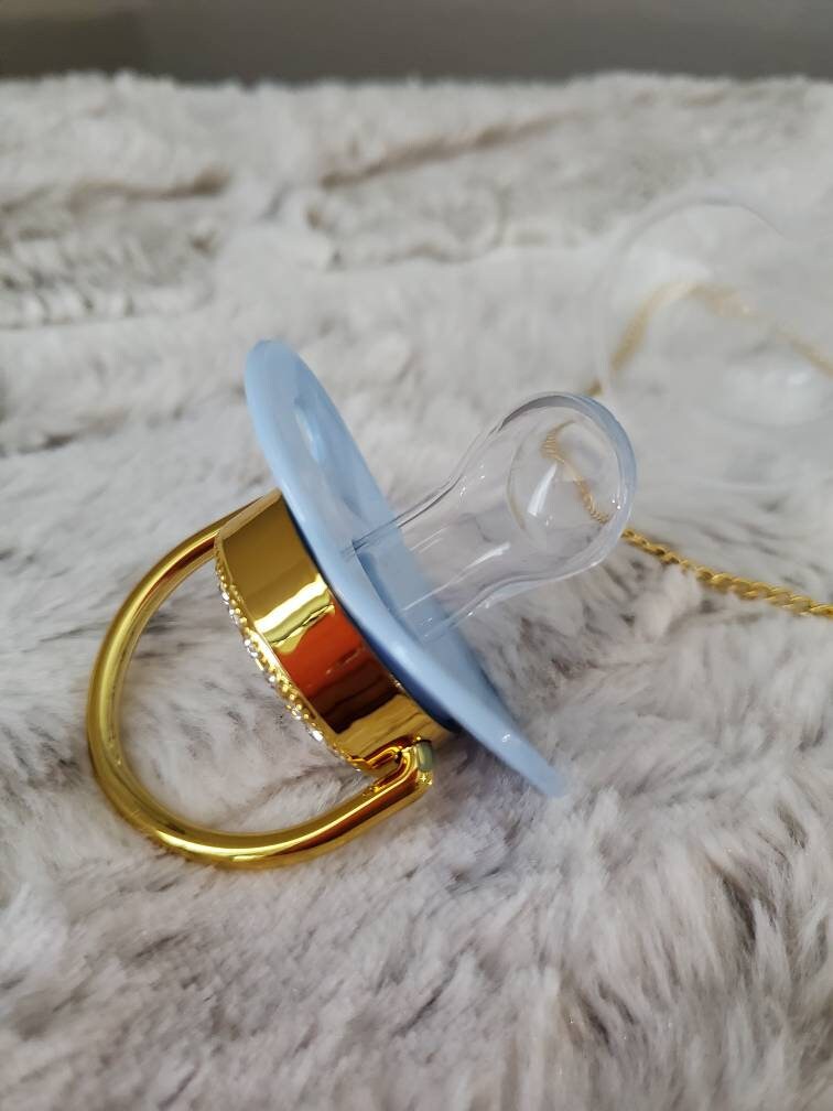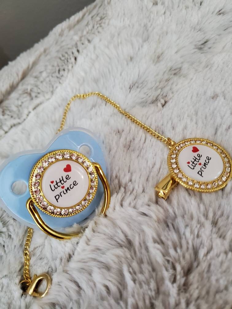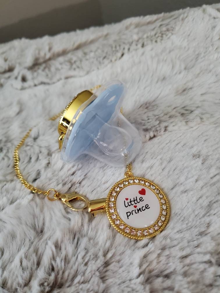 Reborn baby blue gold little prince binki pacifier with clip. Magnet, modified or full