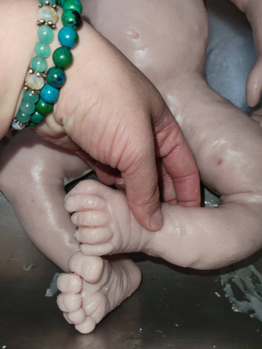 This body makes aprx a 22" baby with head !!! I have heads for sale separately or there are lots of other options for heads from other artist on etsy that will fit ! I can match the color of whatever head you decide to go with! This is a seamless body! Very detailed hands and feet by Donna kohn.