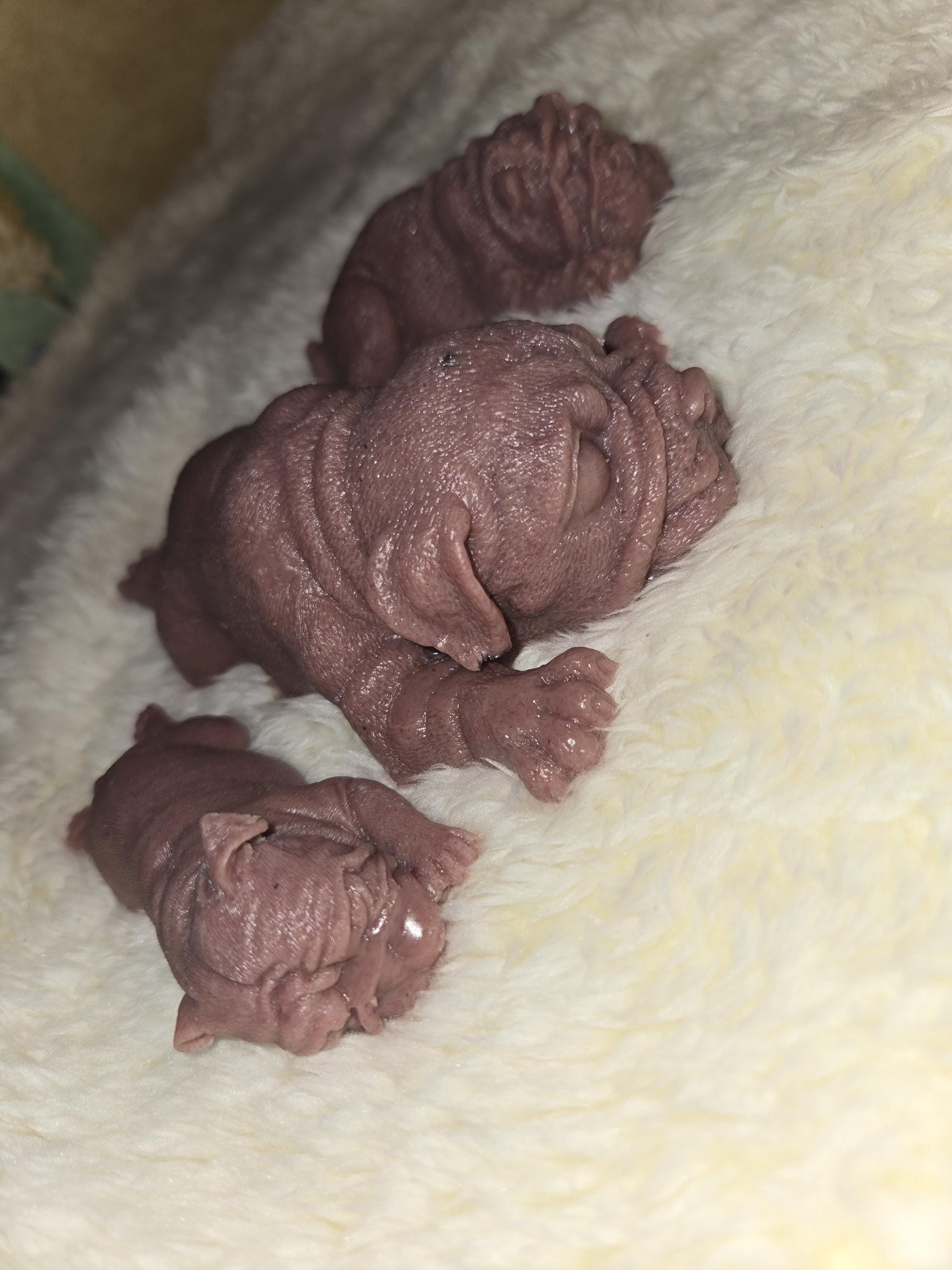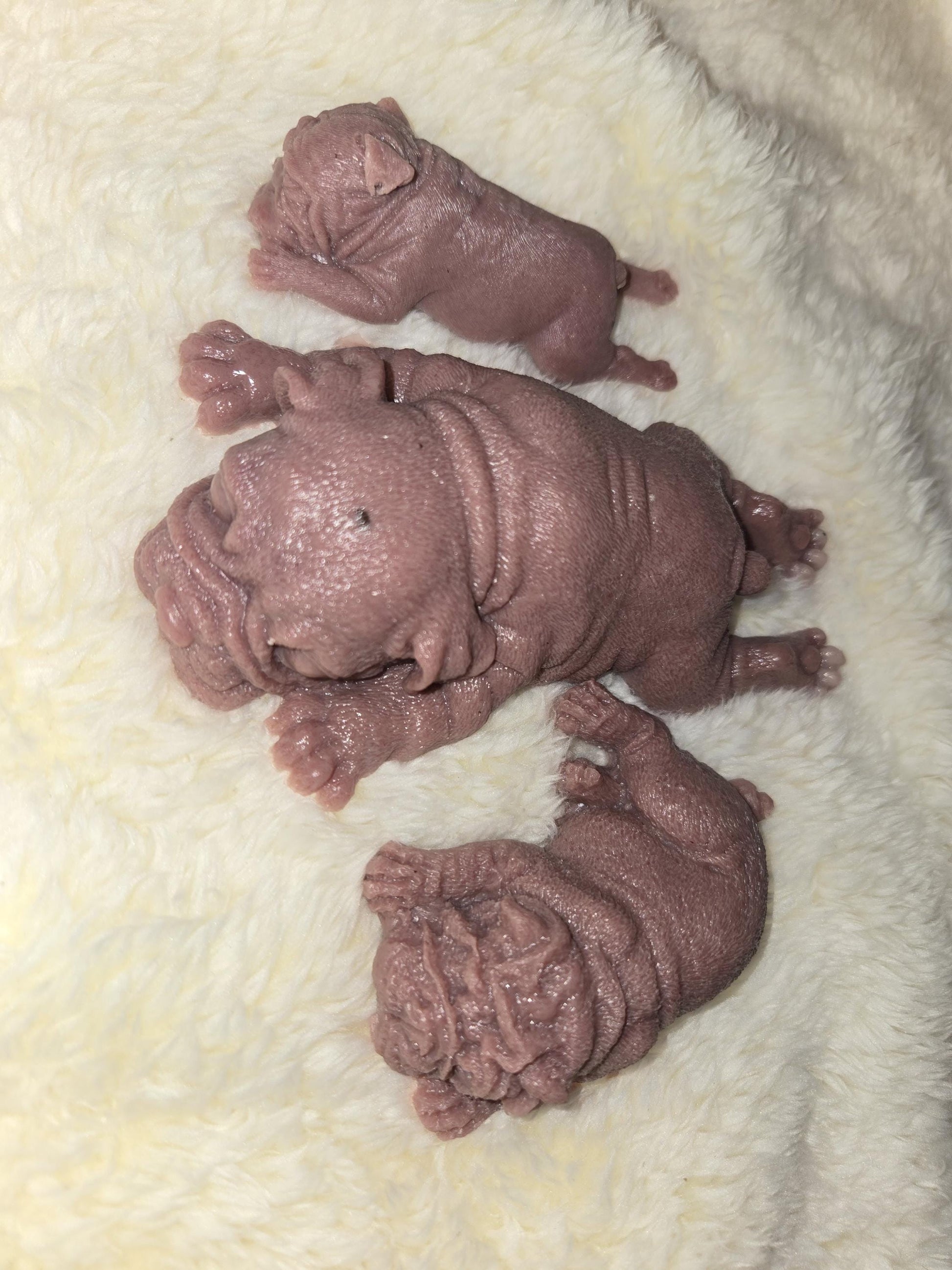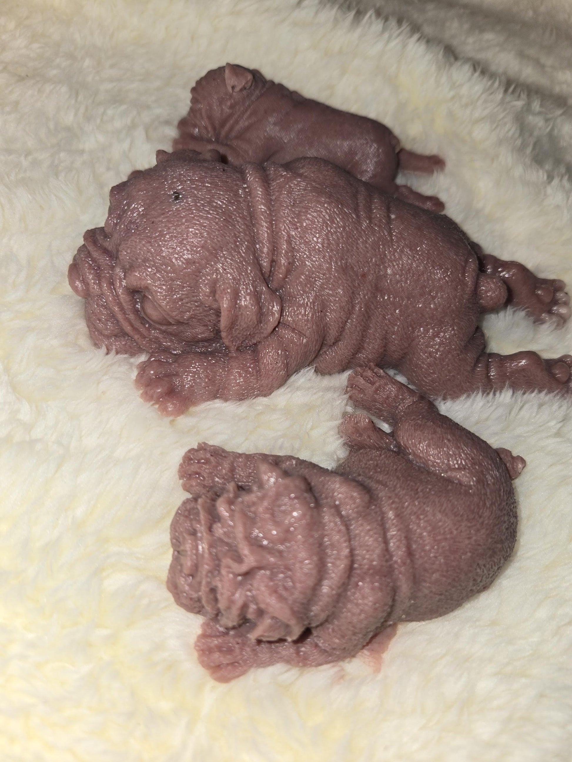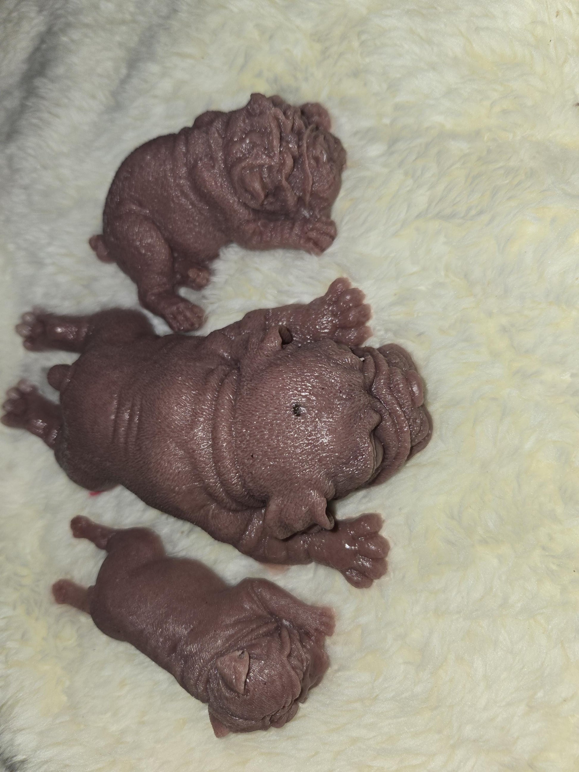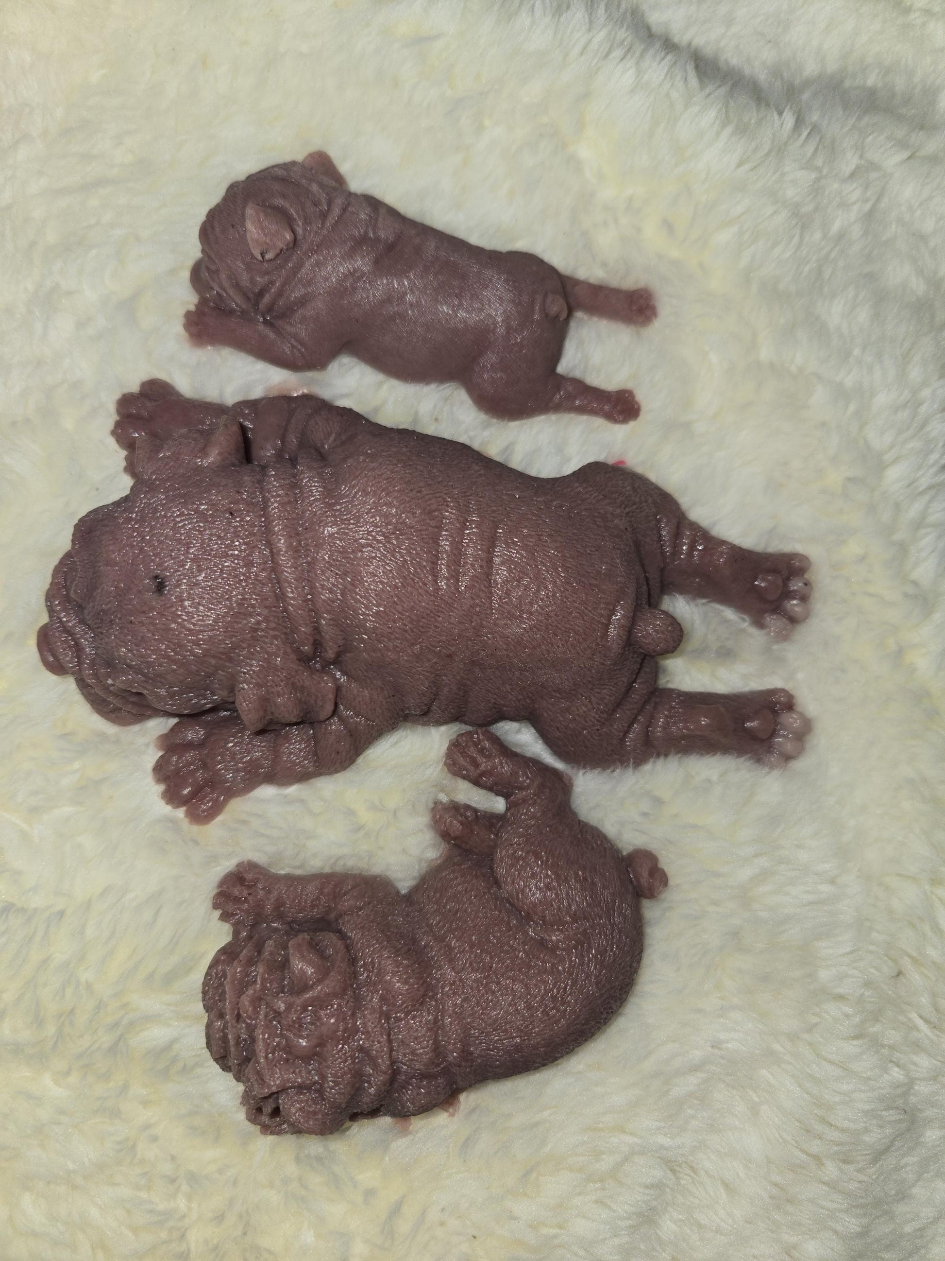 These sweet little silicone puppies is made from EcoFlex 10 soft blend silicone, giving it an ultra-soft, squishy, and flexible feel - perfect for cuddling, collecting, or memorial purposes. The puppy features a flat bottom so it sits nicely for display.