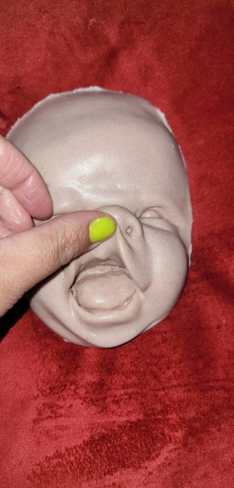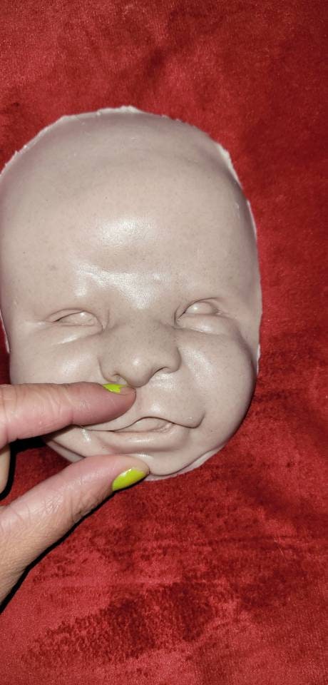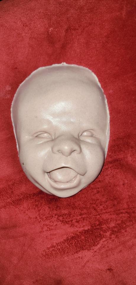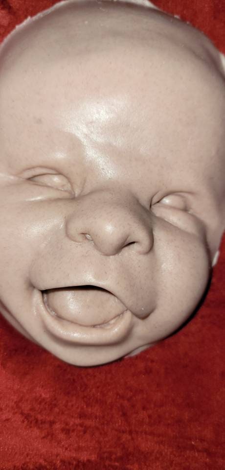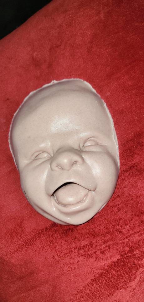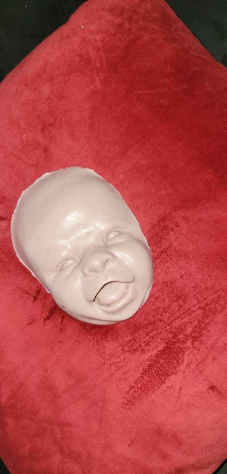 Custom to order. Can sell face alone or full head for cuddle body. Or I have body options available for FBS and also. Options for 1/4limbs or full silicone limbs listed Poured in soft blend eco flex silicone. Such a cute happy face! For a 22" to 24" baby!!!!! Very big head when fully Poured. Faces alone are great for practice painting ! No returns