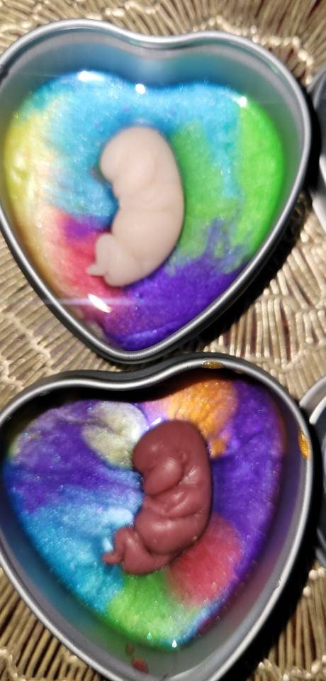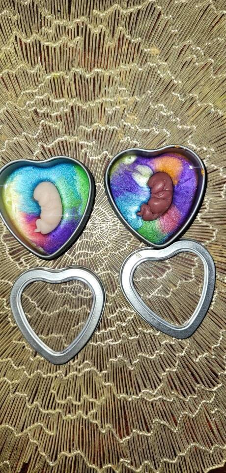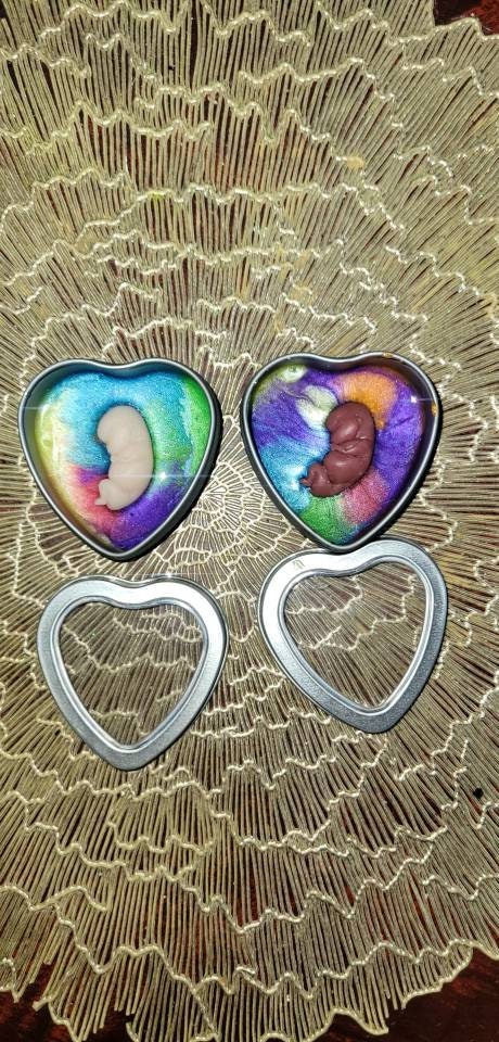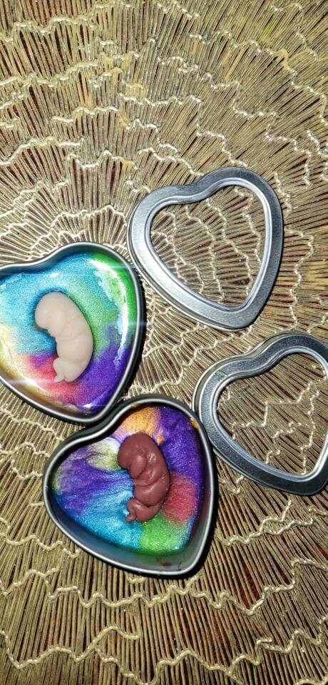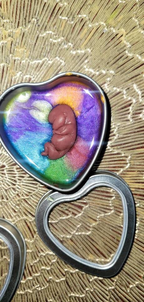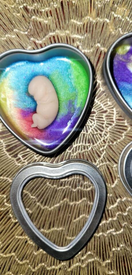Silicone memorial fetus In tin heart resin rainbow