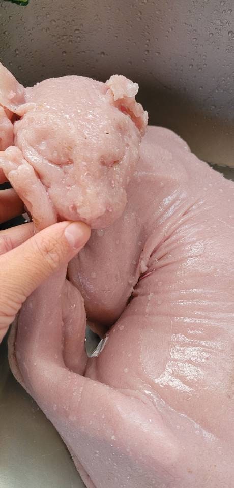 This was a cast made from a real cat so has ful ldetails wrinkles, paws, pores, etc.
